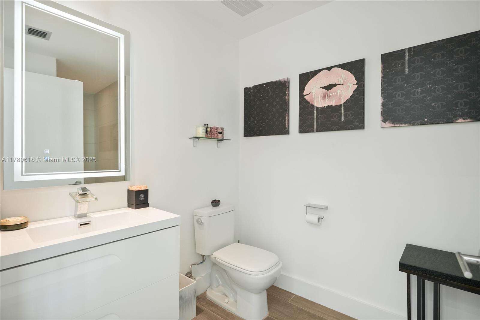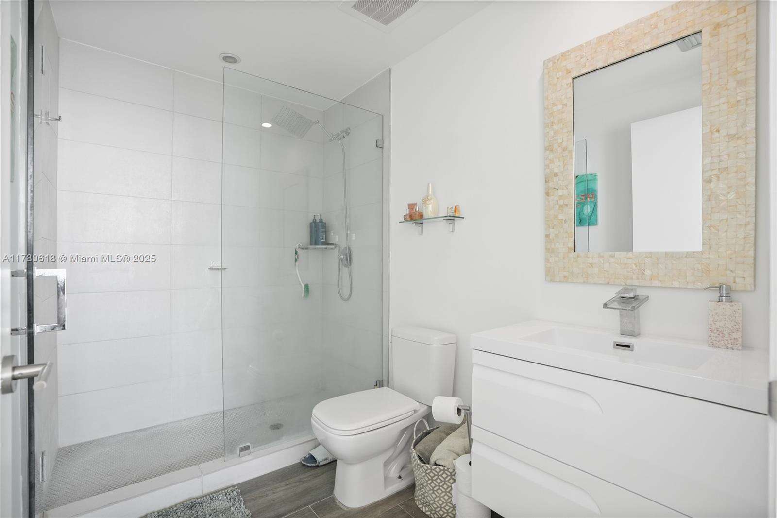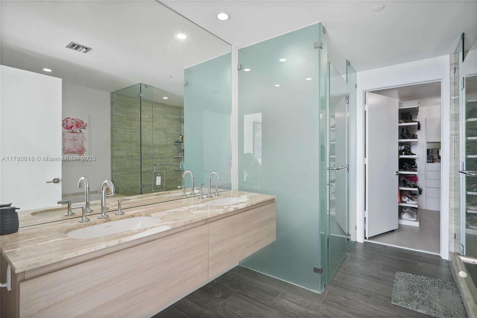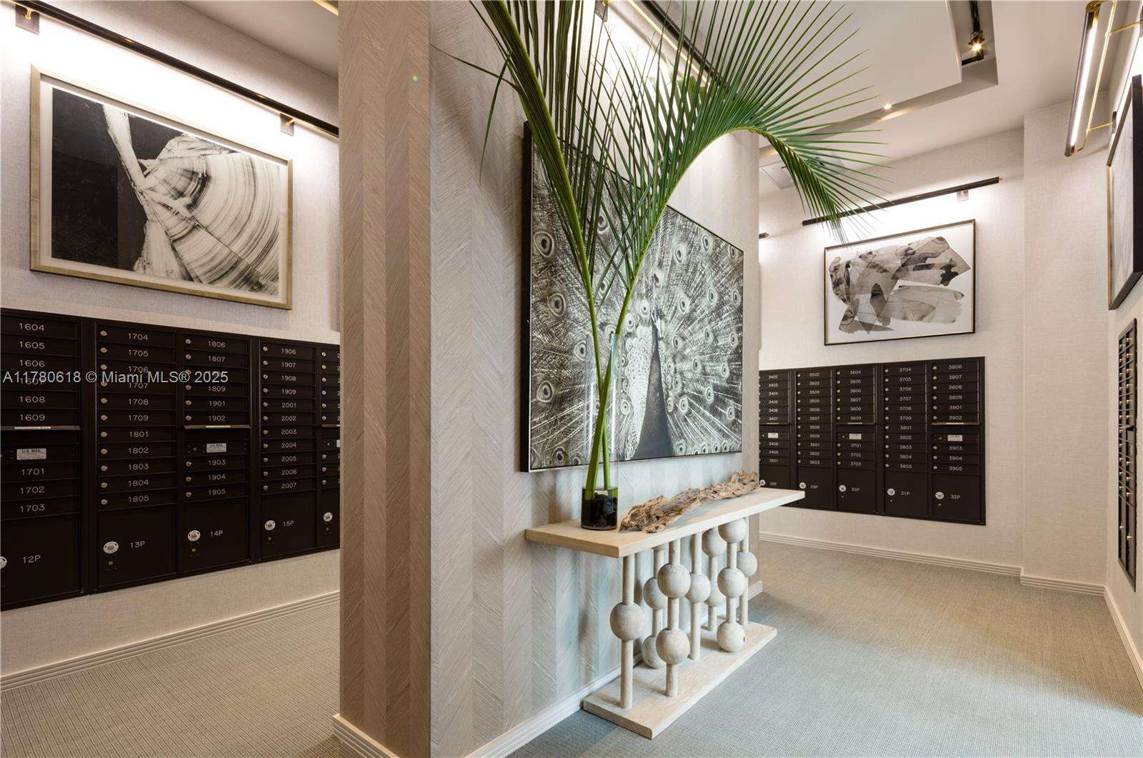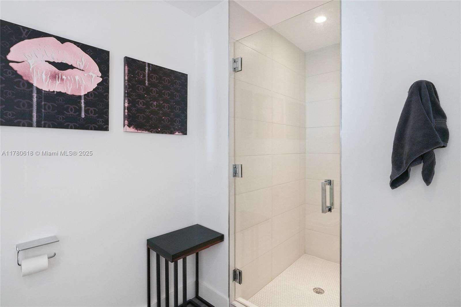 This stunning 2-bedroom, 3-bathroom condo with a den features luxury upgrades like a UV light system, 3M water filter, and Roberto Cavalli wallpaper. The master suite offers a custom closet, full-wall mirror, updated shower with new handles, and sleek floating vanities. Italian porcelain floors, a black kitchen island, and electric blackout shades add to the elegance. Designed by Thom Filicia, the condo includes private elevator access, top-tier appliances, and bay views. Amenities feature two pools, beach club, gym, spa, tennis courts, dog park, and 24-hour concierge. Spot #664 parking included. Located 10 minutes from the Design District, Midtown, and the American Airlines Arena, enjoy exclusive Miami events like sunset cruises and beachfront yoga.