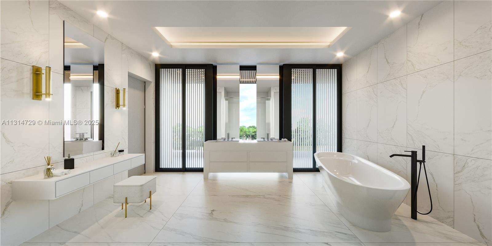 NEW BUILD ORGANIC MODERN WATERFRONT ESTATE IN THE HEART OF EASTERN SHORES! Modern Tropical Oasis in Light Natural Wood Encompassing 5 Bedrooms + 5 Baths + Powder Room in 5,796 Interior SF on 8,800 SF LOT with 80 FT of Waterfrontage. Enter into Open Floorplan with Calacatta Marble on Ground Floor. Enjoy Expansive Entertaining Spaces + Wine Cellar & Direct Water Views. Organic Wall Textures Throughout. Staircase Leads to Spacious Primary Suite Overlooking the Water. Custom Italian Kitchen Accented with Organic Light Wood with Oversized Island Countertop. Primary Bath with Hansgrohe & Duravit Fixtures + Rainshower. Deck Perfect for Entertaining with Heated Pool & Summer Kitchen. Minutes Away from Sunny Isles Beach, Aventura Mall, Dining & Oleta River State Park. Delivers Q2 of 2025.