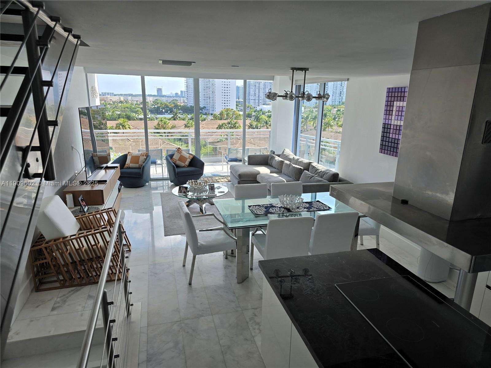 Experience sophisticated penthouse living in this fully renovated corner residence at Artech. Designed for both style and comfort, this duplex home offers 3 bedrooms, 4 full baths, and a fully enclosed den suitable as a 4th bedroom. Features include a custom Snaidero kitchen with Sub-Zero appliances, marble floors, and dramatic floor-to-ceiling glass showcasing abundant natural light. Thoughtful upgrades such as California Closet systems elevate storage and organization. A private rooftop-style terrace enhances the home’s indoor-outdoor flow. Enjoy unparalleled privacy in one of the building’s most desirable layouts, complemented by Artech’s resort-level amenities.