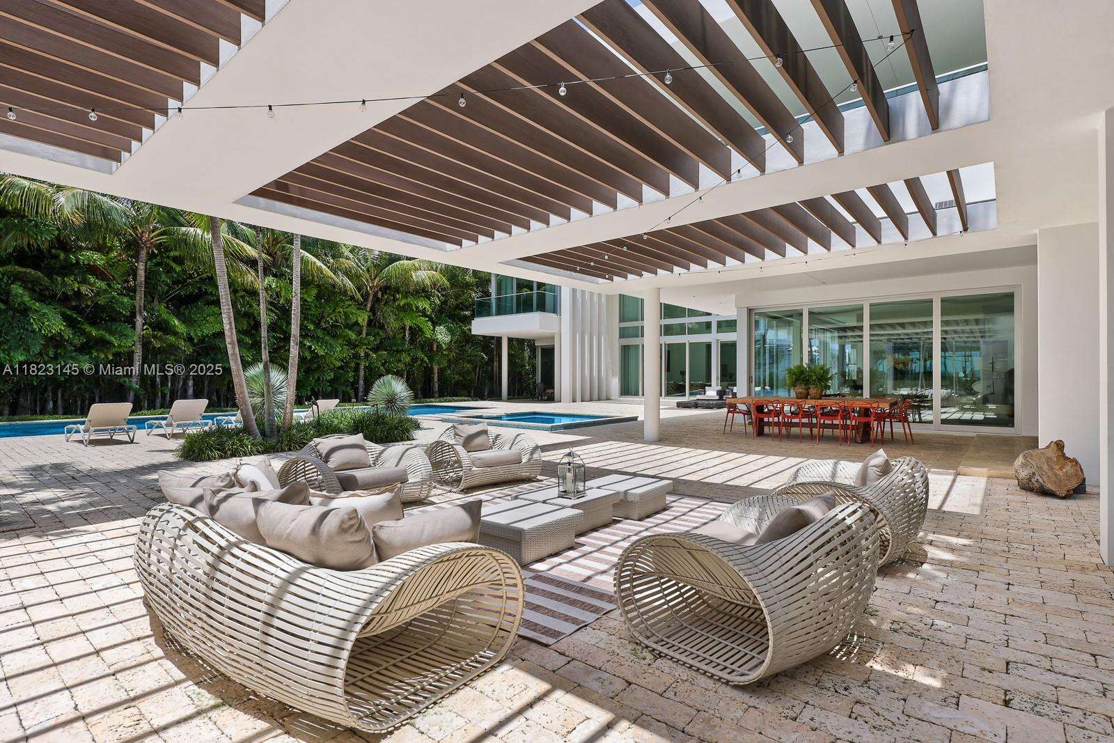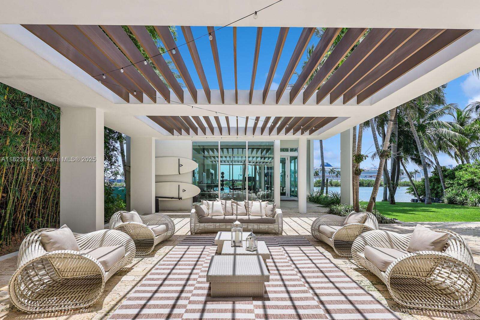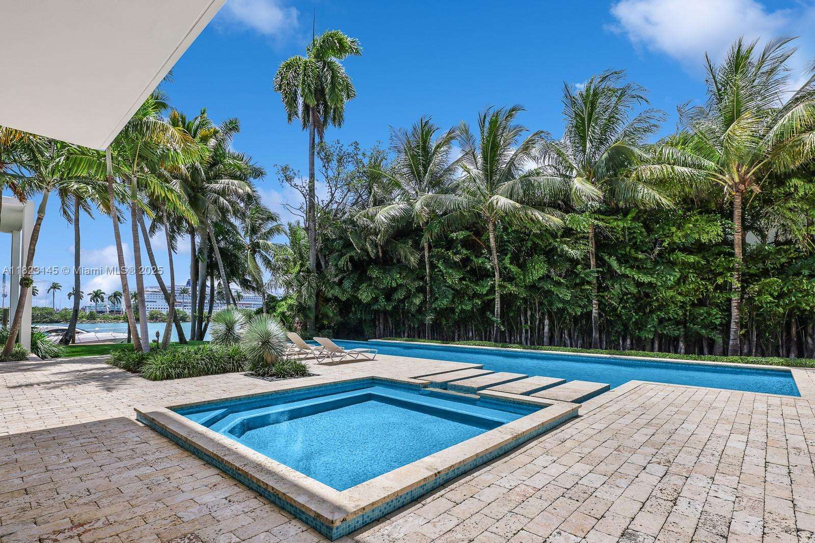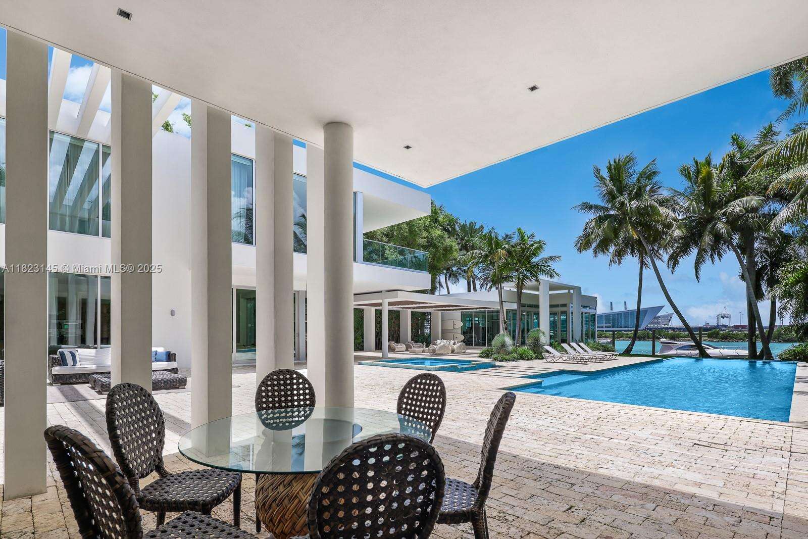 In a league of its own, this modern estate redefines luxury living on guard gated Palm Island. Nestled on an expansive 32k SFlot, enjoy 9 beds 8/1 baths perfectly set on 13,144 SF. The chef’s kitchen is an epicurean delight, featuring top-of-the-line appliances, a walk-in refrigerator, & stunning water views. The expansive primary suite offers an oversized marble bathroom, generous closets, & private balcony overlooking the bay. Entertaining is elevated to an art form with multiple outdoor spaces seamlessly woven into the estate’s design, showcasing breathtaking skyline views. Highlights include a wine cellar, movie theater, gym, dedicated staff quarters with dual rooms, a pet room, & an elevator. A private dock, 100 ft of water frontage, & direct ocean access complete this masterpiece.