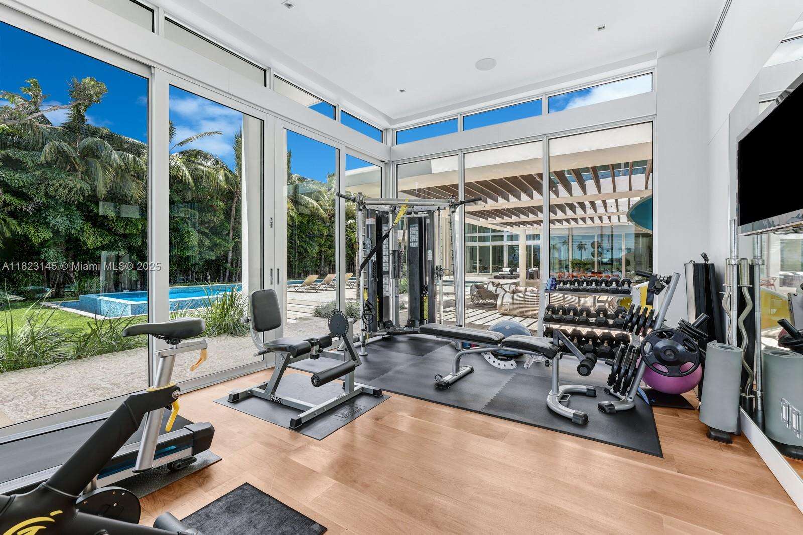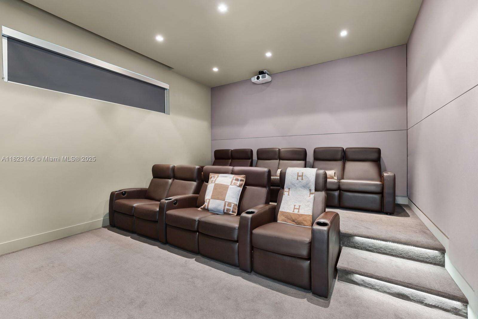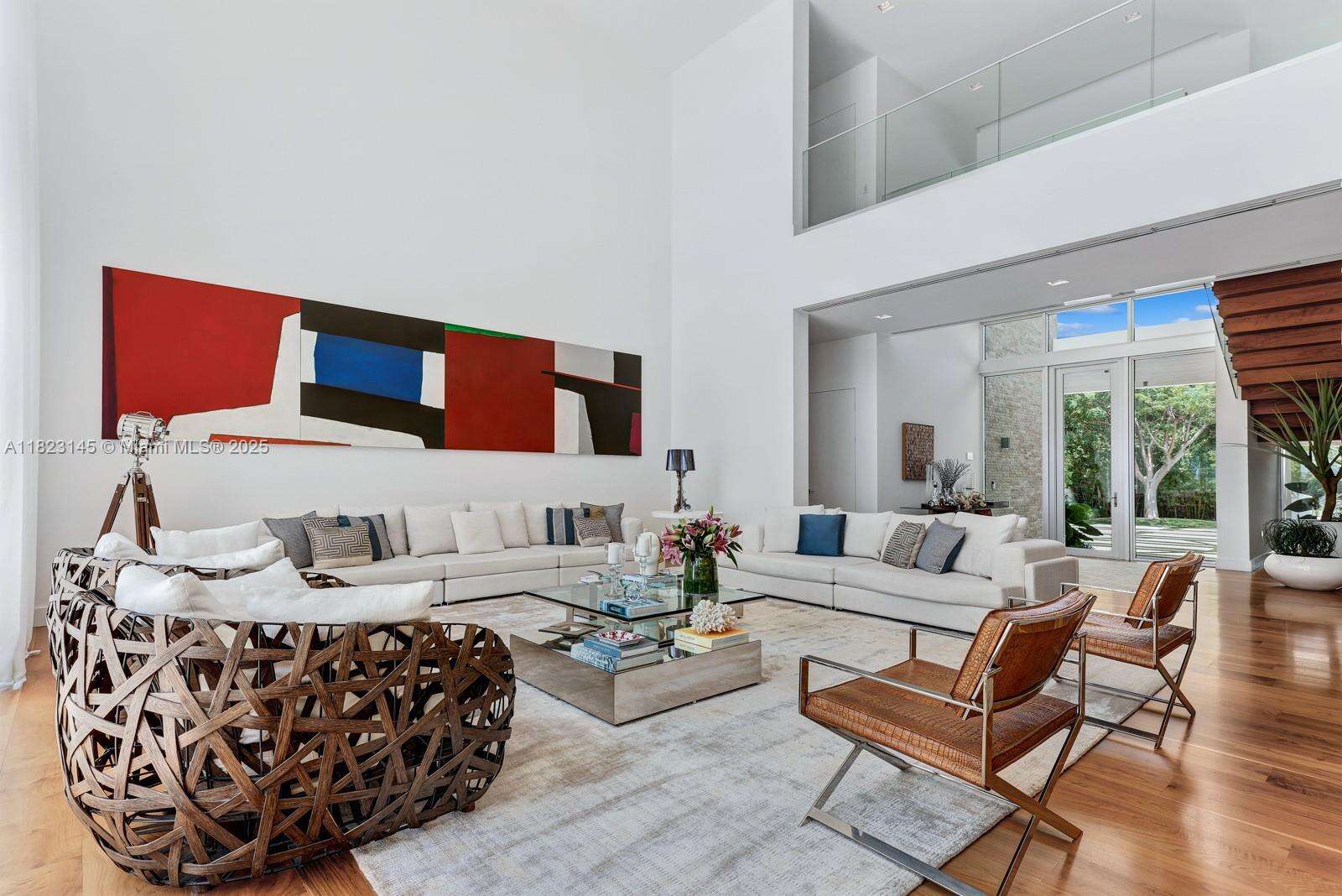 In a league of its own, this modern estate redefines luxury living on guard gated Palm Island. Nestled on an expansive 32k SFlot, enjoy 9 beds 8/1 baths perfectly set on 13,144 SF. The chef’s kitchen is an epicurean delight, featuring top-of-the-line appliances, a walk-in refrigerator, & stunning water views. The expansive primary suite offers an oversized marble bathroom, generous closets, & private balcony overlooking the bay. Entertaining is elevated to an art form with multiple outdoor spaces seamlessly woven into the estate’s design, showcasing breathtaking skyline views. Highlights include a wine cellar, movie theater, gym, dedicated staff quarters with dual rooms, a pet room, & an elevator. A private dock, 100 ft of water frontage, & direct ocean access complete this masterpiece.