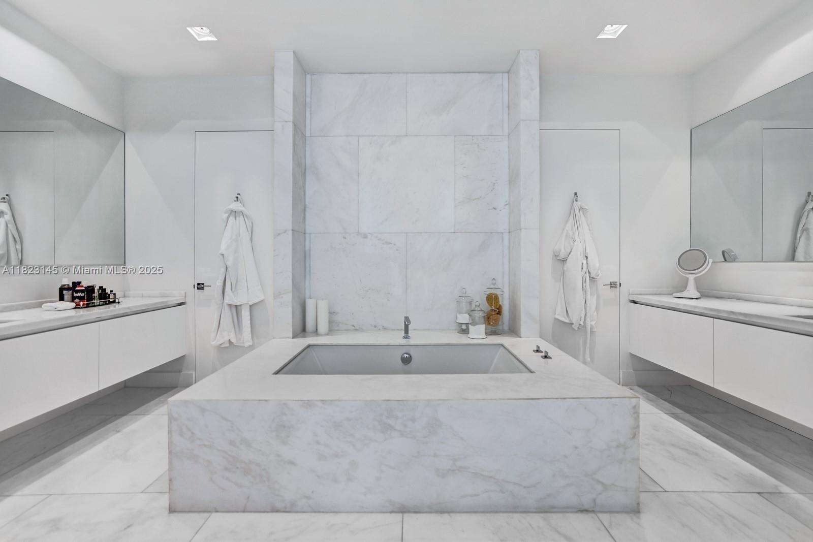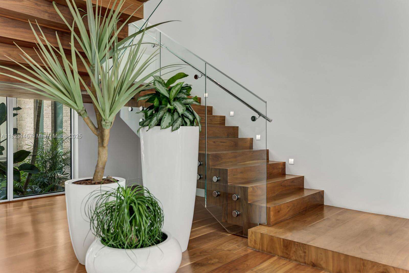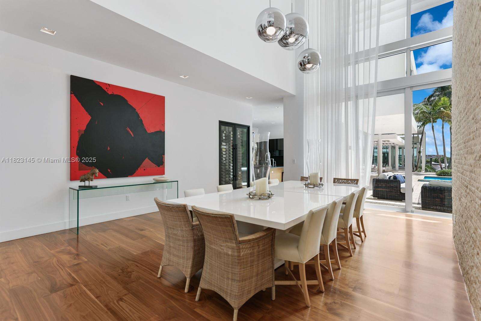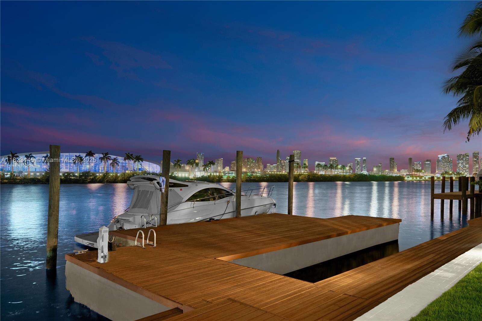 In a league of its own, this modern estate redefines luxury living on guard gated Palm Island. Nestled on an expansive 32k SFlot, enjoy 9 beds 8/1 baths perfectly set on 13,144 SF. The chef’s kitchen is an epicurean delight, featuring top-of-the-line appliances, a walk-in refrigerator, & stunning water views. The expansive primary suite offers an oversized marble bathroom, generous closets, & private balcony overlooking the bay. Entertaining is elevated to an art form with multiple outdoor spaces seamlessly woven into the estate’s design, showcasing breathtaking skyline views. Highlights include a wine cellar, movie theater, gym, dedicated staff quarters with dual rooms, a pet room, & an elevator. A private dock, 100 ft of water frontage, & direct ocean access complete this masterpiece.