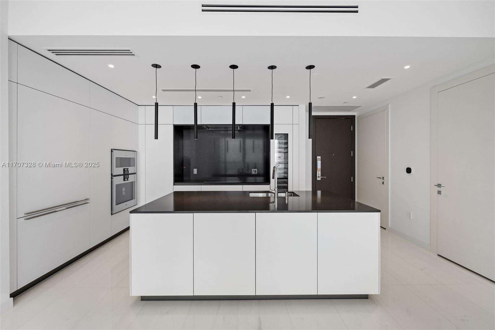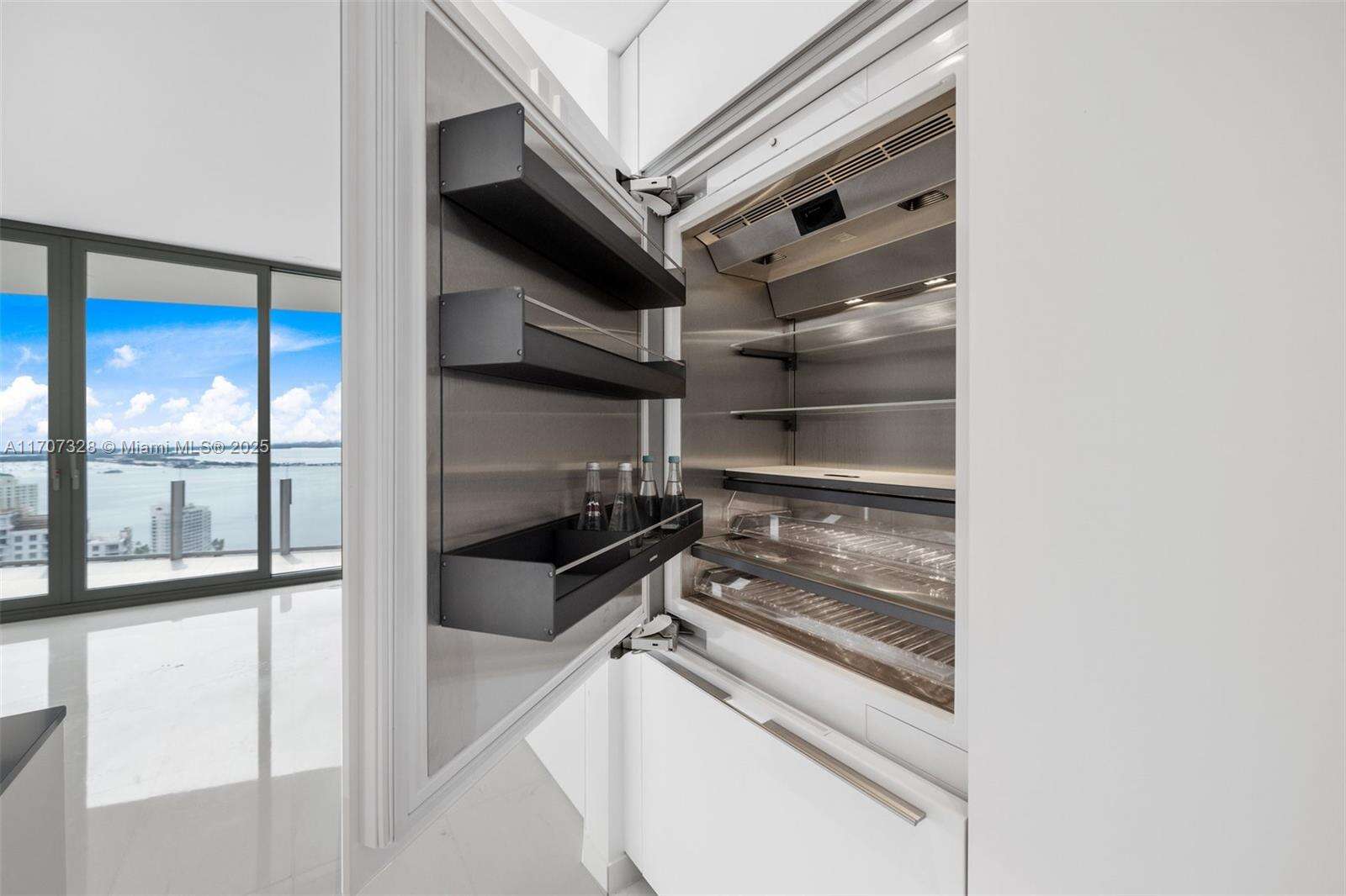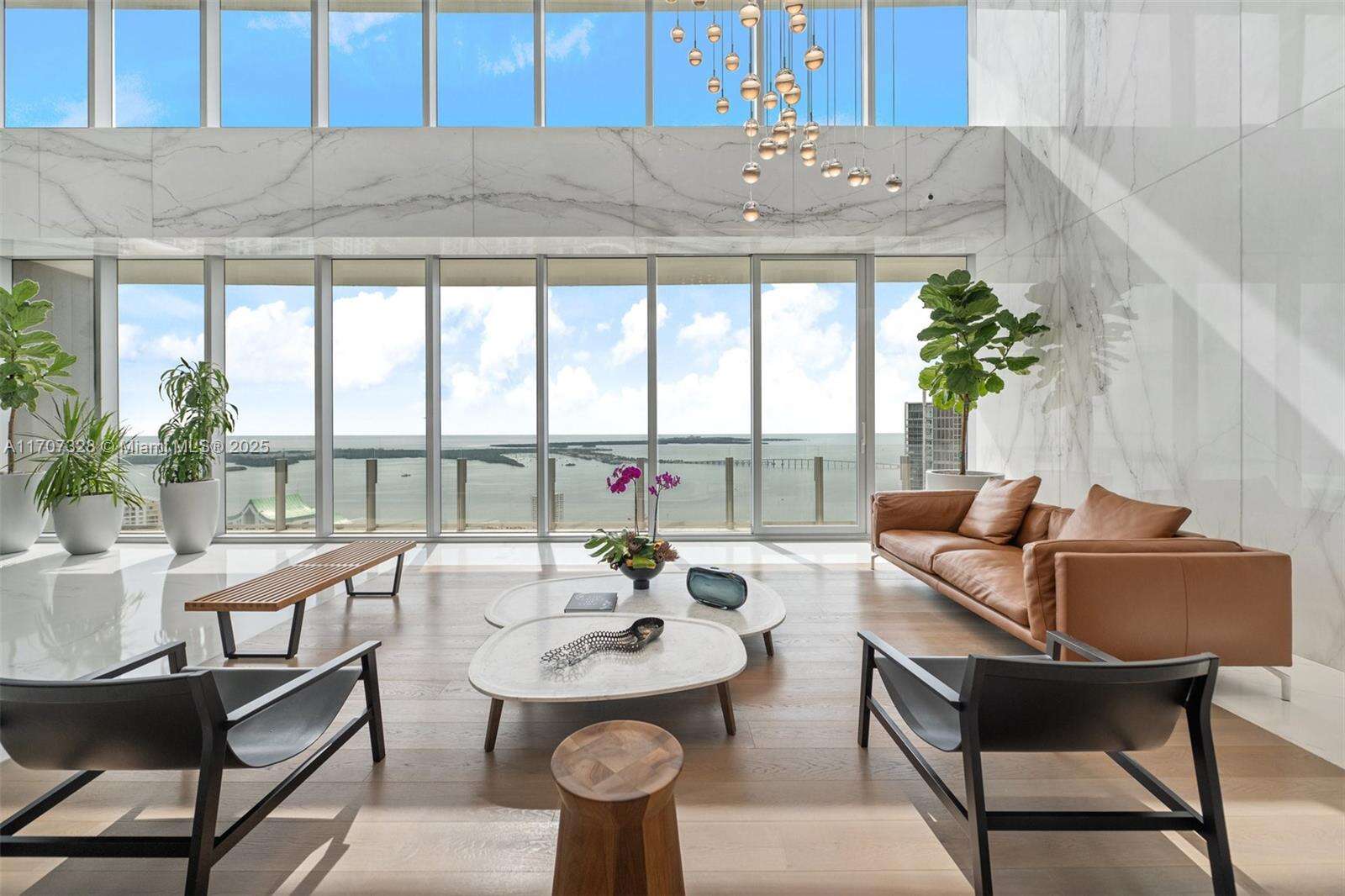 Enjoy direct bay and ocean views at Aston Martin Residences. This bright modern unit features 2 beds, 2.5 baths, Bulthaup kitchen cabinetry, Gaggenau appliances, and Thassos marble floors throughout. The unit has a split floor plan, en-suite bathrooms, Italian cabinetry, quartz countertops, backlit mirrors, a freestanding tub in the primary bath, rain showers, and white marble walls. AMR offers four floors of sky amenities, including golf and a putting green, cinema rooms, a 2-level fitness center, his-and-her spas, an indoor pool, an art gallery, a teen lounge, a children's playroom, a business center, a grand salon, an infinity pool, private cabanas, a superyacht marina and a helipad (pending approval).