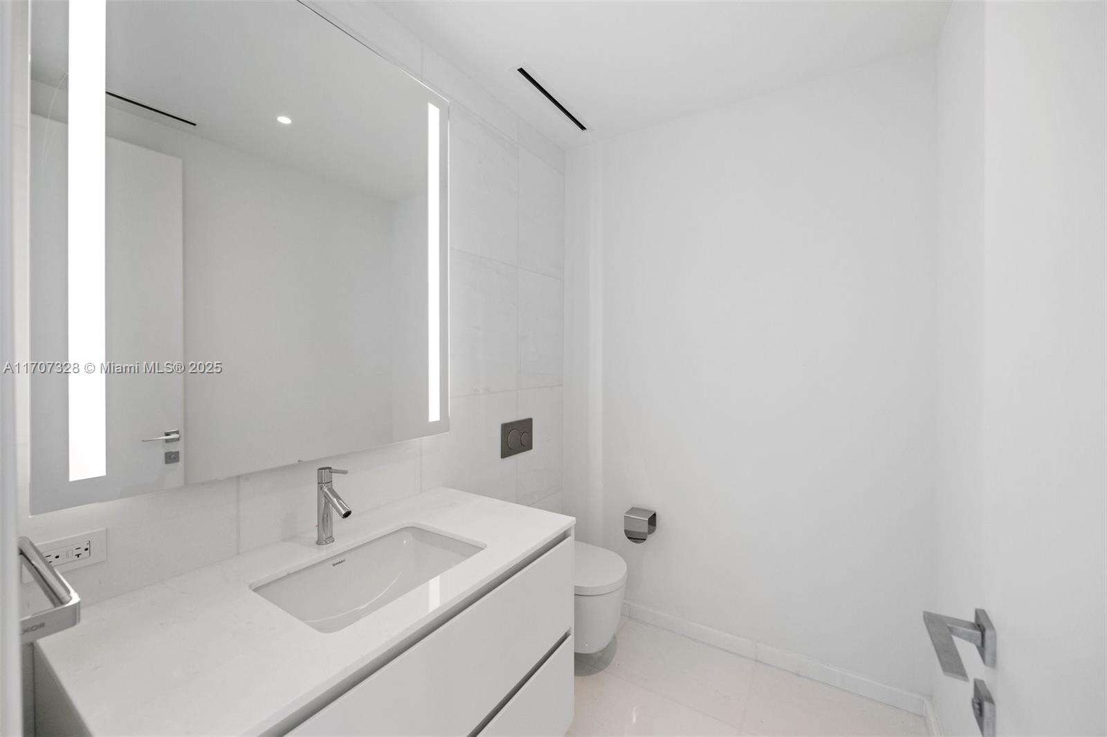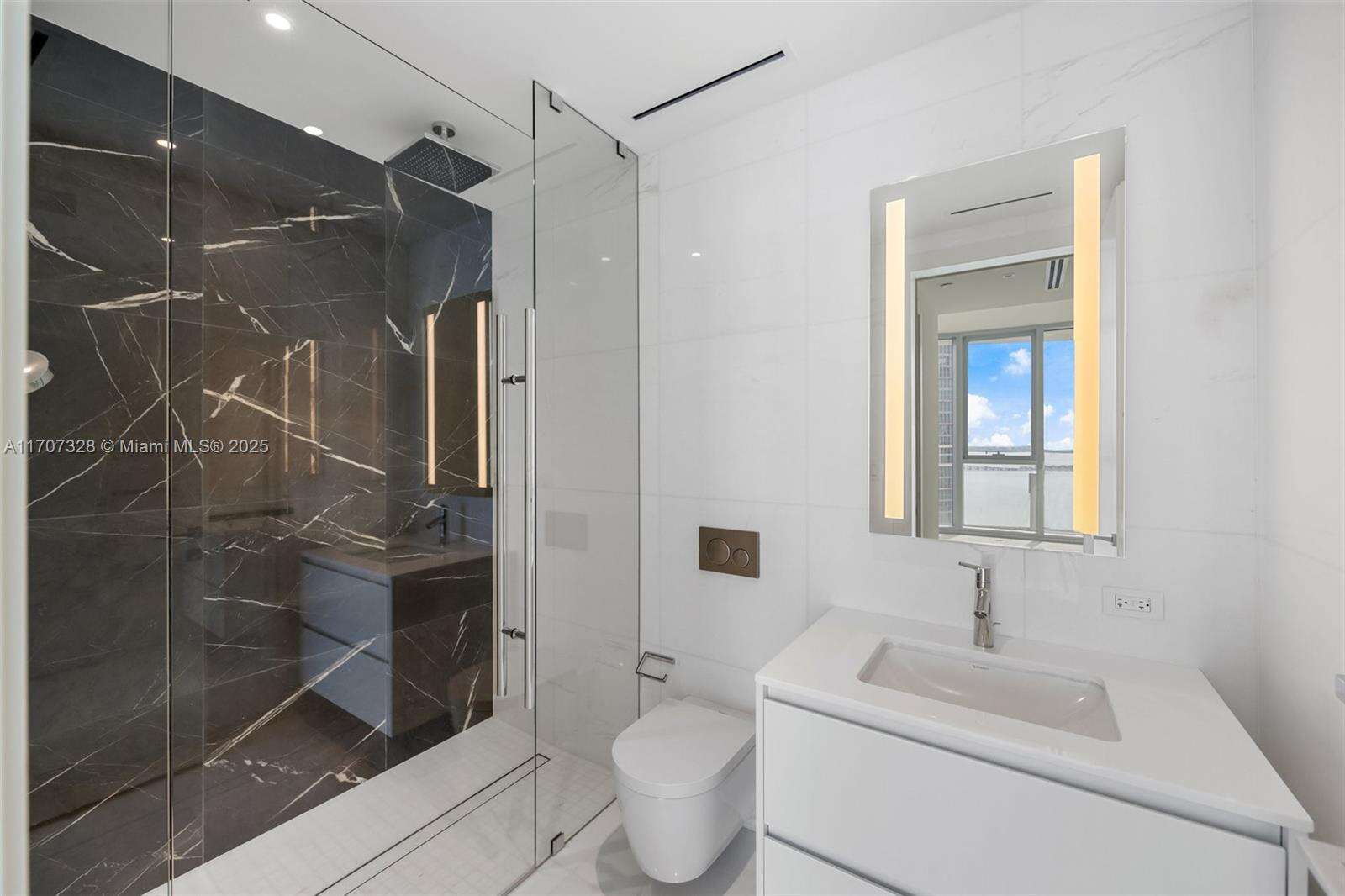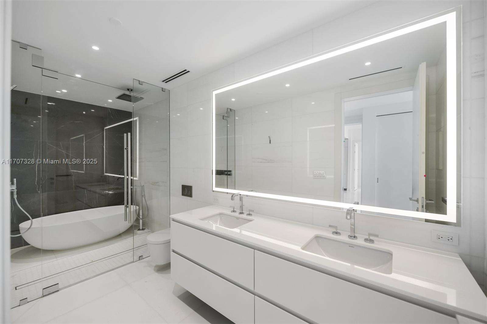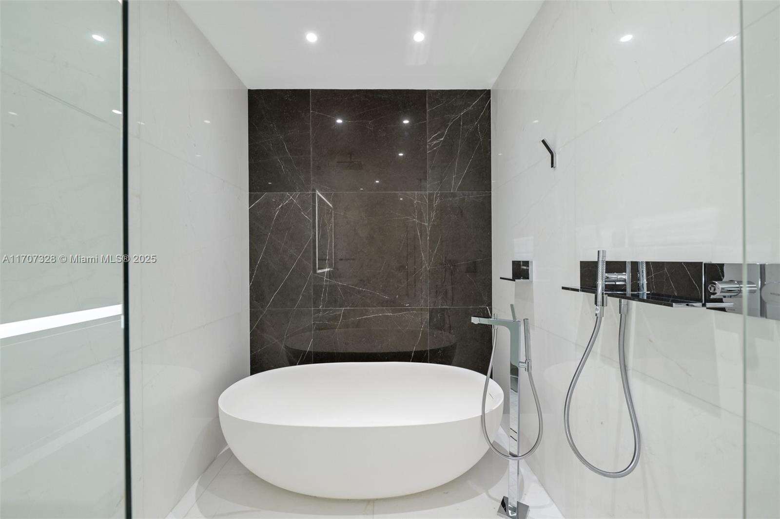 Enjoy direct bay and ocean views at Aston Martin Residences. This bright modern unit features 2 beds, 2.5 baths, Bulthaup kitchen cabinetry, Gaggenau appliances, and Thassos marble floors throughout. The unit has a split floor plan, en-suite bathrooms, Italian cabinetry, quartz countertops, backlit mirrors, a freestanding tub in the primary bath, rain showers, and white marble walls. AMR offers four floors of sky amenities, including golf and a putting green, cinema rooms, a 2-level fitness center, his-and-her spas, an indoor pool, an art gallery, a teen lounge, a children's playroom, a business center, a grand salon, an infinity pool, private cabanas, a superyacht marina and a helipad (pending approval).