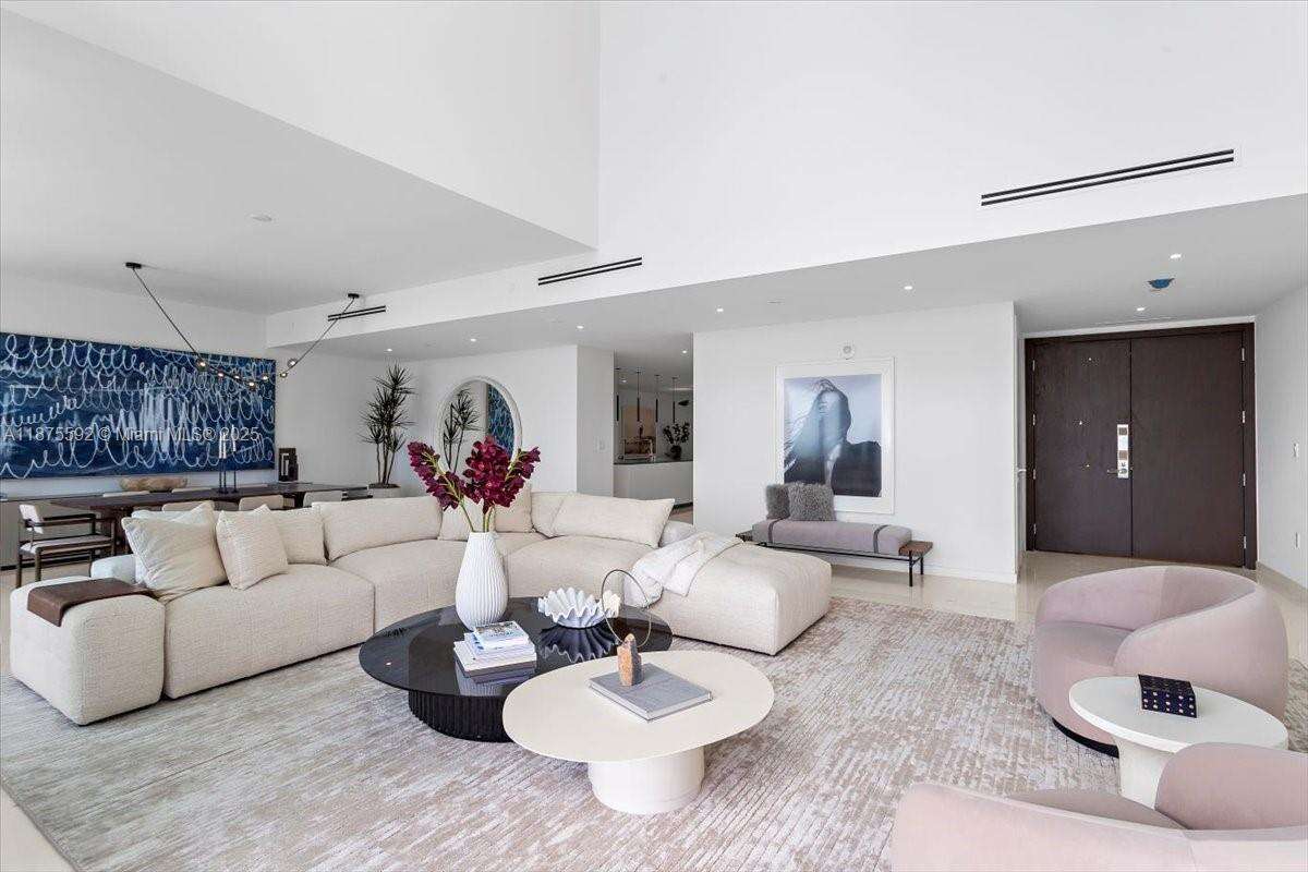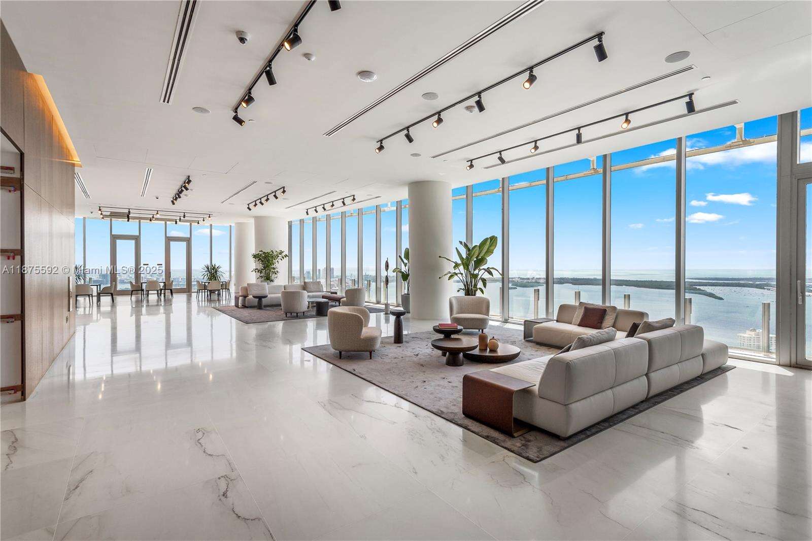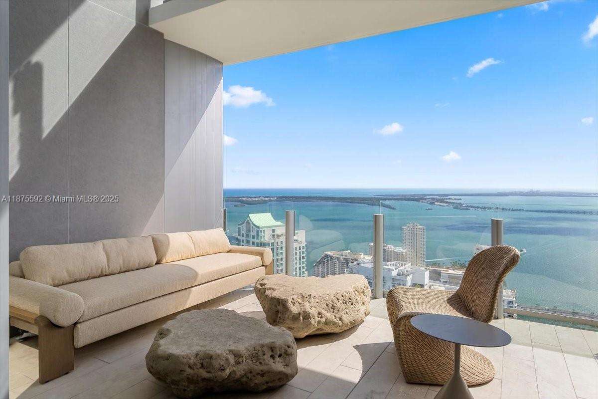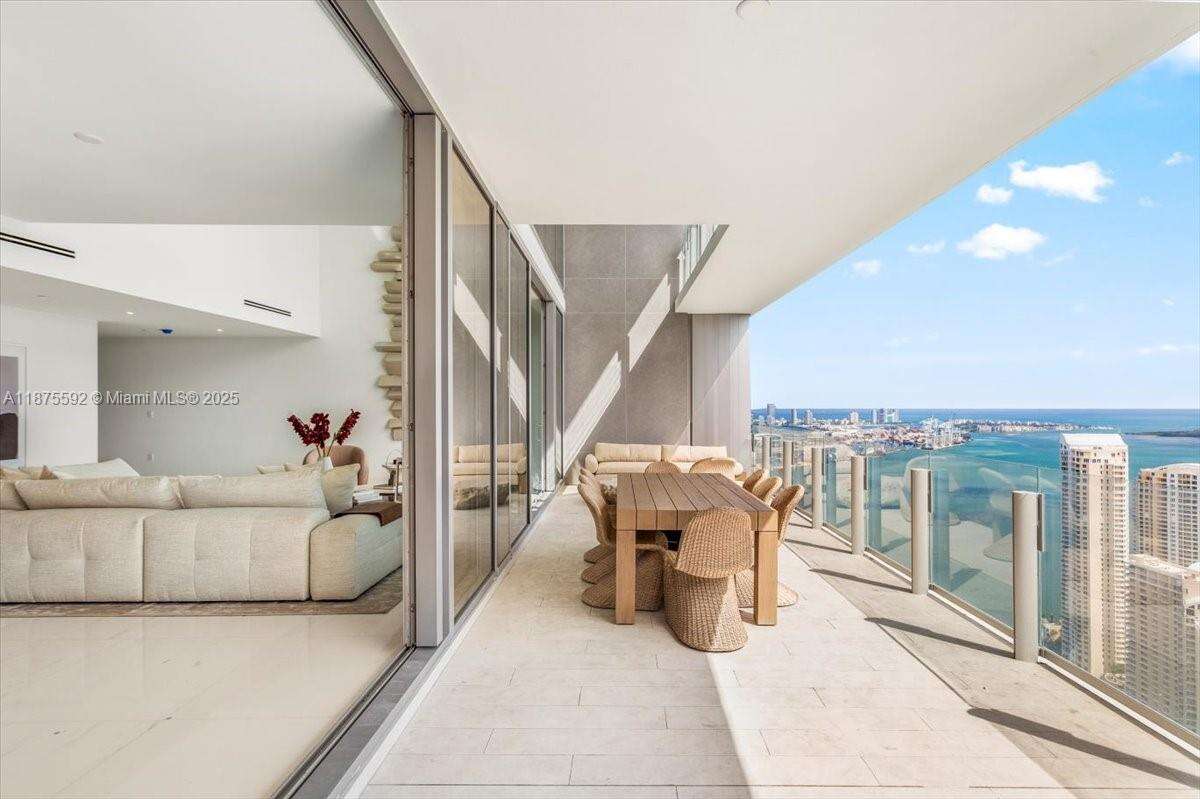 Sky Villa 5002: The highest & largest Sky residence at Aston Martin Miami. 1 of only 3 duplexes in the entire building. Double-height ceilings & windows offer unmatched turquoise water views and the iconic Brickell skyline. This nearly 5,000 total SqFt flow-through residence boasts 5 beds + den, 5.5 baths, 2 massive terraces, and includes a brand-new Aston Martin DBX. This isn’t just a residence; it’s a statement of opulence. AM offers over42,000 SF of world-class amenities: private marina; sky deck with pools; fitness center with spinning & boxing rooms; luxury spa with sauna, meditation room, beauty salon, & barbershop; two movie theaters; indoor pool; golf simulator; business center & more. Step outside to explore Downtown Miami & Brickell. Live in a rare masterpiece of luxury design.