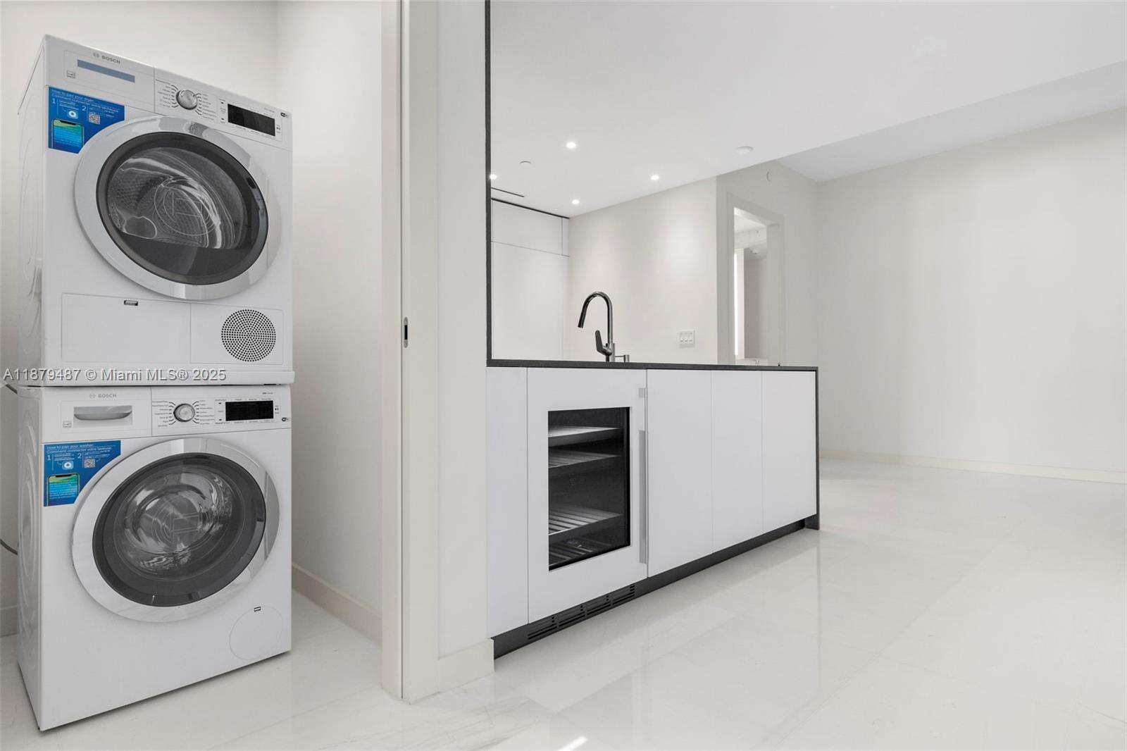 Welcome to an exquisite sanctuary on the 24th floor of the prestigious Aston Martin Residences. This one-of-a-kind 2-bedroom, 2.5-bathroom residence with a den embodies sophistication and elegance, featuring pristine white Thassos marble floors and a gourmet kitchen with custom Bulthaup cabinetry and premium Gaggenau appliances. Revel in breathtaking panoramic views of the city and bay, seamlessly blending indoor-outdoor living. Residents enjoy over 40,000 sq. ft. of unparalleled amenities, including a luxurious spa, cutting-edge gym, infinity pool, and private lounges. Nestled in the heart of Miami, you're steps away from the finest dining, shopping, and nightlife. Discover the pinnacle of luxury in this architectural masterpiece, offering a lifestyle tailored to the discerning.