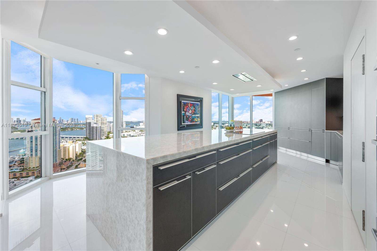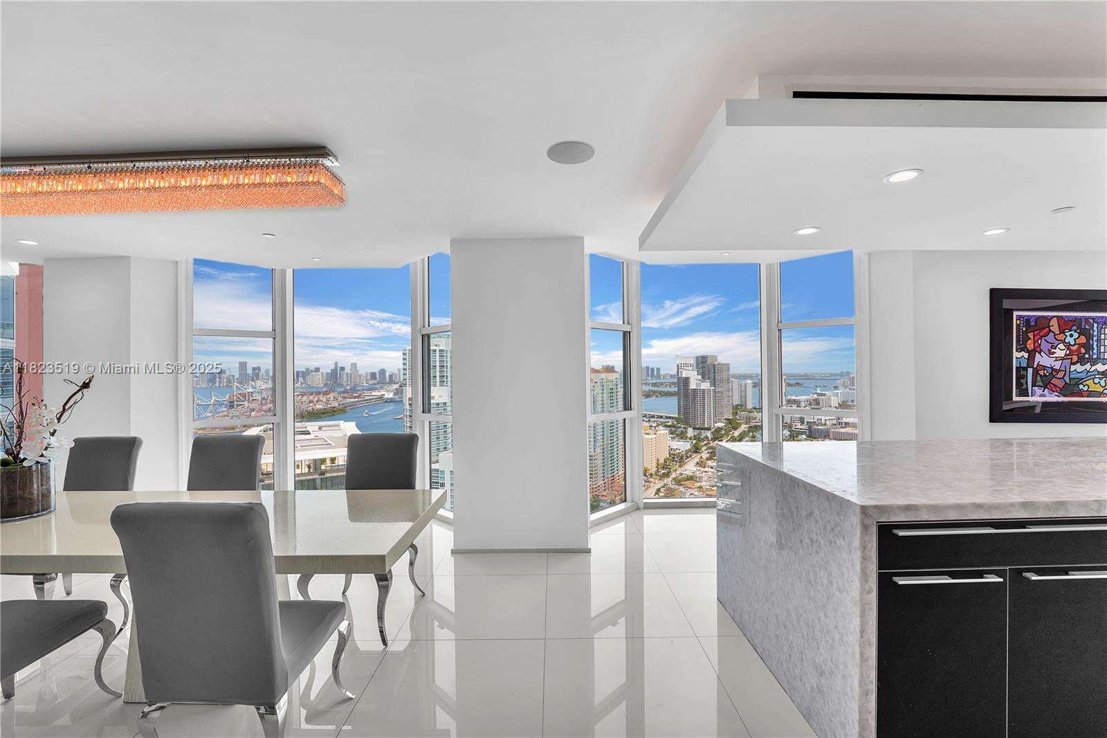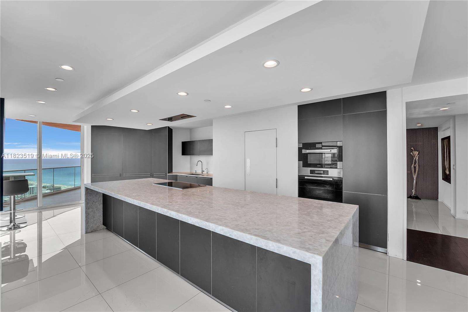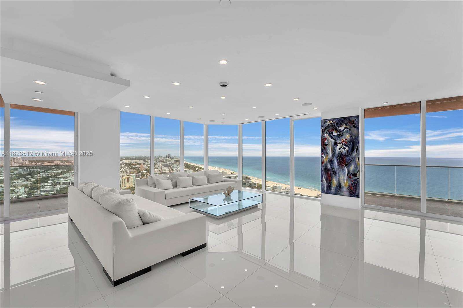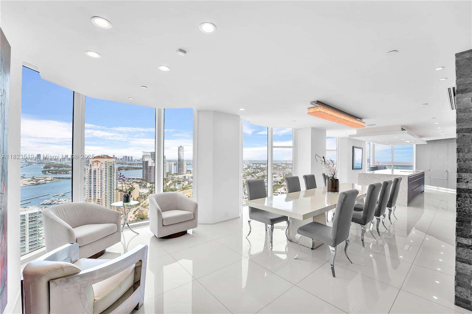 South Beach Sky Mansion Commanding the entire private 34th wing this 4,723 SF sky residence offers privacy, size, and panoramic 270° views. Floor-to-ceiling glass frames the Ocean, Bay, downtown skyline, and Park, w 4 infinity balconies. Step from your private elevators into artfully reimagined interiors: an open-concept living space flows into a Bulthaup chef’s kitchen w waterfall island, custom cabinetry, and premium appliances. Features 2 oversized primary suites, designer baths, and no shared walls—a rarity. Enjoy full access to Portofino's $60M renovation, incl a soaring new lobby, resort pools, spa, tennis and gym. Experience peace, prestige, and privacy from a South of Fifth location just steps from the beach and worldclass dining. Unit newly furnished and renovated.