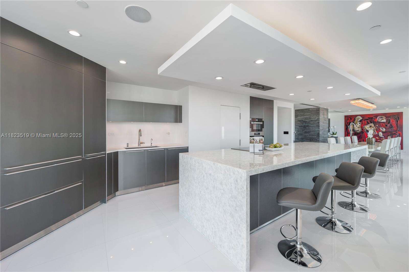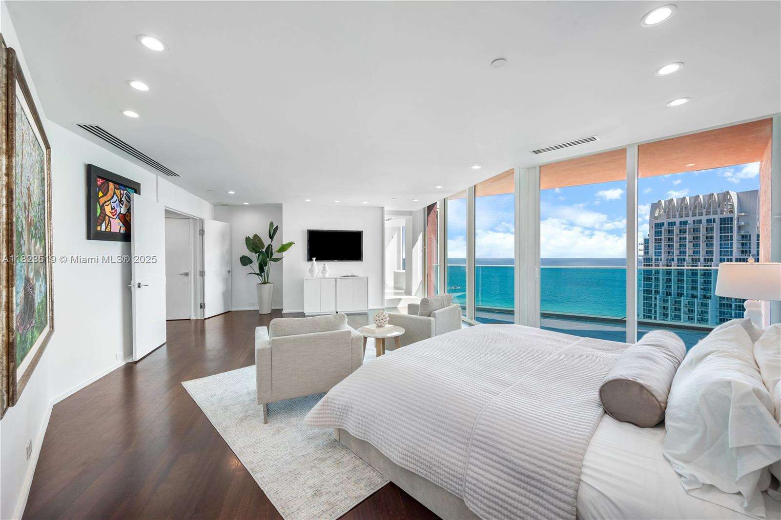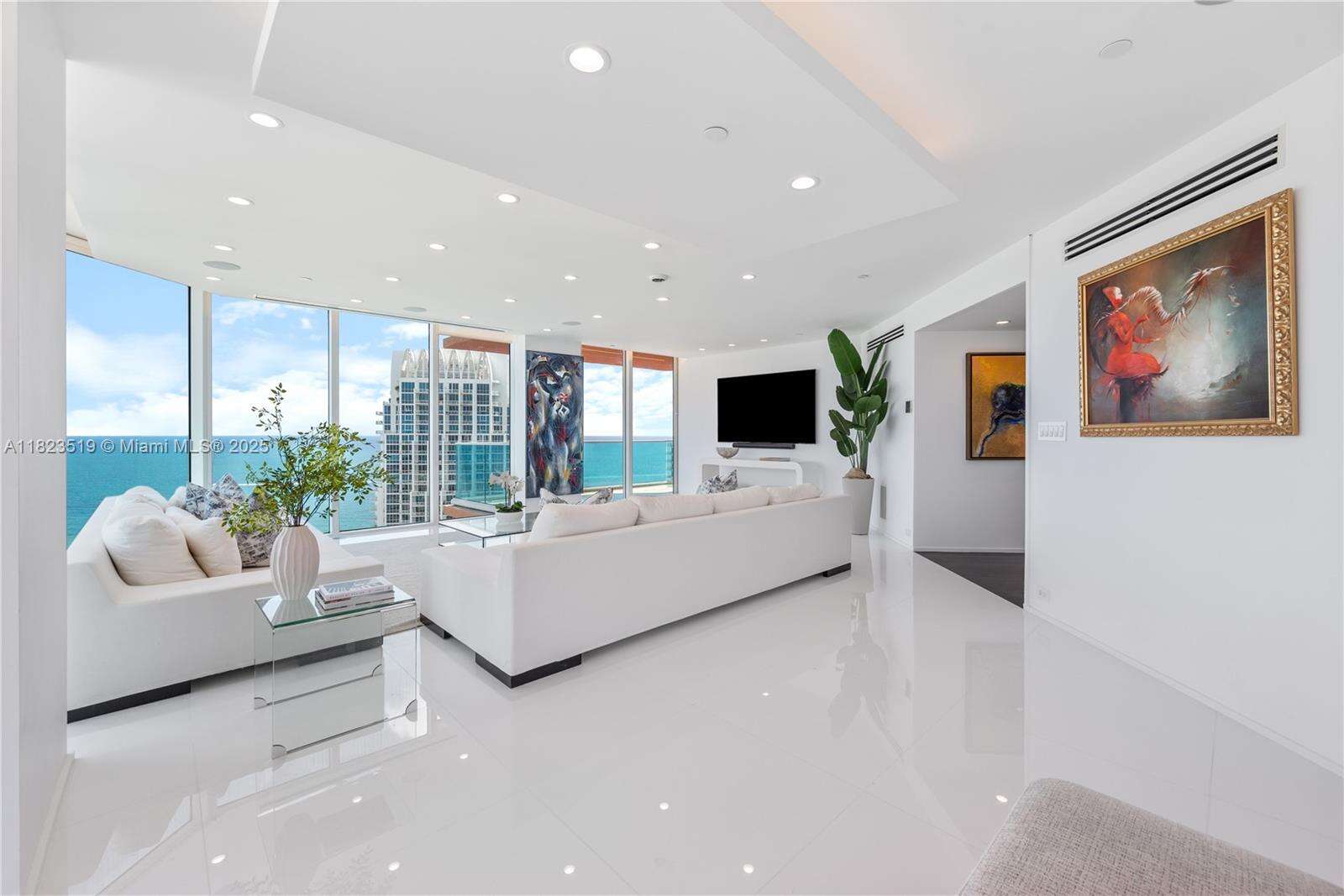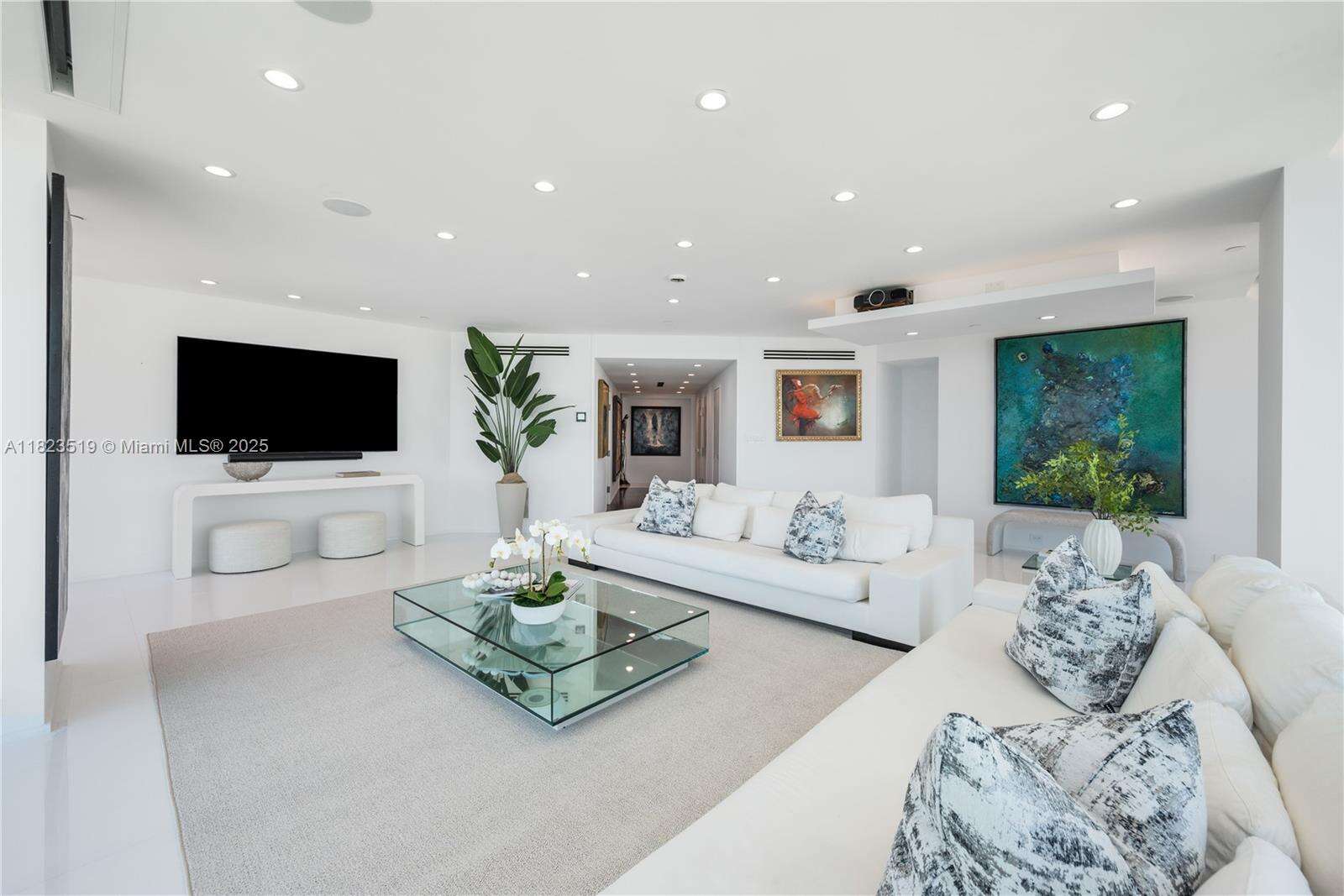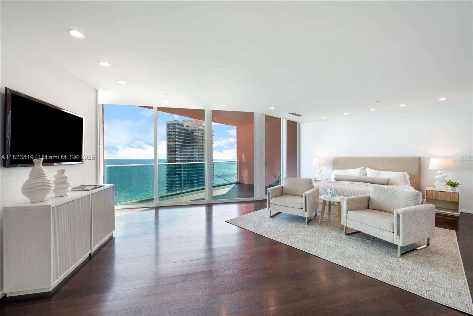 South Beach Sky Mansion Commanding the entire private 34th wing this 4,723 SF sky residence offers privacy, size, and panoramic 270° views. Floor-to-ceiling glass frames the Ocean, Bay, downtown skyline, and Park, w 4 infinity balconies. Step from your private elevators into artfully reimagined interiors: an open-concept living space flows into a Bulthaup chef’s kitchen w waterfall island, custom cabinetry, and premium appliances. Features 2 oversized primary suites, designer baths, and no shared walls—a rarity. Enjoy full access to Portofino's $60M renovation, incl a soaring new lobby, resort pools, spa, tennis and gym. Experience peace, prestige, and privacy from a South of Fifth location just steps from the beach and worldclass dining. Unit newly furnished and renovated.