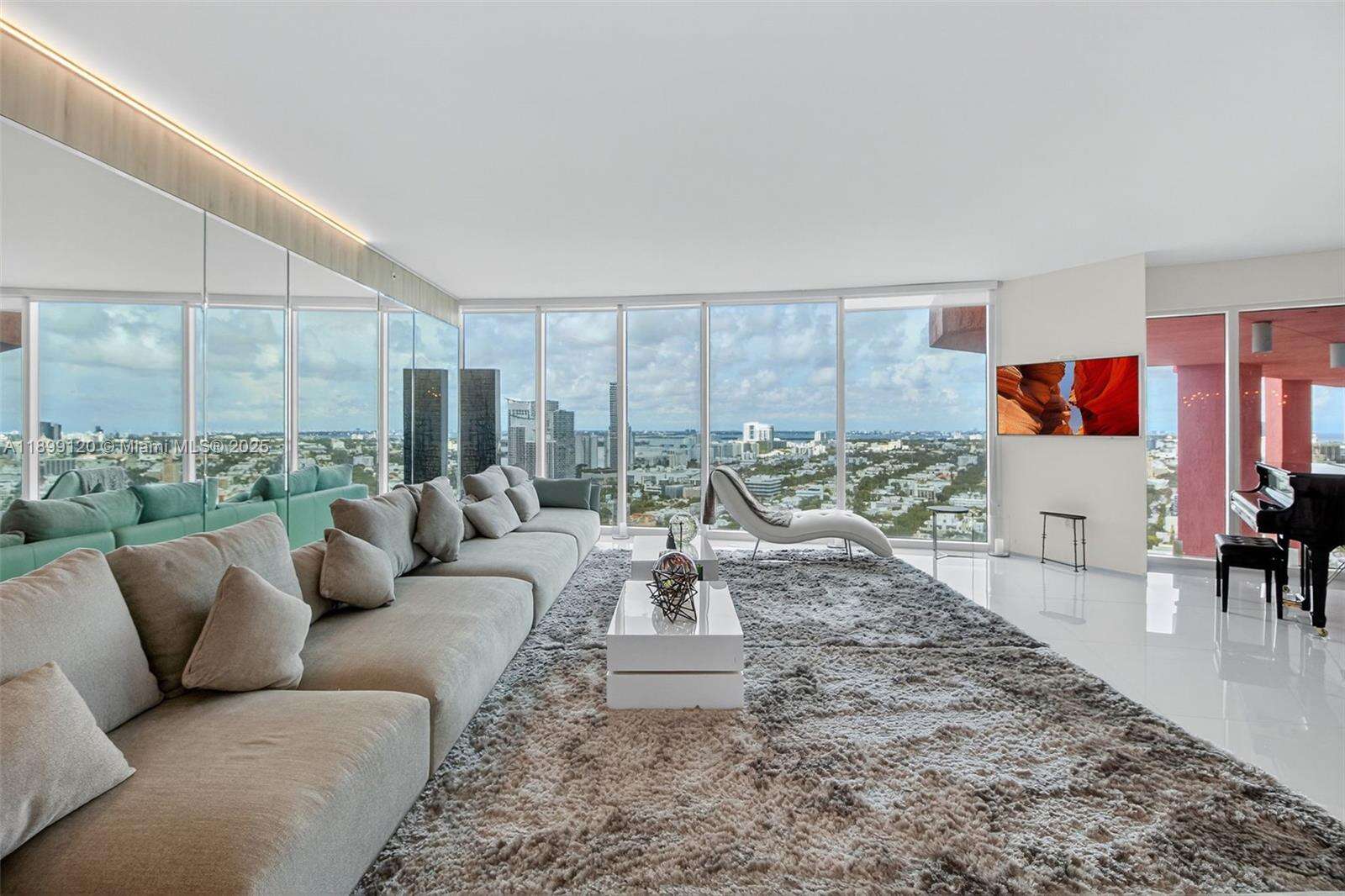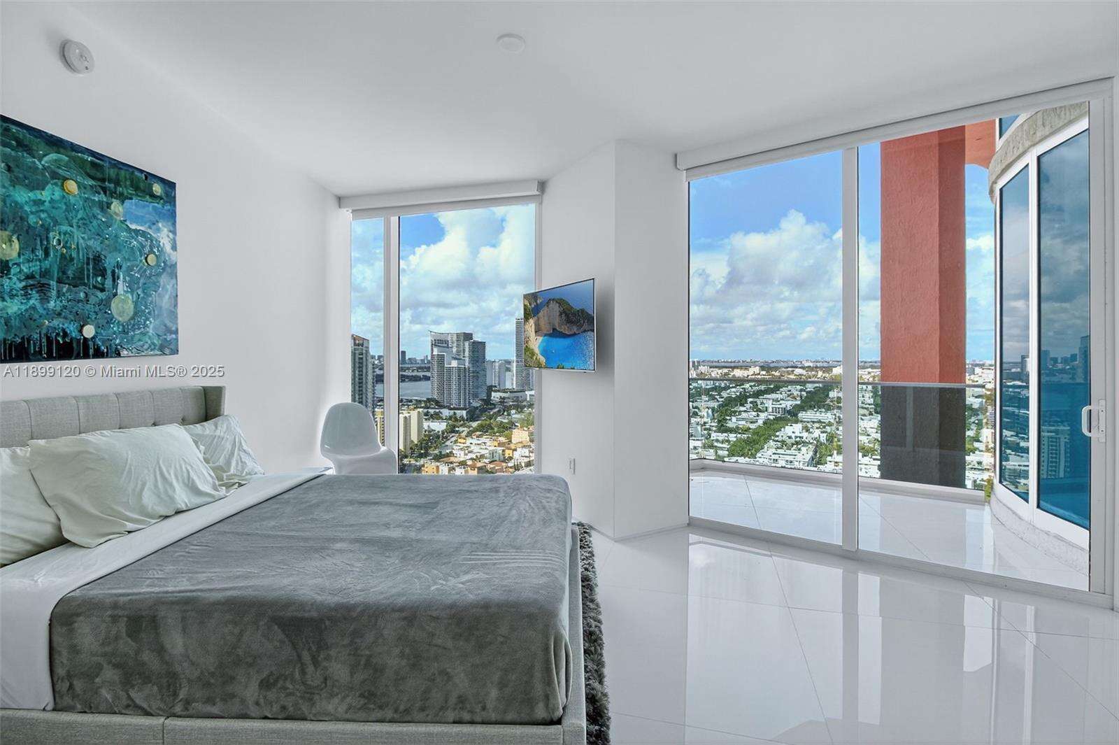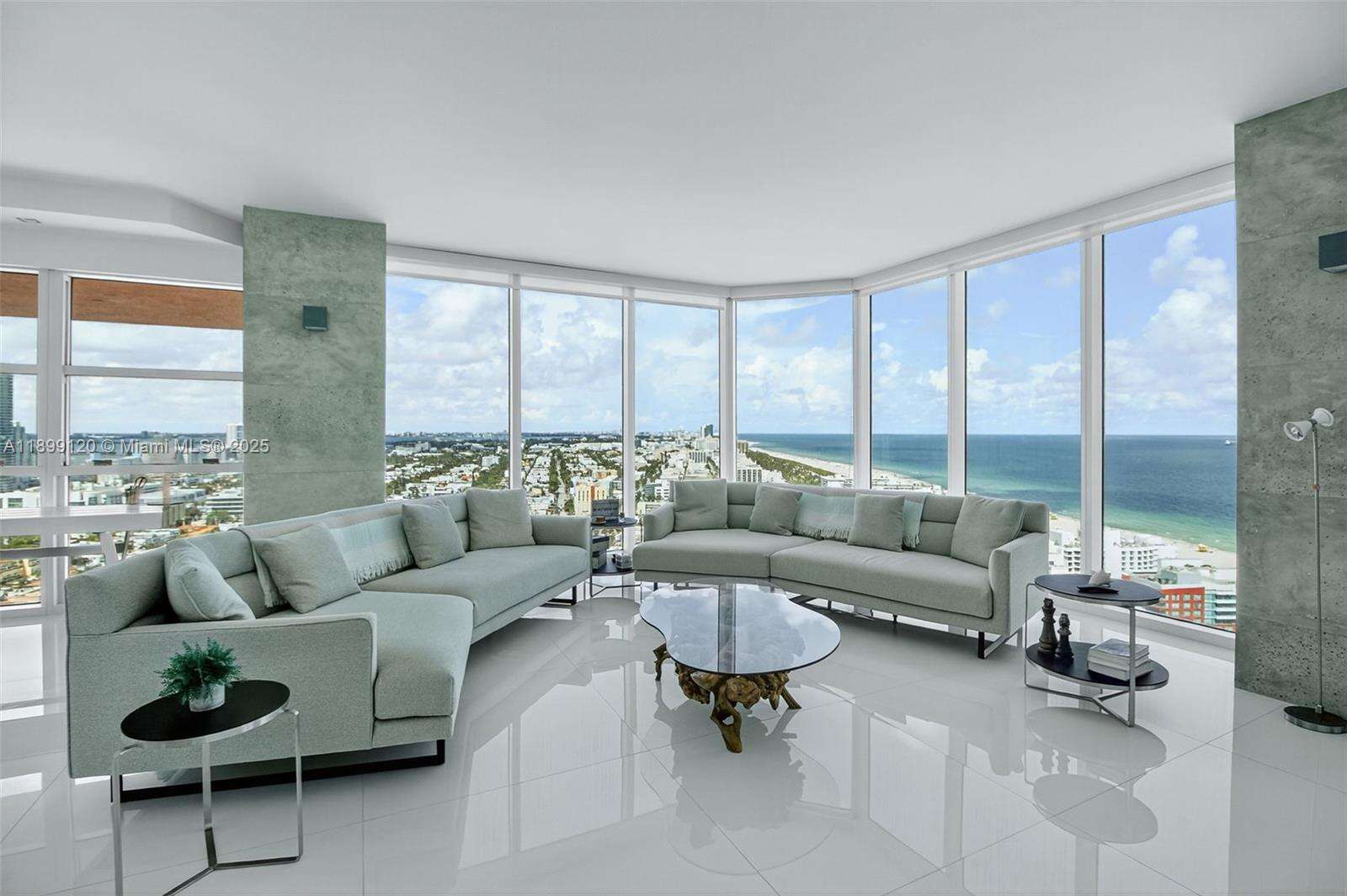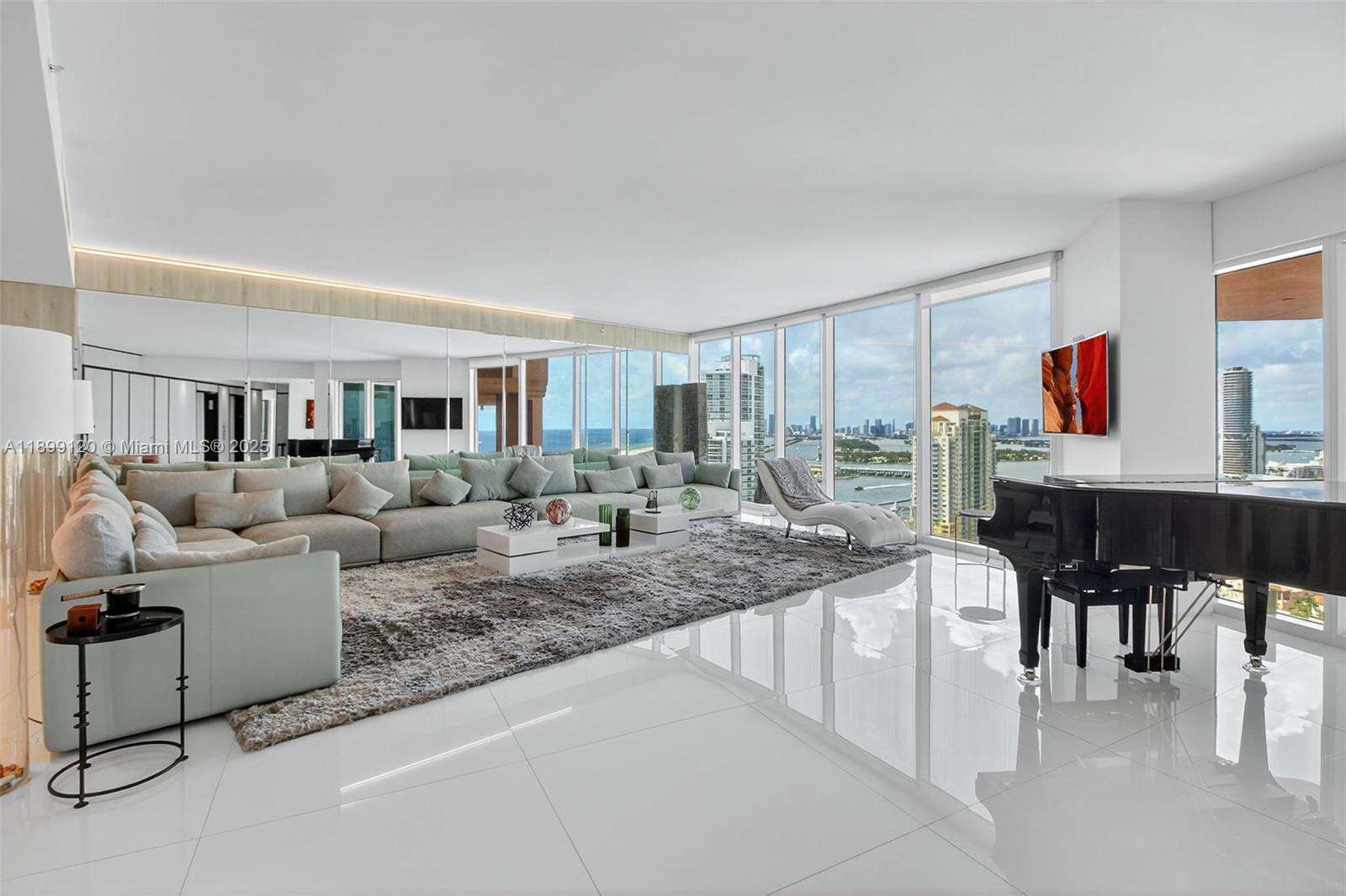 One of a kind, a dream home in the sky! 2-floor residence, boasting 5,450 SqFt to easily accommodate any special event or entertaining occasion. Mega sized flow-through living room and open kitchen with a bridge encased in glass leading to an 800+ SqFt panoramic Great Room. Endless direct views of the Atlantic Ocean, Biscayne Bay, Miami Skyline, and South Beach both day and night with incredible sunrises and sunsets. The lower floor of this townhouse offers all 3 bedrooms, providing excellent privacy and separation of space. The master bedroom overlooking the ocean offers his and hers bathrooms and closets, spa-like bathroom including a double rain shower and separate large jacuzzi tub with an ocean view.