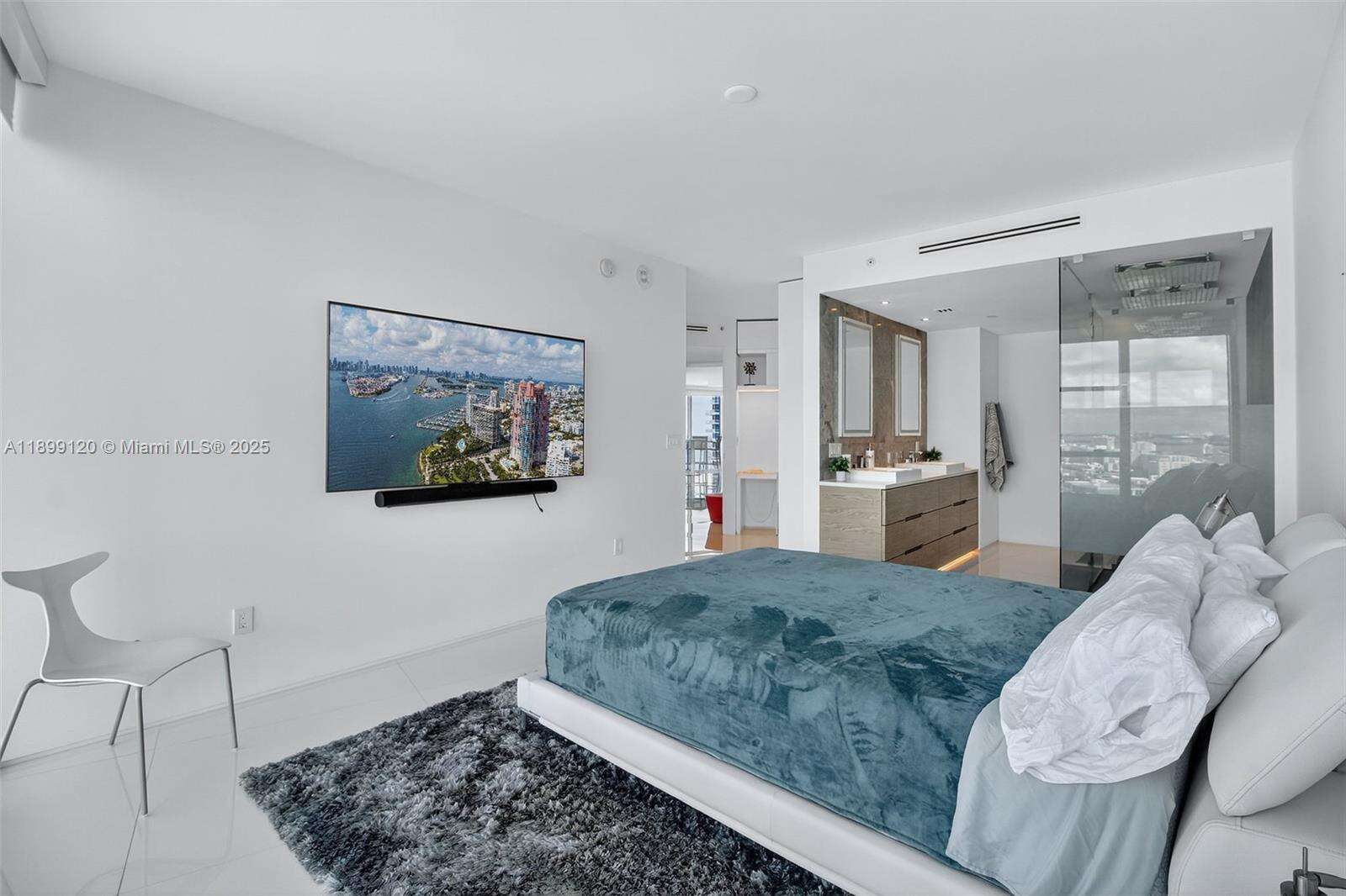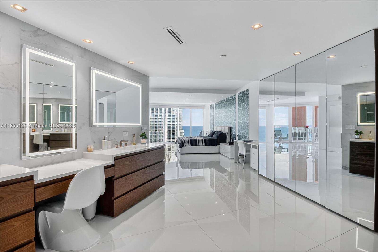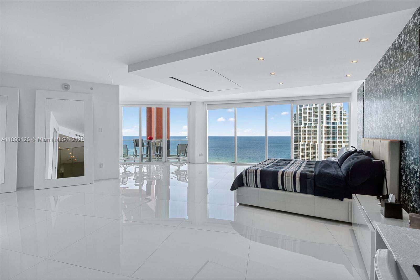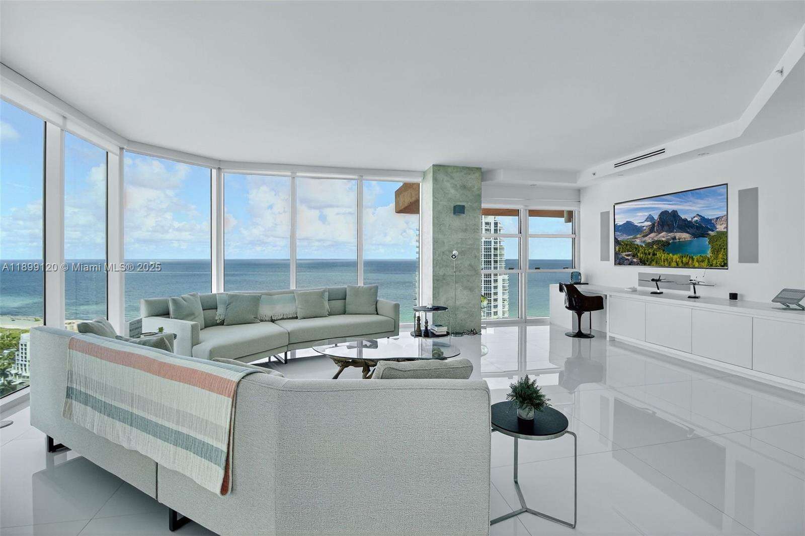 One of a kind, a dream home in the sky! 2-floor residence, boasting 5,450 SqFt to easily accommodate any special event or entertaining occasion. Mega sized flow-through living room and open kitchen with a bridge encased in glass leading to an 800+ SqFt panoramic Great Room. Endless direct views of the Atlantic Ocean, Biscayne Bay, Miami Skyline, and South Beach both day and night with incredible sunrises and sunsets. The lower floor of this townhouse offers all 3 bedrooms, providing excellent privacy and separation of space. The master bedroom overlooking the ocean offers his and hers bathrooms and closets, spa-like bathroom including a double rain shower and separate large jacuzzi tub with an ocean view.