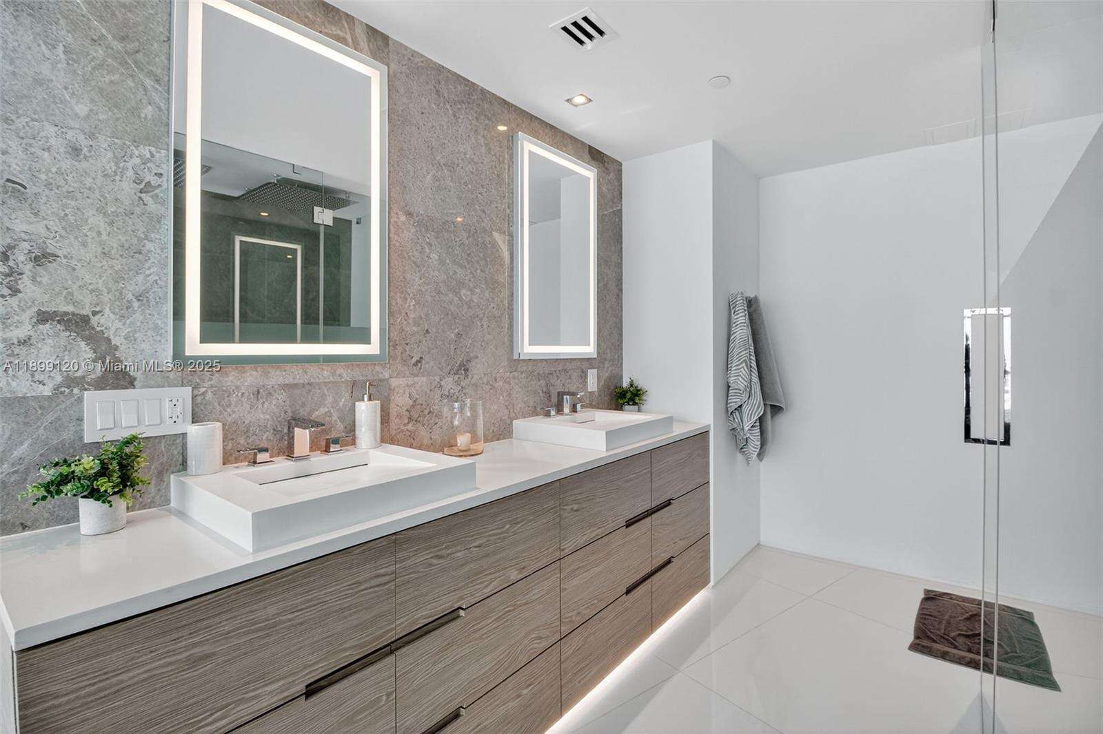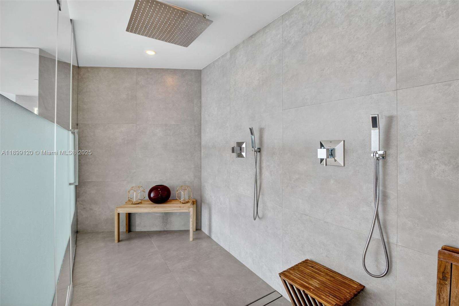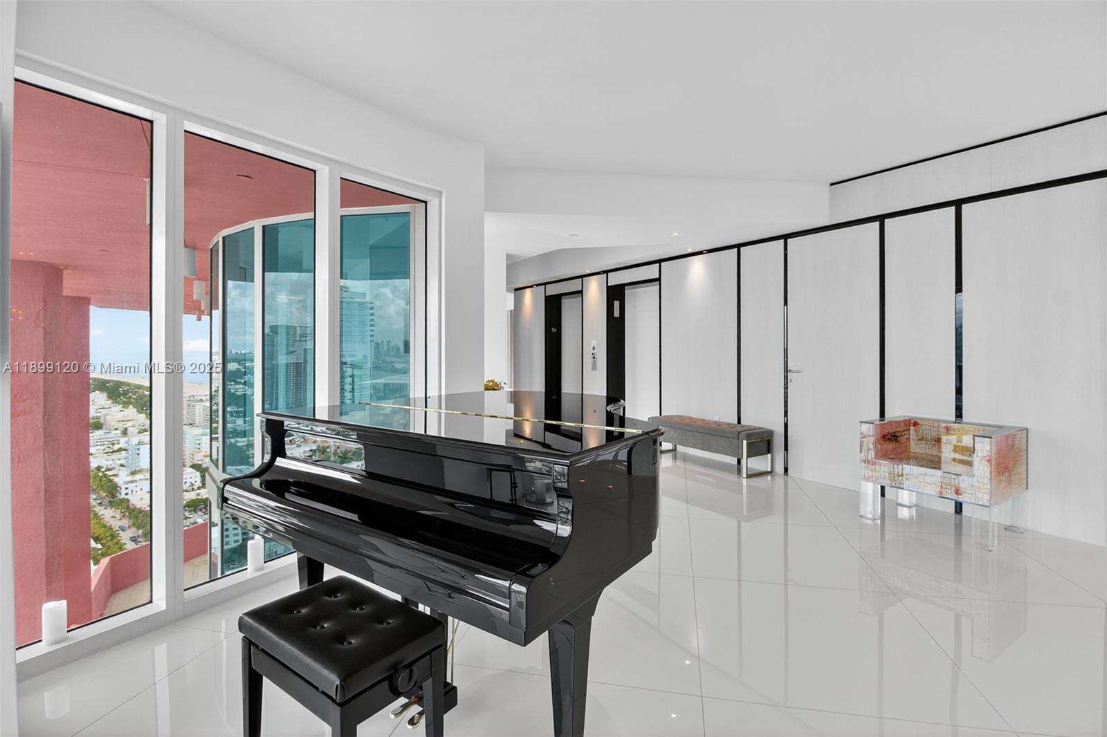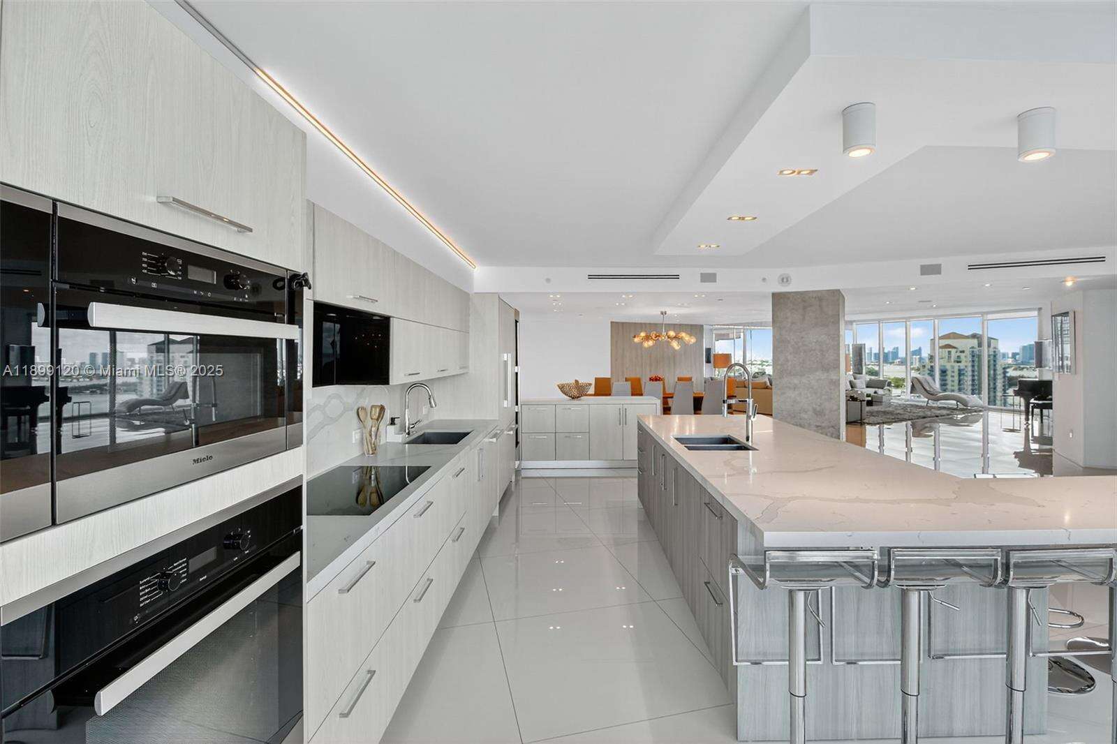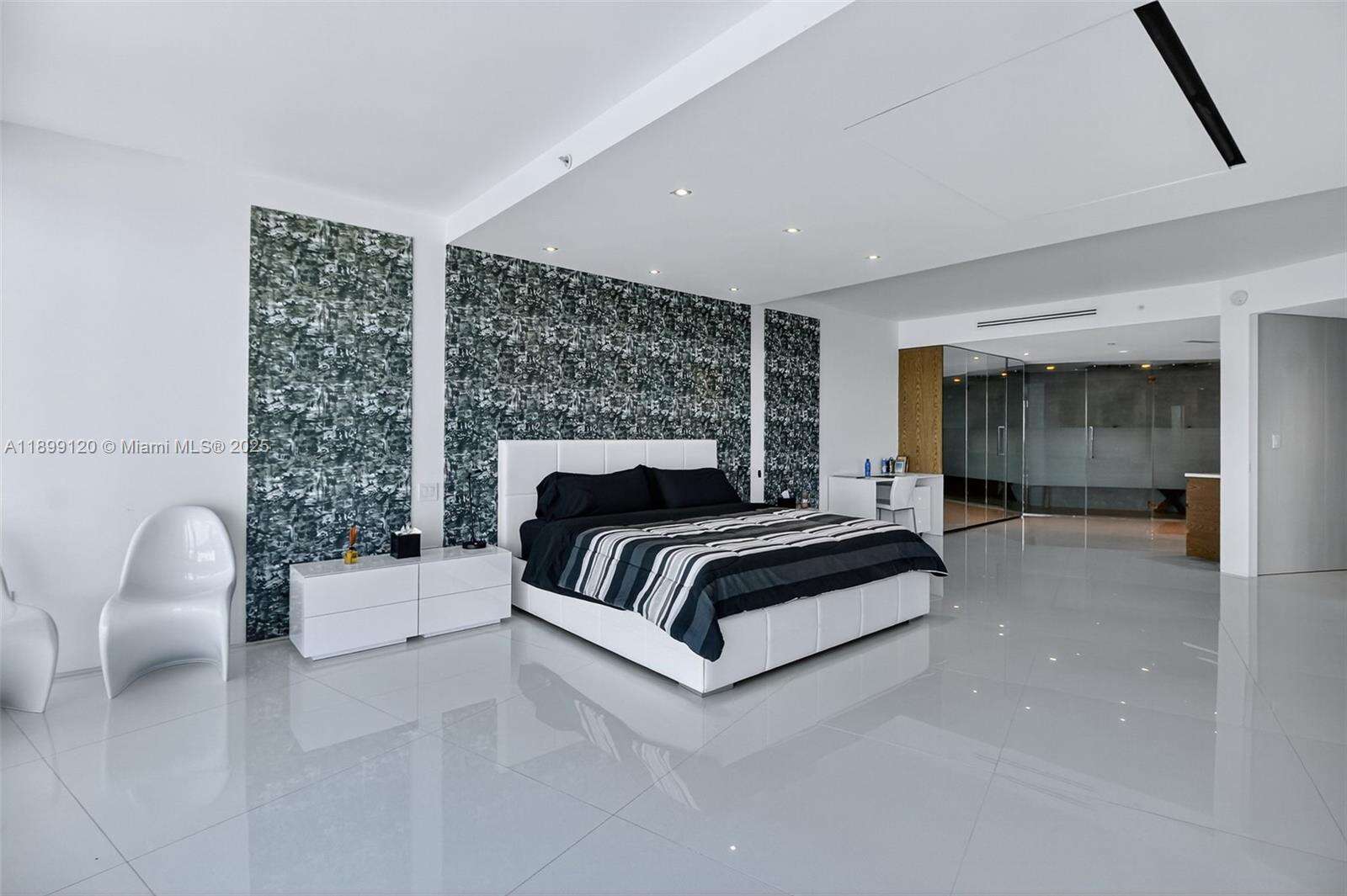 One of a kind, a dream home in the sky! 2-floor residence, boasting 5,450 SqFt to easily accommodate any special event or entertaining occasion. Mega sized flow-through living room and open kitchen with a bridge encased in glass leading to an 800+ SqFt panoramic Great Room. Endless direct views of the Atlantic Ocean, Biscayne Bay, Miami Skyline, and South Beach both day and night with incredible sunrises and sunsets. The lower floor of this townhouse offers all 3 bedrooms, providing excellent privacy and separation of space. The master bedroom overlooking the ocean offers his and hers bathrooms and closets, spa-like bathroom including a double rain shower and separate large jacuzzi tub with an ocean view.
