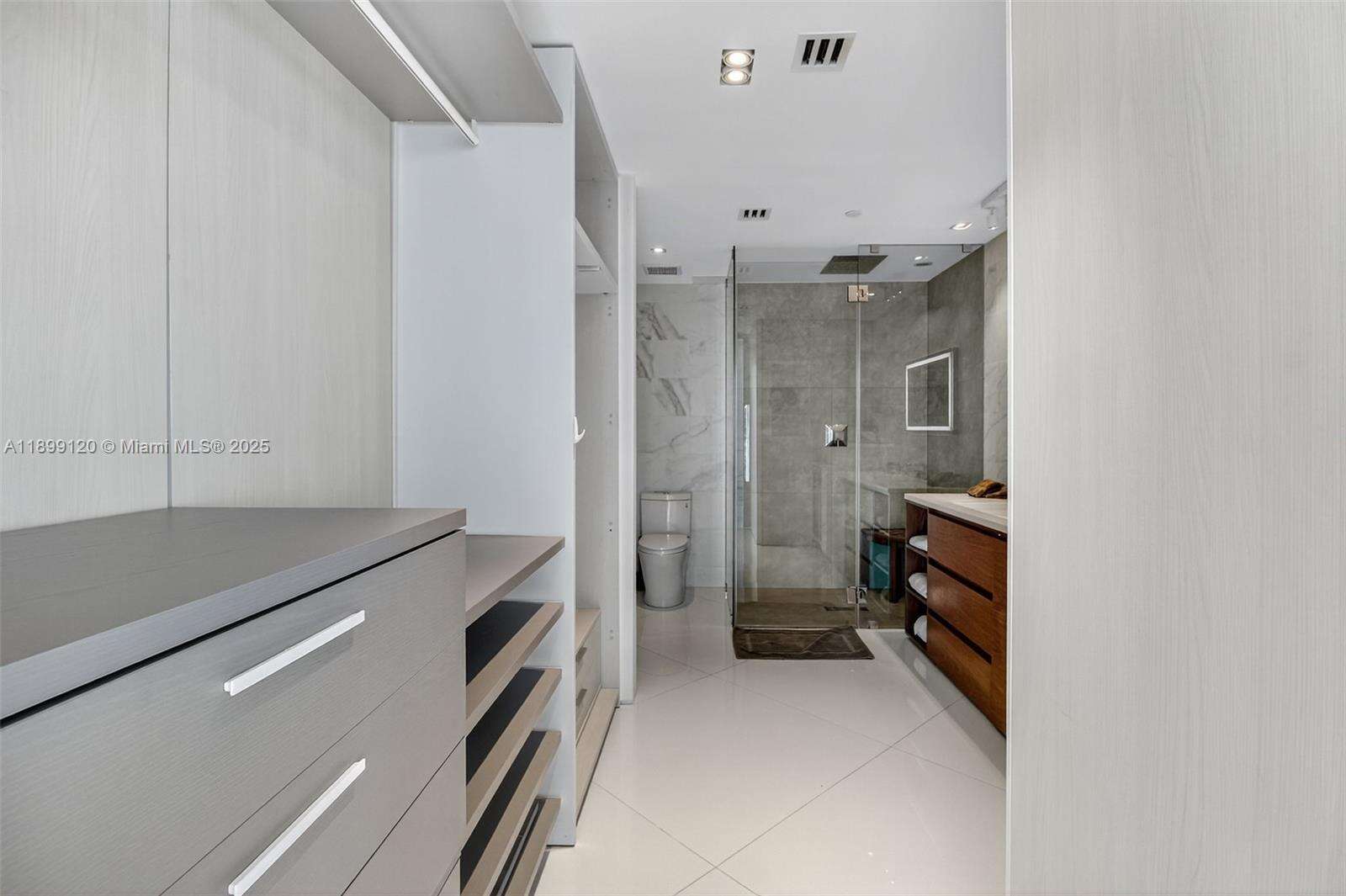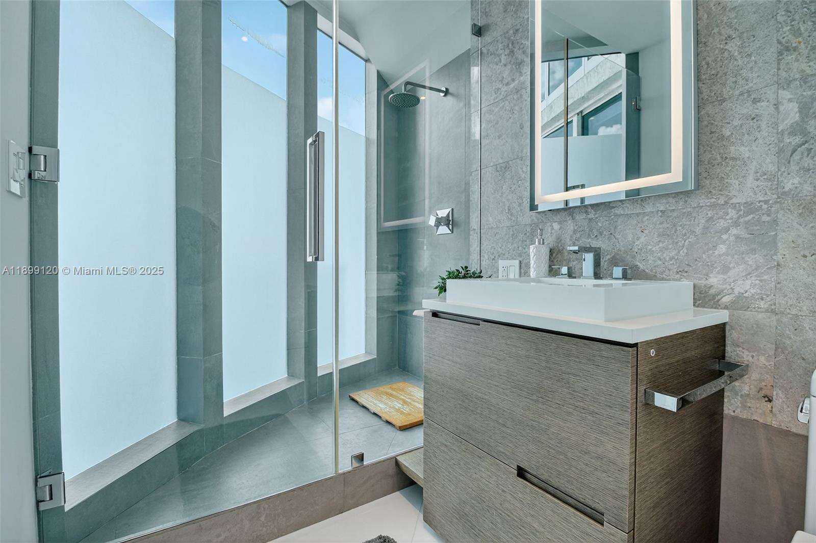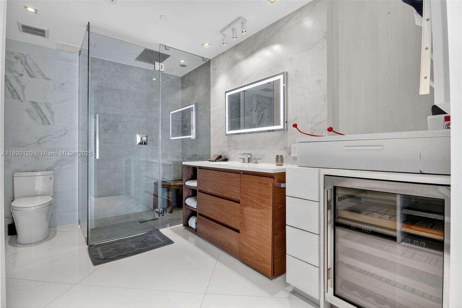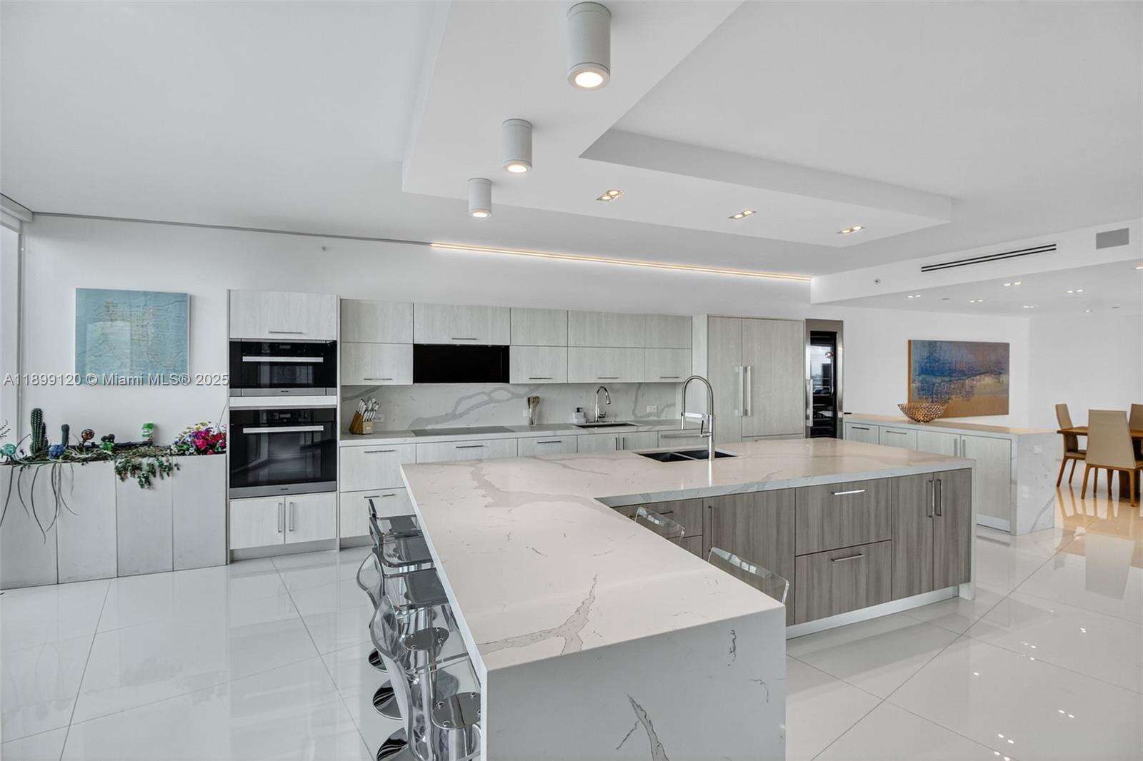 One of a kind, a dream home in the sky! 2-floor residence, boasting 5,450 SqFt to easily accommodate any special event or entertaining occasion. Mega sized flow-through living room and open kitchen with a bridge encased in glass leading to an 800+ SqFt panoramic Great Room. Endless direct views of the Atlantic Ocean, Biscayne Bay, Miami Skyline, and South Beach both day and night with incredible sunrises and sunsets. The lower floor of this townhouse offers all 3 bedrooms, providing excellent privacy and separation of space. The master bedroom overlooking the ocean offers his and hers bathrooms and closets, spa-like bathroom including a double rain shower and separate large jacuzzi tub with an ocean view.
