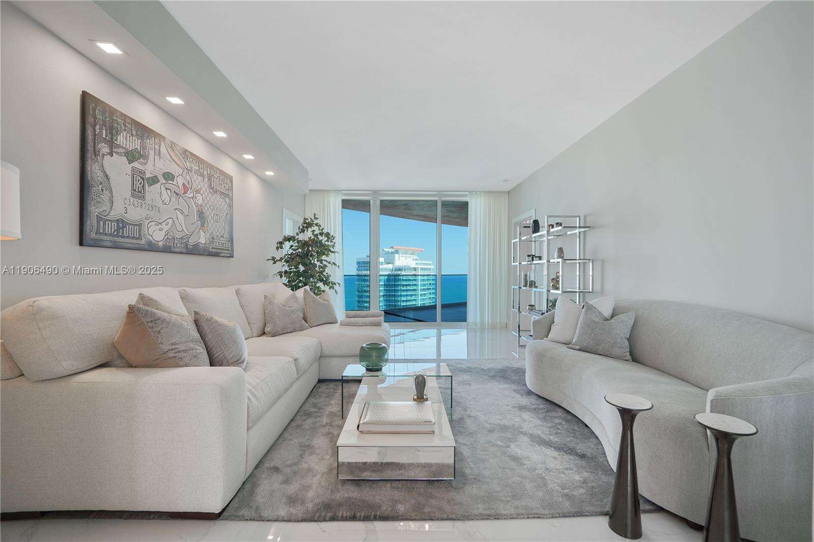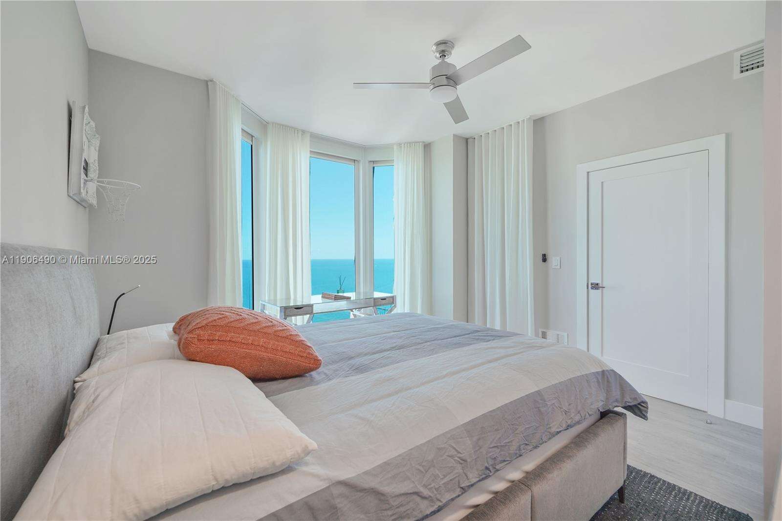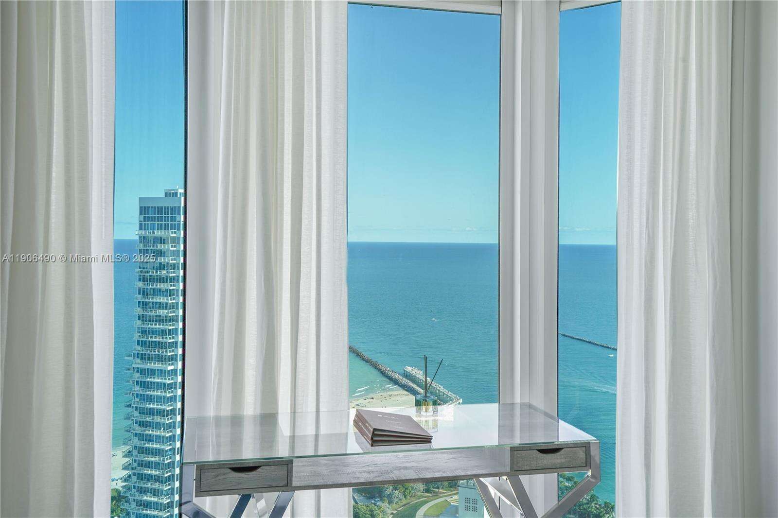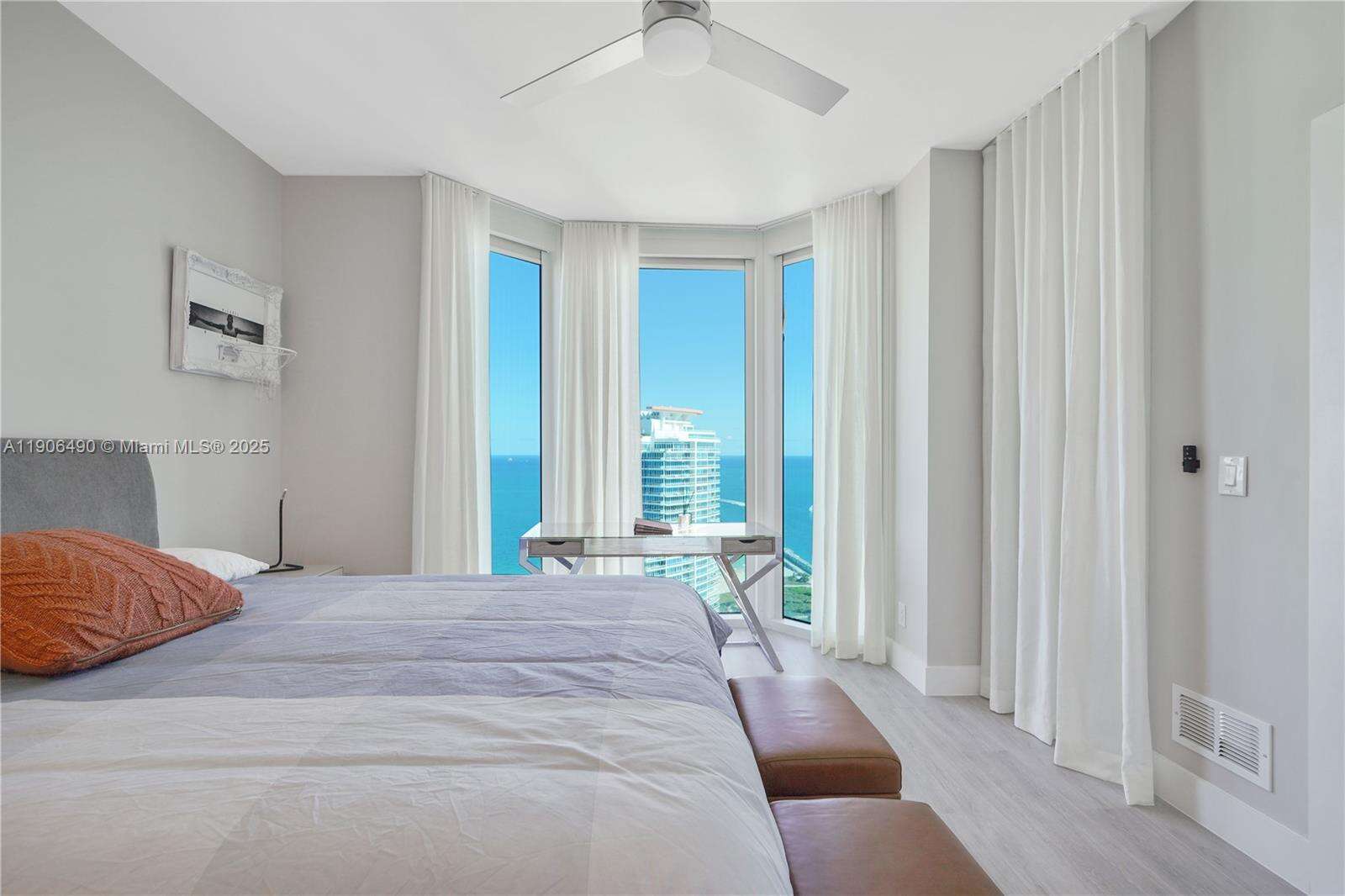 Incredible opportunity to own a completely renovated 3 bed/3 full bath residence on the 43rd floor with a private gallery entrance at the prestigious Portofino Tower in the world renowned South of Fifth neighborhood. Offering the pinnacle level of privacy, this residence is the only home on the 43rd floor of Portofino Tower 3. Spectacular flow-through 2,040 SqFt + private elevator foyer with private & spacious sunrise & sunset balconies, boasting breathtaking unobstructed panoramic views day & night of the Atlantic Ocean, Biscayne Bay, Miami skyline, South Beach & cruise ship channel. Unique opportunity to live in this mint condition home in the sky offering newly updated floors throughout, kitchen, bathrooms & lighting. A truly incredible & rare offering. See video in virtual tour link.