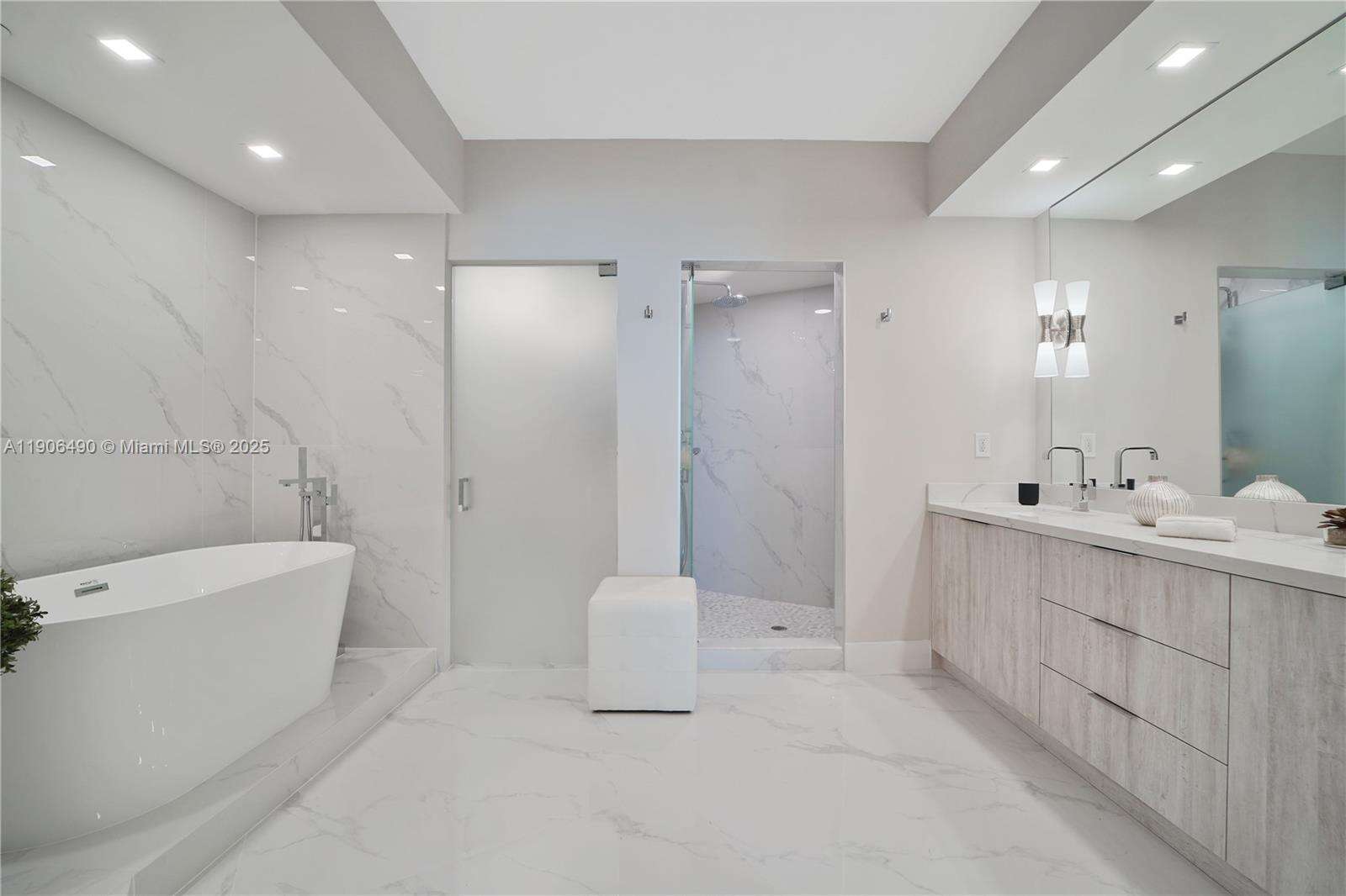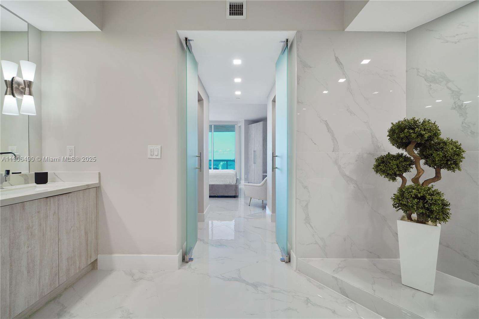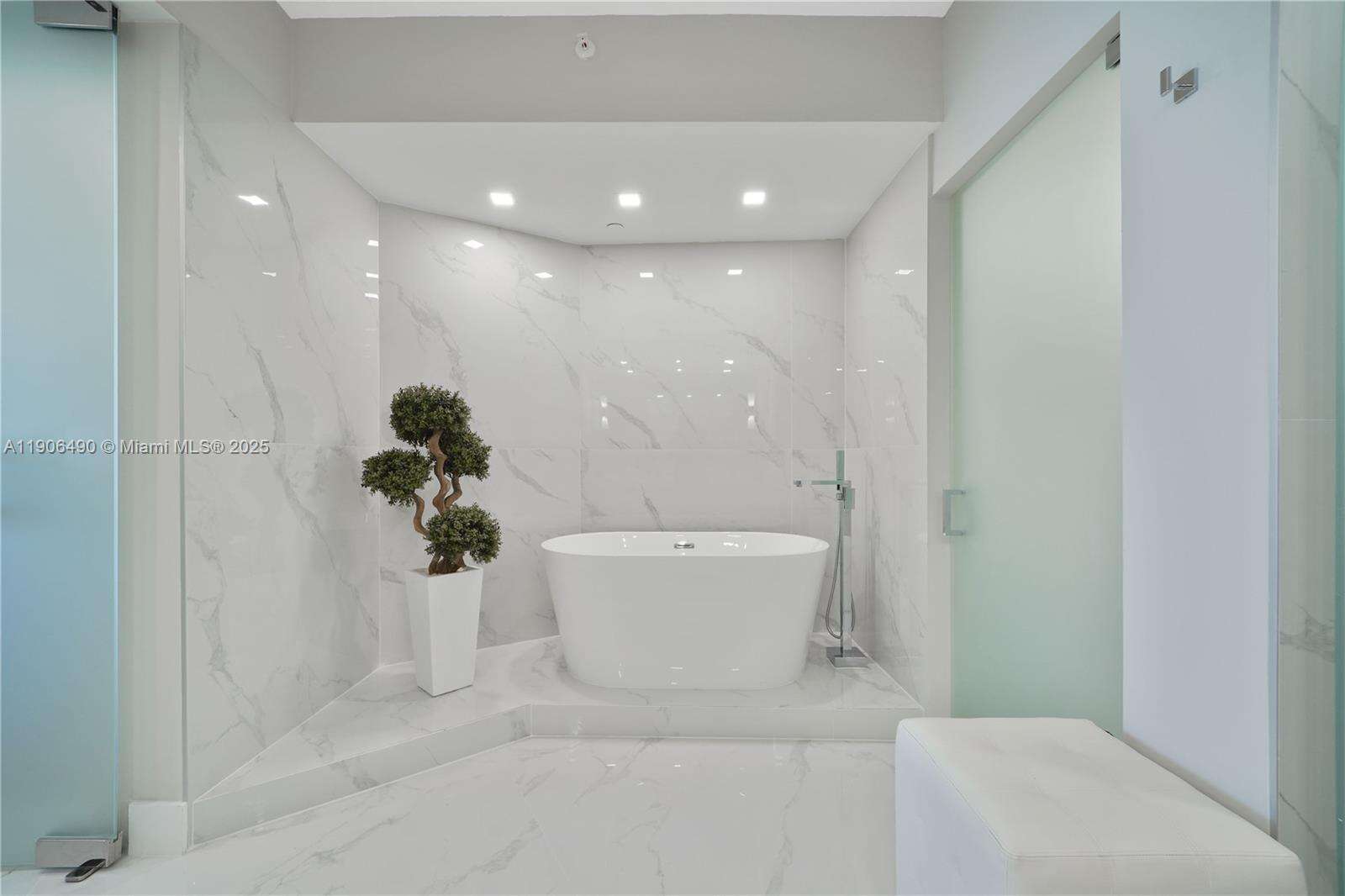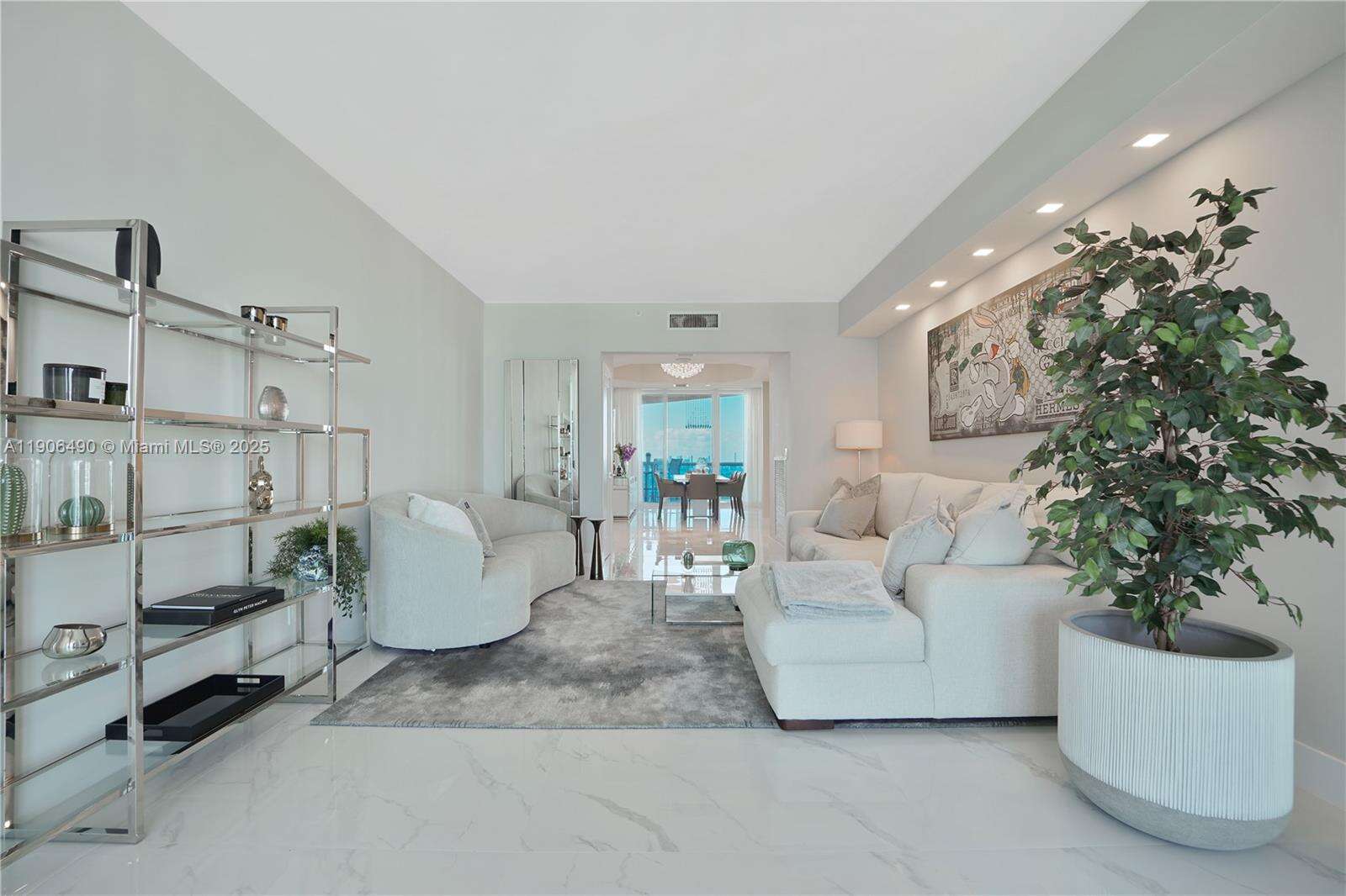 Incredible opportunity to own a completely renovated 3 bed/3 full bath residence on the 43rd floor with a private gallery entrance at the prestigious Portofino Tower in the world renowned South of Fifth neighborhood. Offering the pinnacle level of privacy, this residence is the only home on the 43rd floor of Portofino Tower 3. Spectacular flow-through 2,040 SqFt + private elevator foyer with private & spacious sunrise & sunset balconies, boasting breathtaking unobstructed panoramic views day & night of the Atlantic Ocean, Biscayne Bay, Miami skyline, South Beach & cruise ship channel. Unique opportunity to live in this mint condition home in the sky offering newly updated floors throughout, kitchen, bathrooms & lighting. A truly incredible & rare offering. See video in virtual tour link.