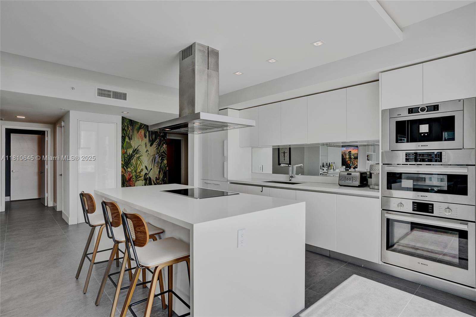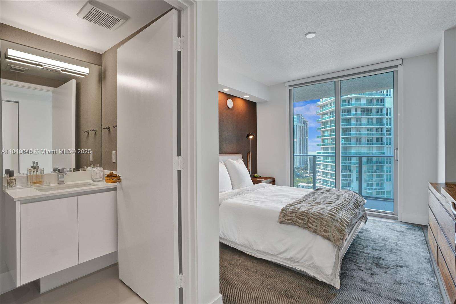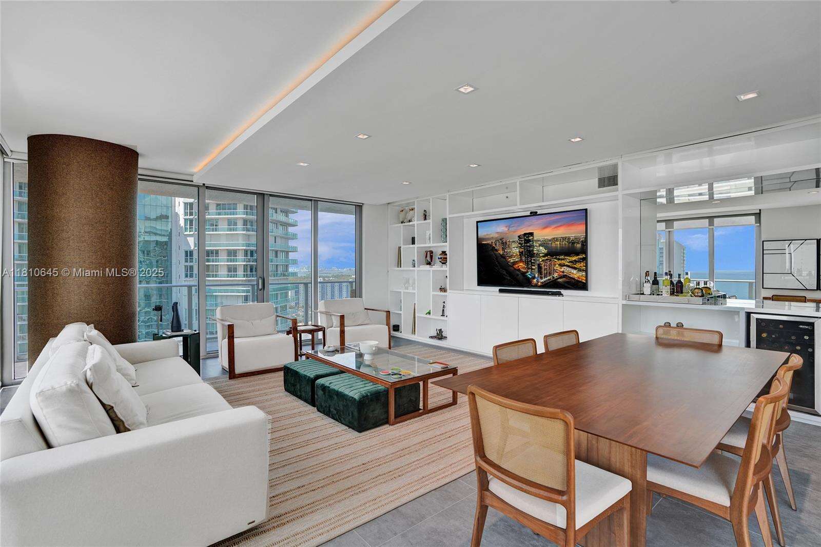 Experience turnkey luxury in this fully furnished 3BD/3.5BA corner residence on a high floor with SE exposure and breathtaking panoramic views of the Intracoastal, ocean, and skyline. This coveted line boasts 10ft ceilings, impact glass, a spacious wraparound balcony, and elegant upgrades including custom millwork, LED cove lighting, textured designer wallpaper, floating vanities, motorized shades, and high-end finishes throughout. The sleek kitchen features European appliances, while the spa-like primary suite offers a walk-in closet and serene ambiance. Includes storage, 1 garage space + valet. Enjoy resort-style amenities: Beach Club, pools, gym, spa, theater, concierge & more—all just steps from world-class shopping, dining, and the beach.