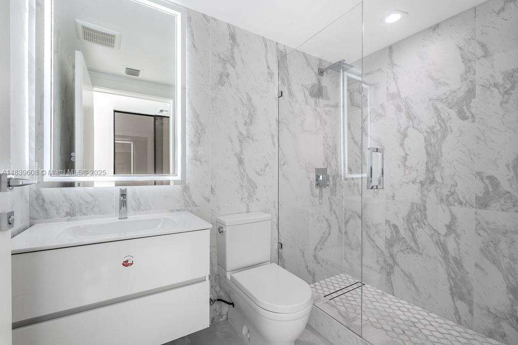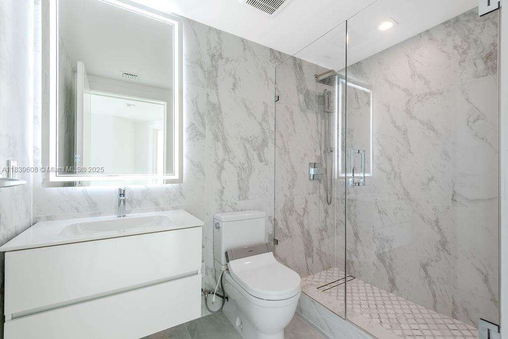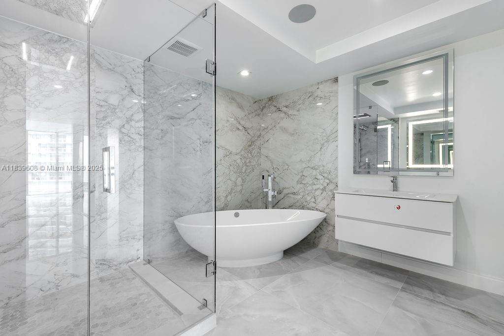 Luxury 3/3 Apartment with Exclusive Finishes This high-end apartment features glass-ceramic flooring, used only in penthouses of the building, and a stunning Dekton Arga feature wall. The kitchen and island are finished in premium porcelain stoneware, complemented by a SUBZERO stove. Enjoy a sleek custom Velum ceiling system with built-in lighting, and Italian designer doors and glass partitions by DoorArreda throughout. The master bathroom boasts a wellness shower and floor-mounted tub filler by Aquabrass, luxurious Dekton finishes, and a Villeroy & Boch vanity. Both master and guest bathrooms are equipped with TOTO smart toilets and have unique, upscale finishes not provided originally.A perfect blend of innovation, elegance, and quality.