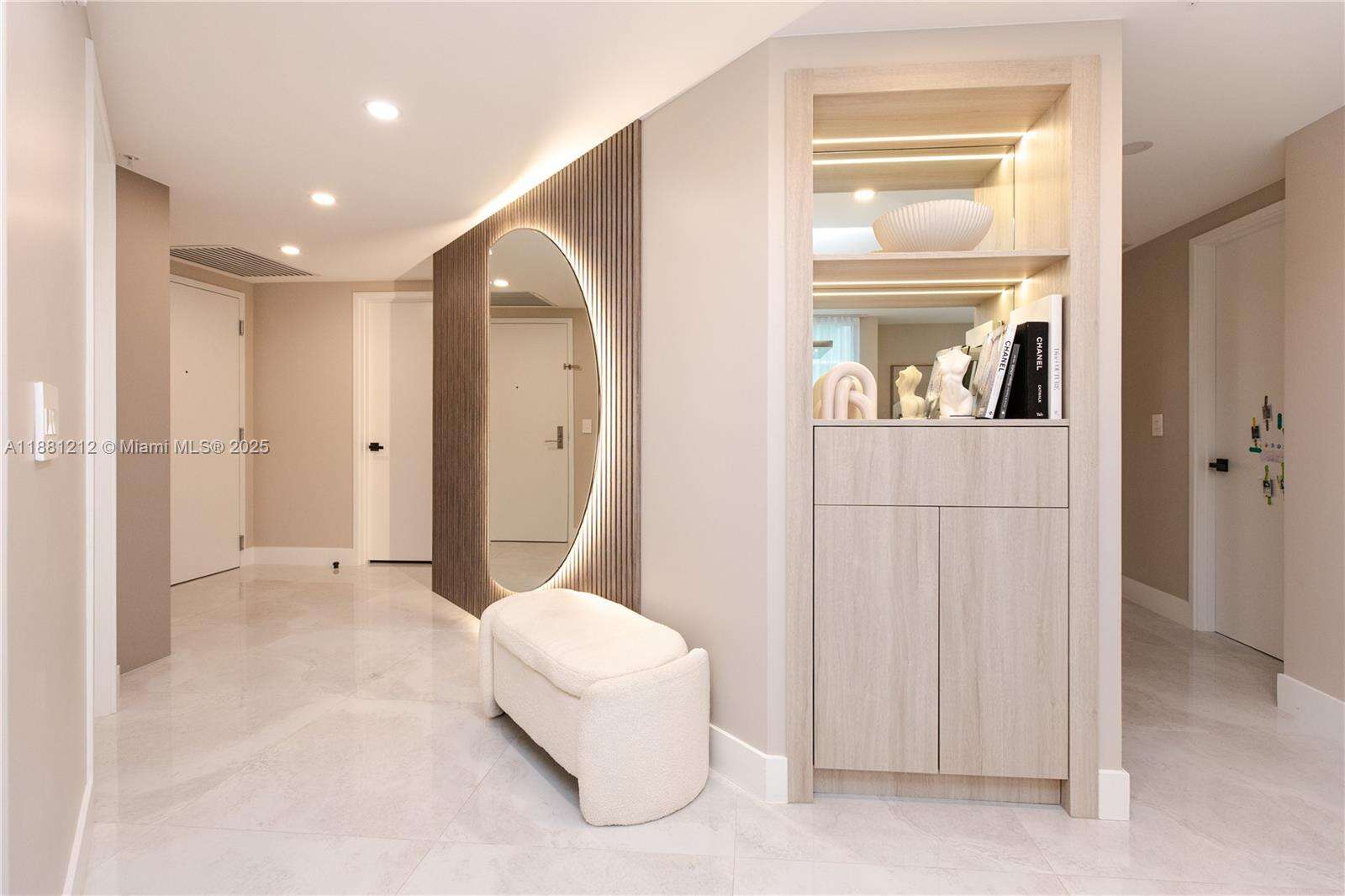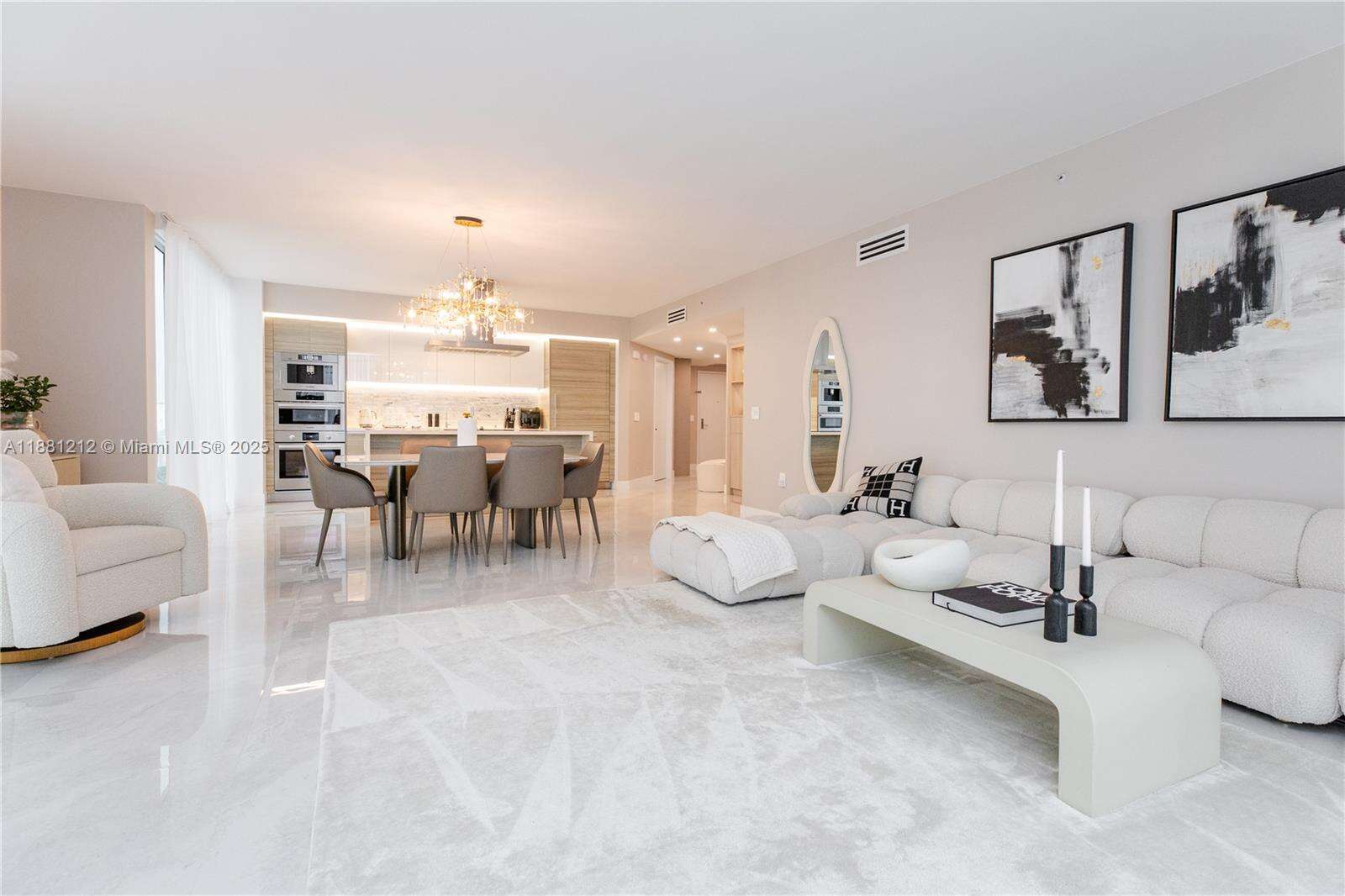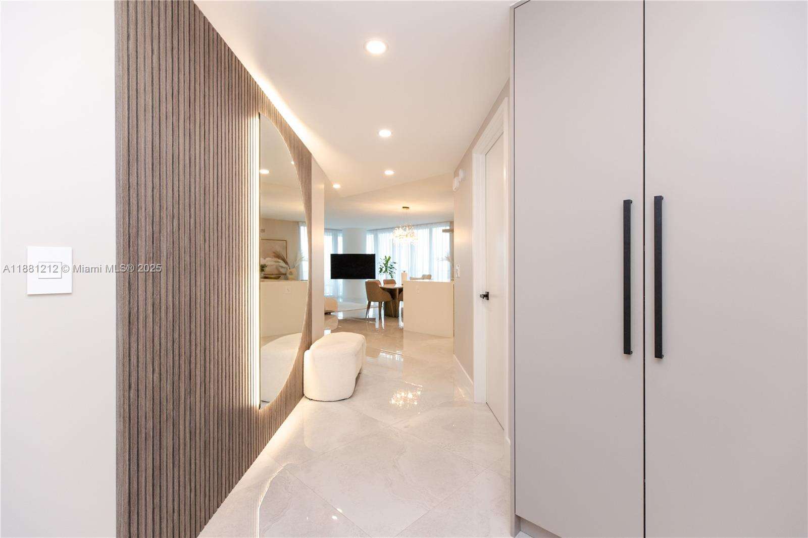 Spectacular 3BD/3.5BA corner condo with a wraparound balcony offering breathtaking ocean, Intracoastal views. This recently renovated unit features custom closets, designer wallpaper, custom lighting, soaring 10-ft ceilings, and wall-to-wall impact glass that fills the home with natural light. The gourmet kitchen is equipped with Sub-Zero and Bosch appliances and modern finishes. The primary suite includes a custom walk-in closet and a bathroom with a soaking tub and glass-enclosed shower. Storage, parking, and valet are included. Enjoy resort-style amenities such as infinity and lap pools, kids’ splash zone, Beach Club, fitness center, kids’ playroom, movie theater, and game lounge. Just steps from the beach, park, dining, and shopping — schedule your private tour today!