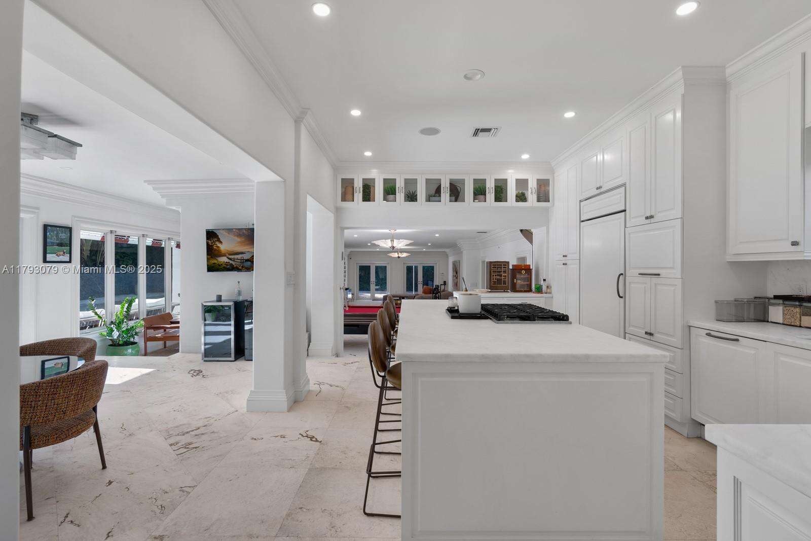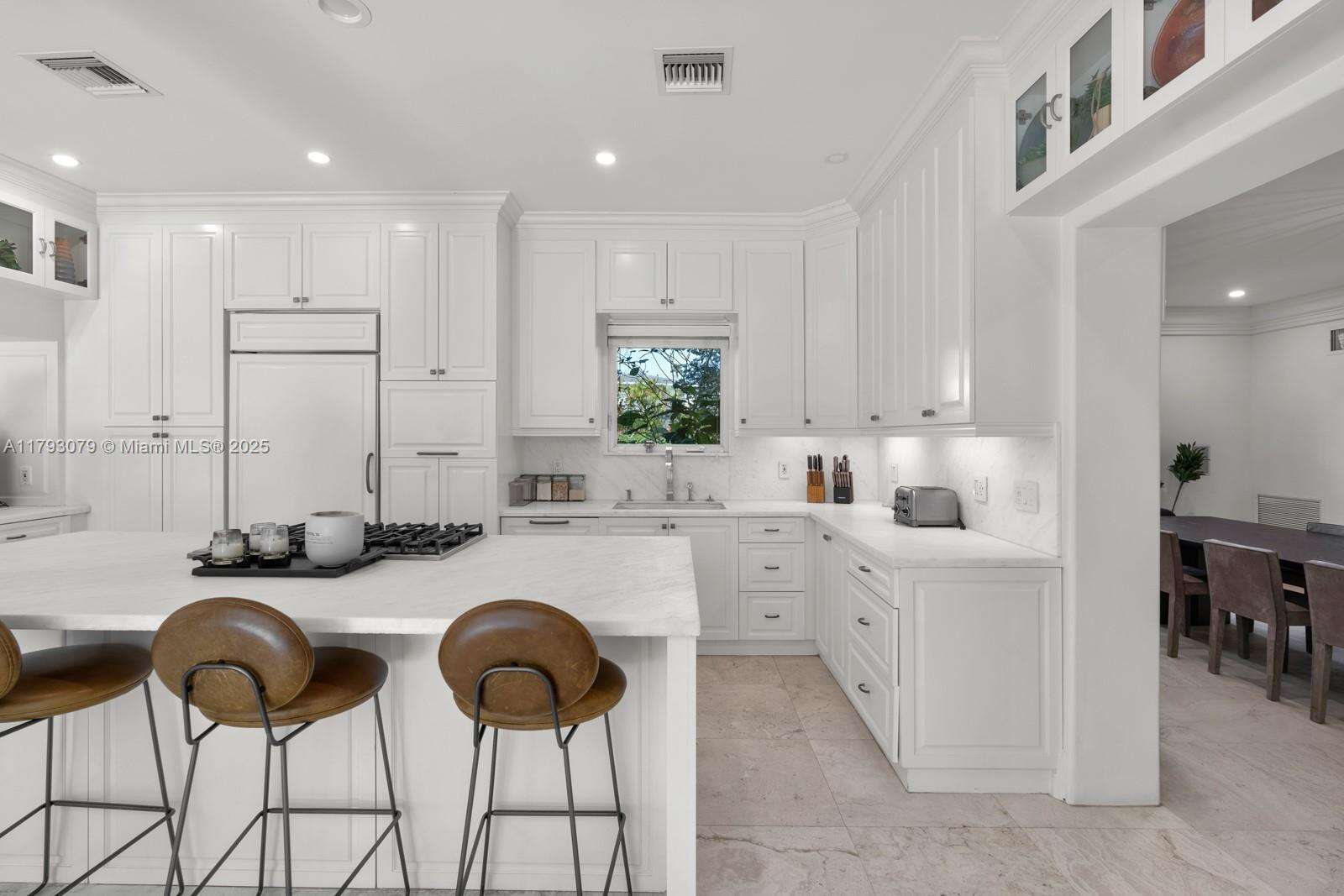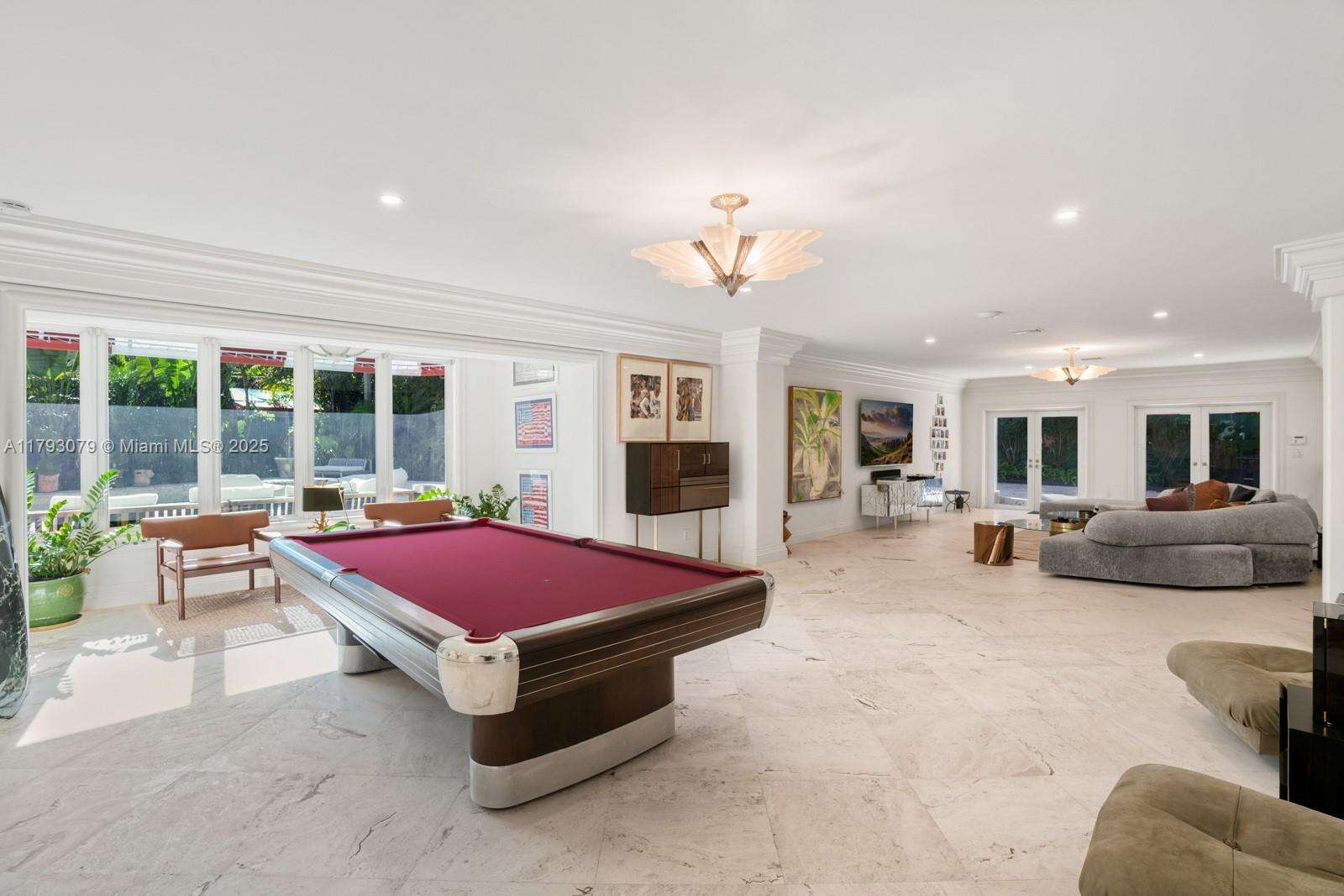 Ultra-Private estate situated on an oversized 15,725 SF lot in the heart of Miami Beach. Exquisitely renovated entertainer's dream home featuring 3 bedrooms/2 baths upstairs and 1 bed/2.5 bath down, plus spectacular library/convertible bedroom and sun lounge. South facing, sun-flooded pool with brand new oversized coral stone Jacuzzi, cold plunge, sauna and steam shower. Impeccably landscaped grounds with mature specimen trees and flowers. White marble custom kitchen with Viking and Sub-Zero appliances. Property is completely walled and gated with security system and cameras. Just steps to the ocean, top resorts, Lincoln Road and brand new 19 acre Bayshore Park.