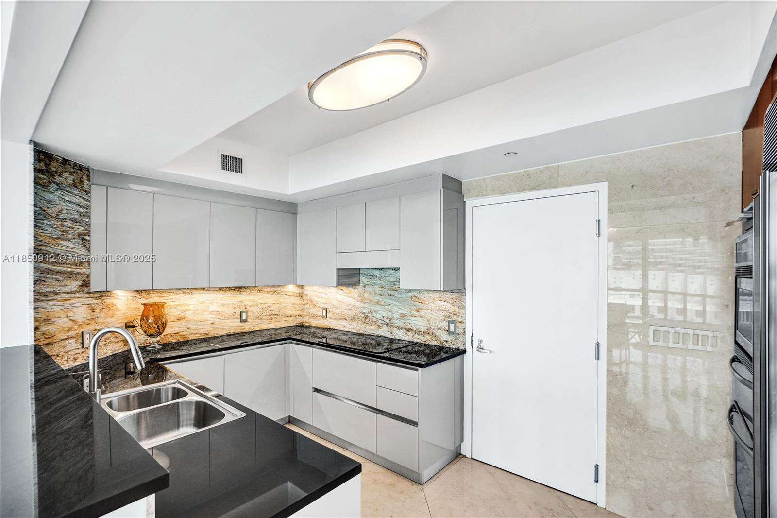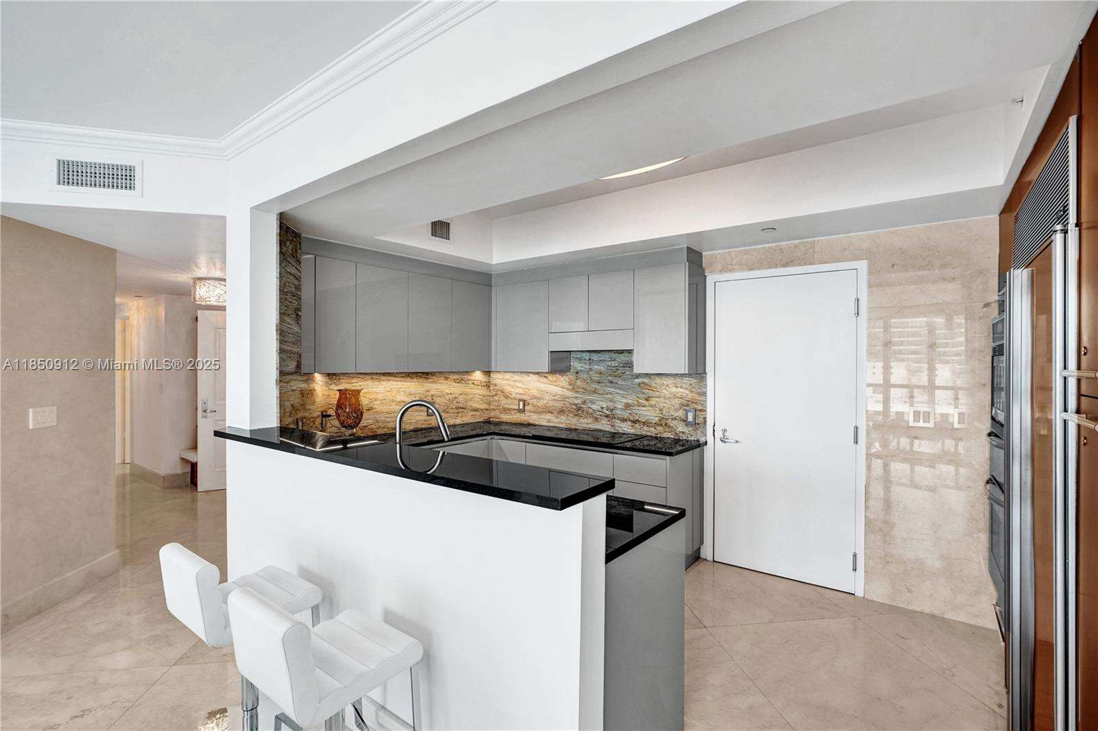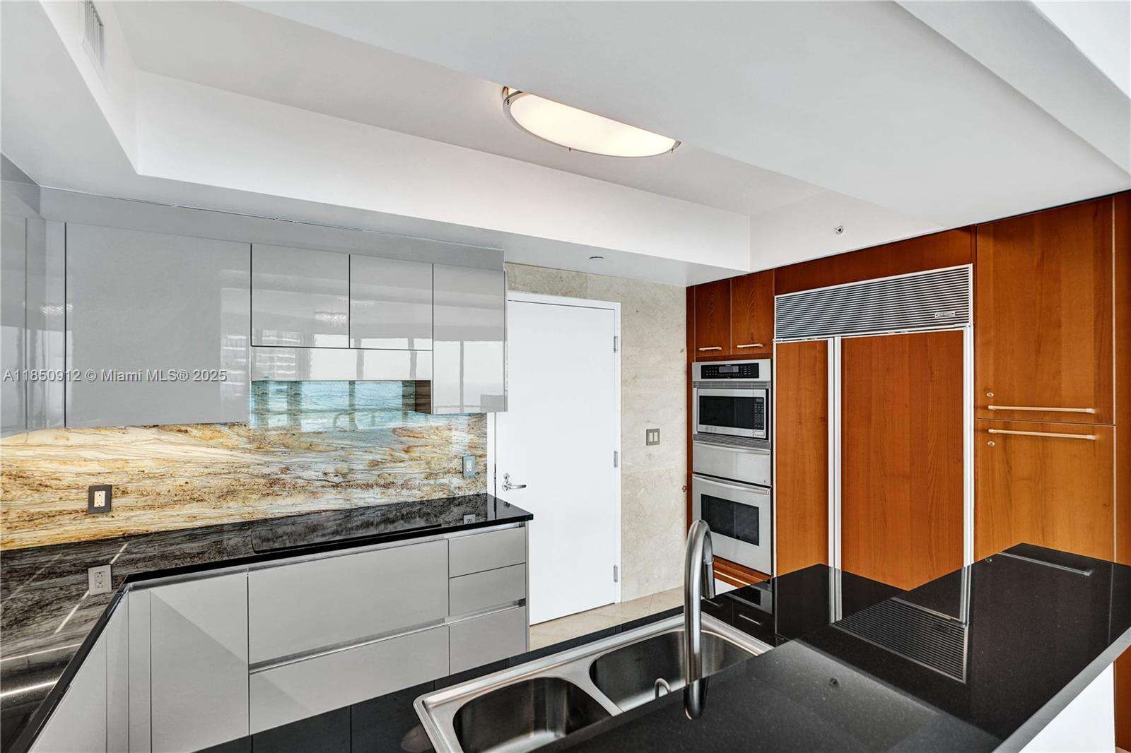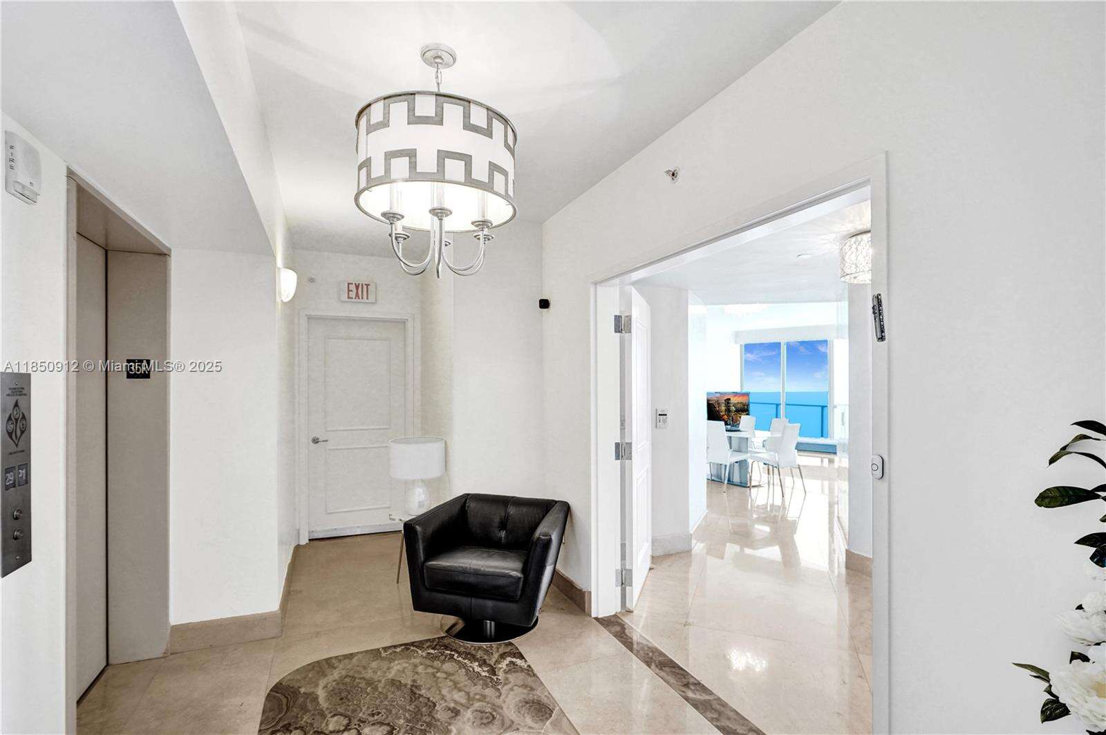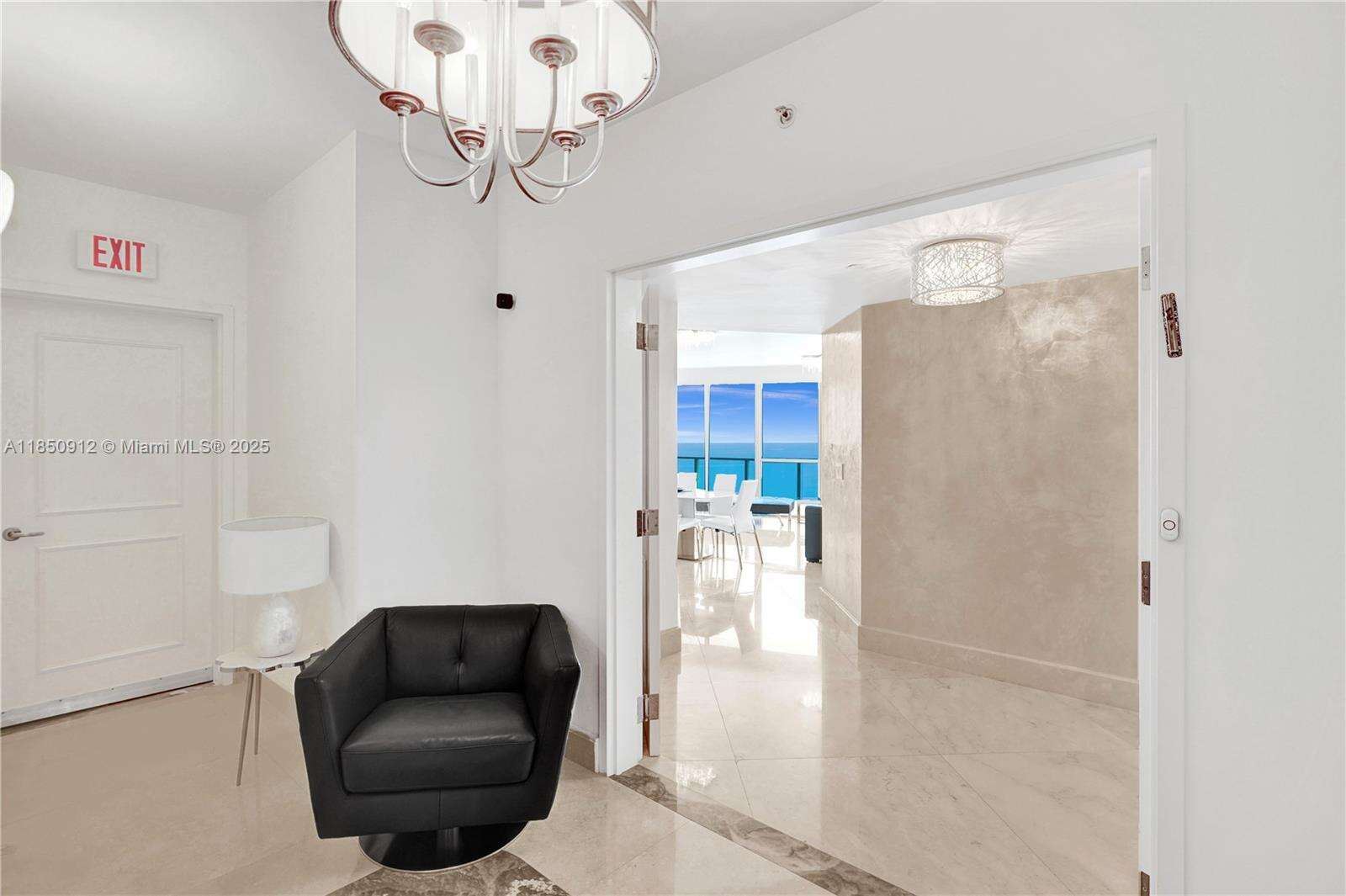 Welcome to 5-star living at Ocean Palms. Renovated 3 BD, 3.5 BA lower penthouse offers a private elevator entry into a grand double-door onyx foyer. Gorgeous panoramic ocean, Intracoastal & skyline, breathtaking views by day & beautifully lit at night from every room through floor-to-ceiling impact glass. Features:36x36 Spanish marble floors & baseboards, Venetian plaster walls, 2 terraces accessible from every rm., upgraded Italkraft kitchen w/Thermador oven & microwave, black granite countertops, Jerusalem marble backsplash, Miele & Sub-Zero appl., guest bath w/ travertine marble. Lutron smart system for lights, blinds & A/C, & high-speed wiring. Storage. Oceanfront luxury w/ valet, concierge, beach & pool svc, tennis, spa, 240 feet of pristine beachfront, 2-story gym & more. A must-see!