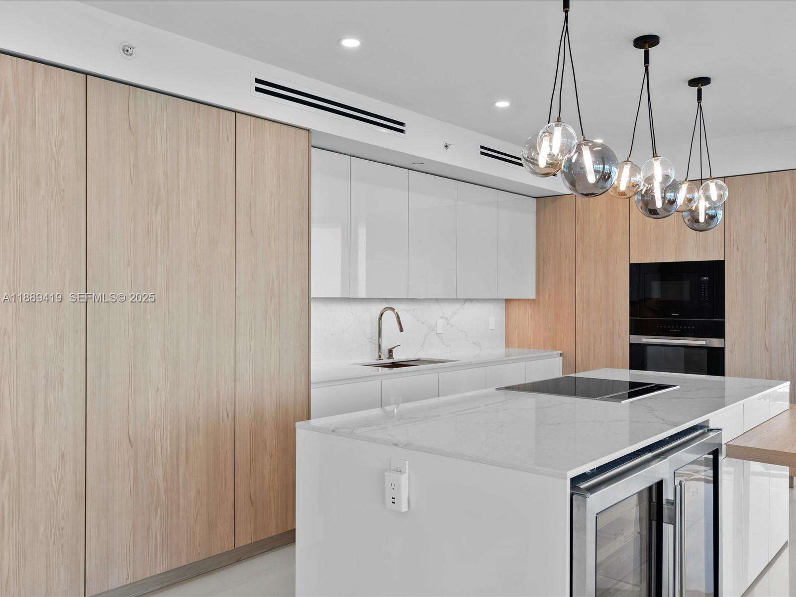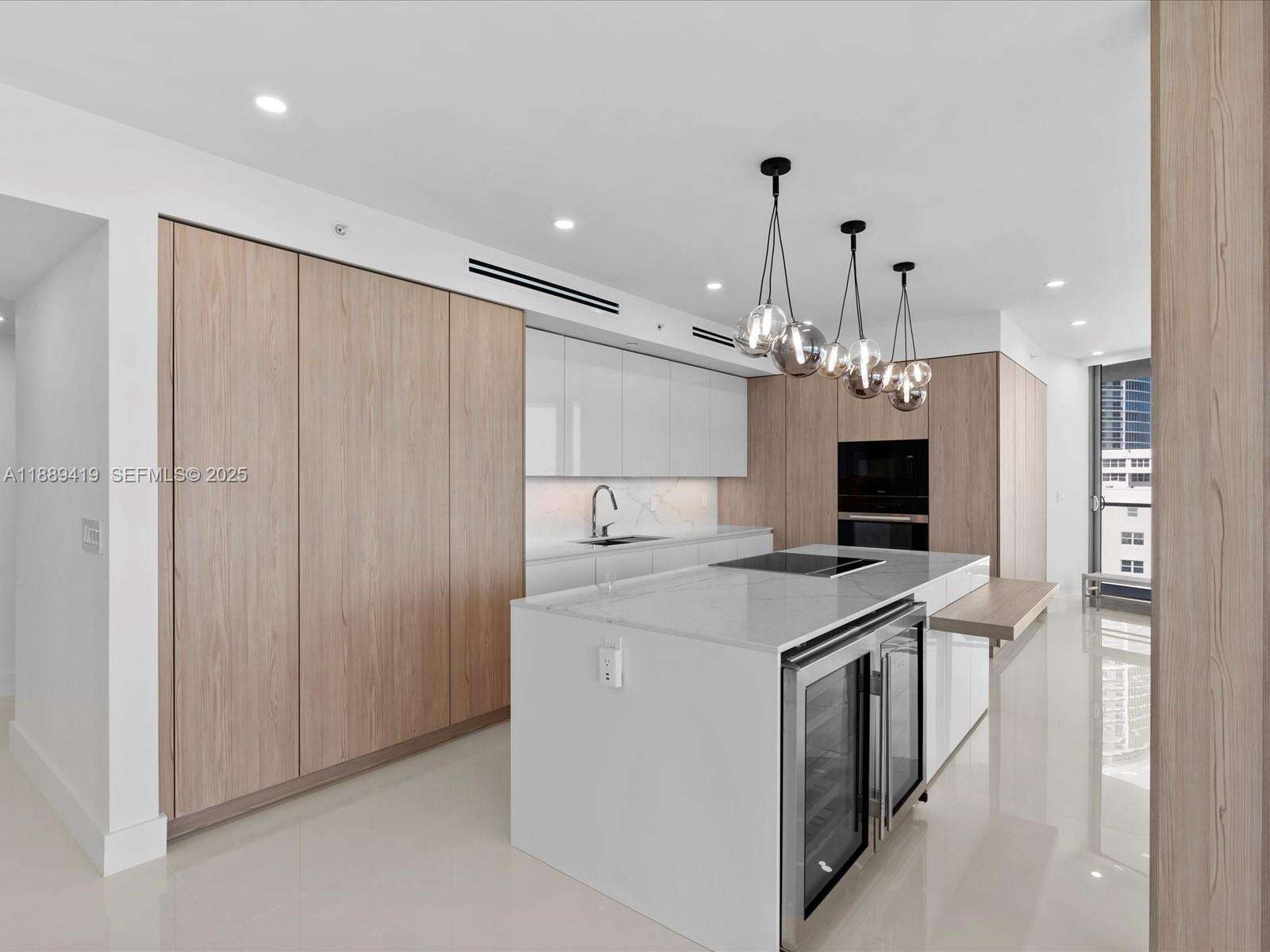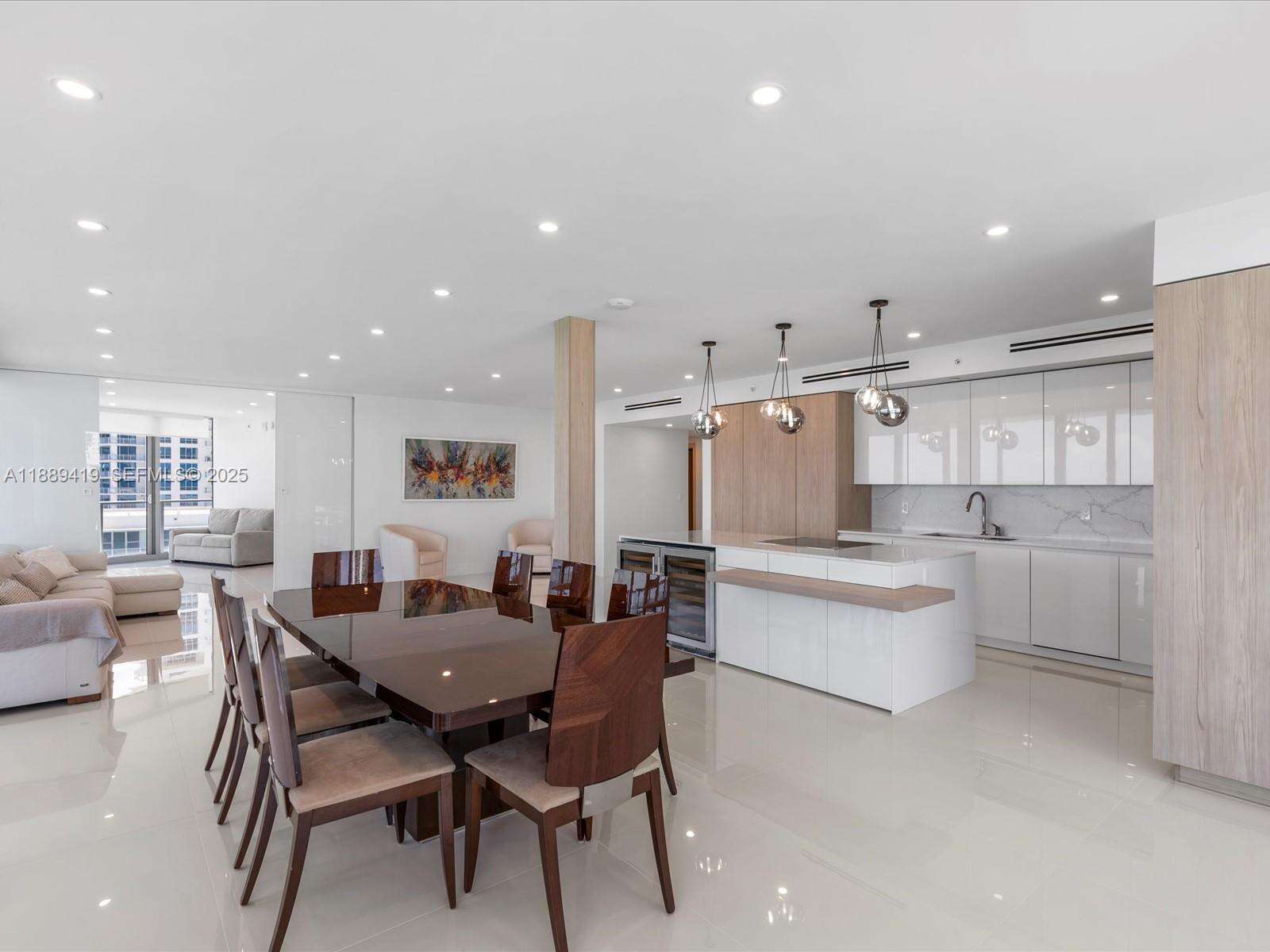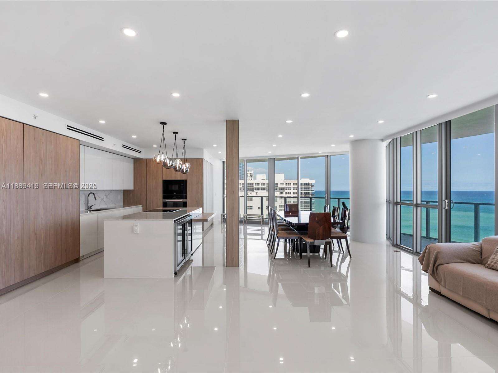 Completely remodeled direct oceanfront residence at Ocean Palms. 3,091 sq. ft. interior + 513 sq. ft. balconies. Beautiful Italian slab tile floors throughout, custom bathrooms with European fixtures, master bath with double vanity, tub, glass shower, and walk-in closets in all bedrooms. Leicht German kitchen with custom cabinetry, quartz counters, Miele appliances incl. induction cooktop and retractable downdraft vent. Two new AC units. Three balconies with ocean, city & Intracoastal views. Amenities: resort-style pool, 2-story fitness center, spa, party & billiard rooms, movie theater, tennis court, BBQ area, 24/7 security, valet. Apartment includes 2 garage spaces & storage.