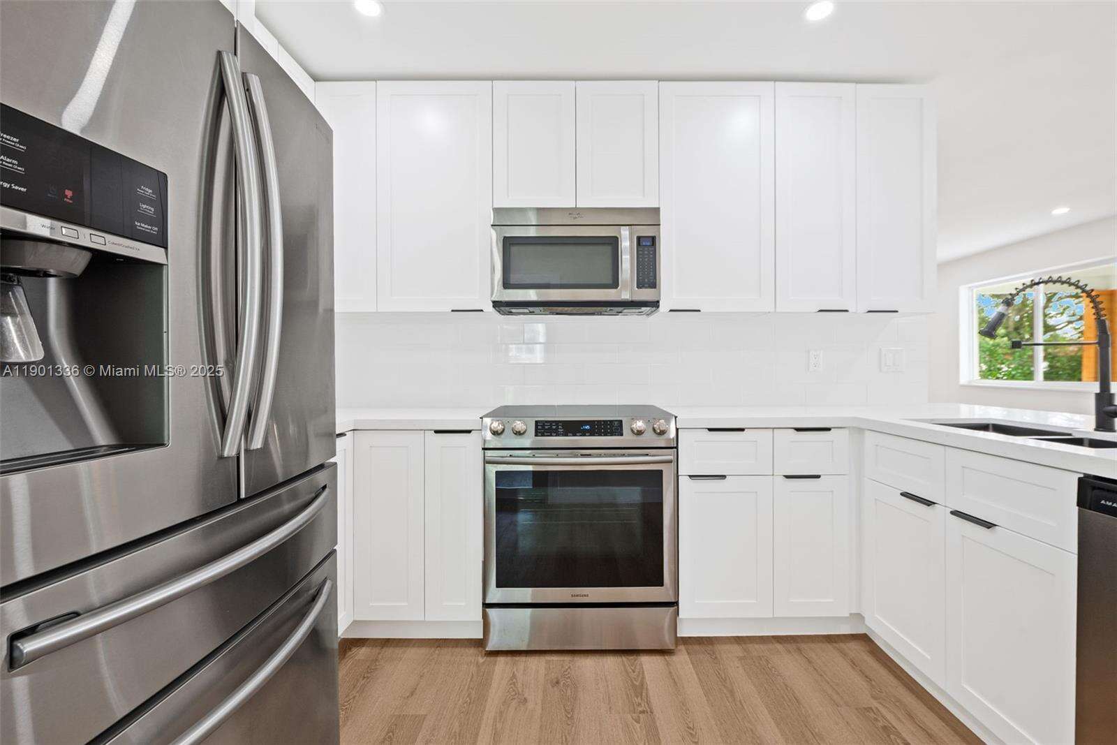 Beautiful 4-bedroom, 2-bath home featuring a spacious open layout with a modern kitchen island, sleek vinyl flooring, and updated bathrooms. The home offers bright natural light throughout, updated finishes, new roof, impact windows and a large fenced backyard with plenty of space to add a pool or create an outdoor entertainment area. Conveniently located near major highways, shopping, and schools.