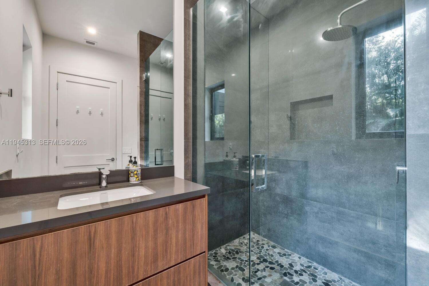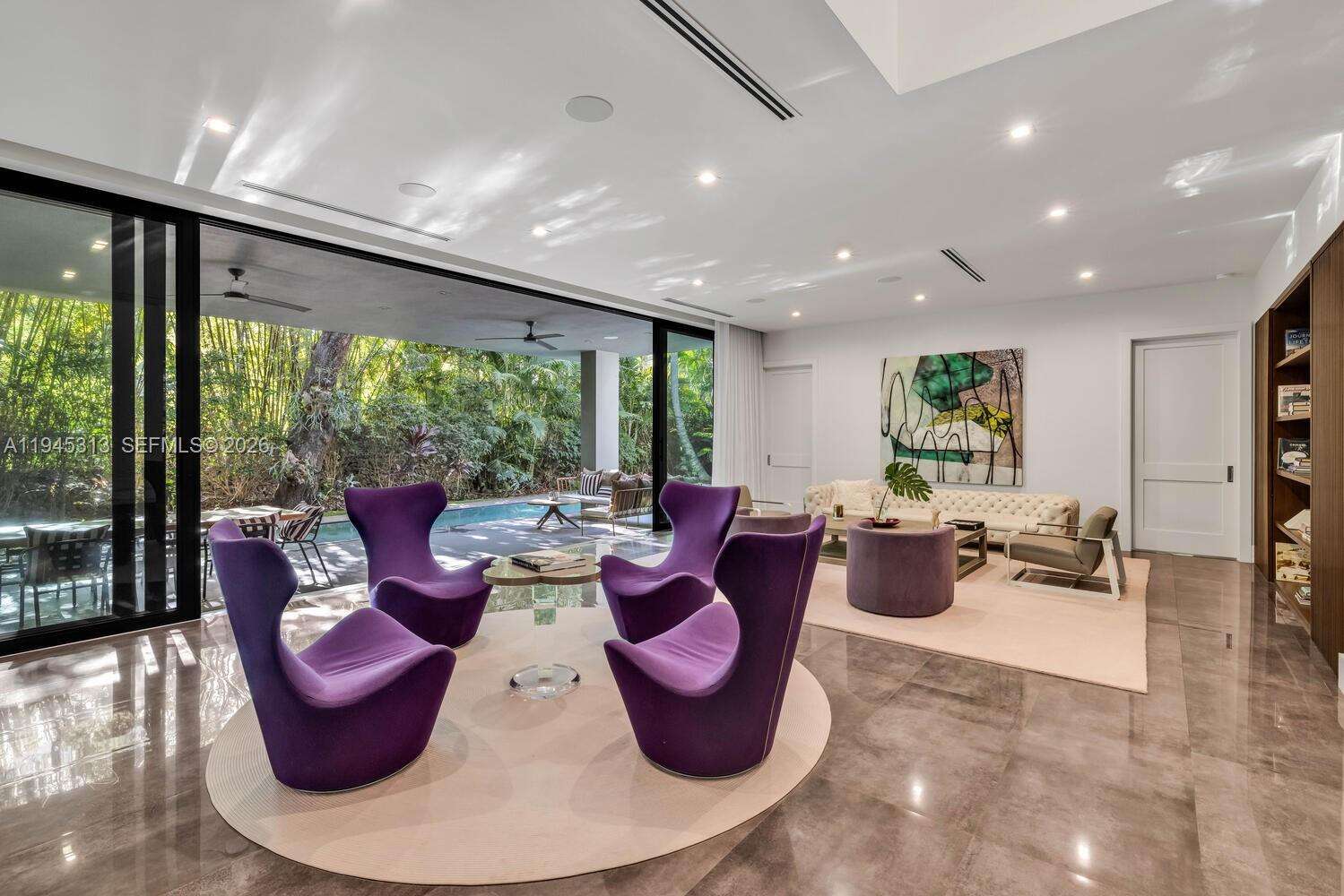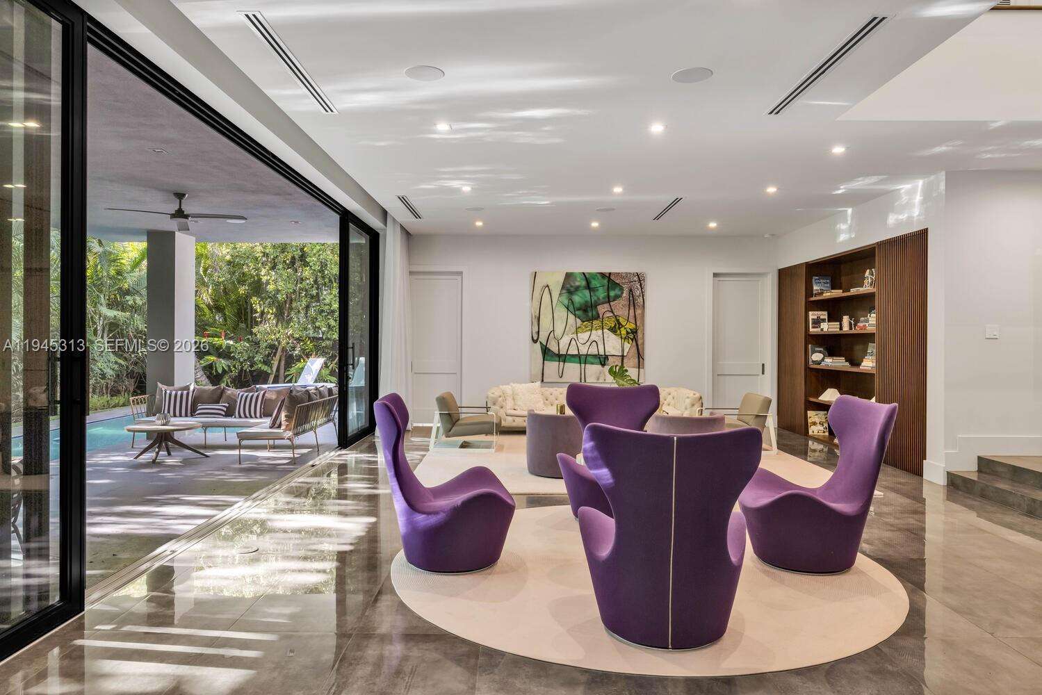Stunning Coconut Grove home, featuring soaring ceilings and an abundance of natural light, the home was designed with high-end finishes and equipped with top-of-the-line appliances. The spacious layout includes two bedrooms on the main floor, a movie theater, expansive living and dining areas, and fully retractable doors that seamlessly connect the indoor and outdoor spaces. Upstairs, four additional bedrooms, including the lavish master suite, and another living room. The backyard is beautifully landscaped, with a serene pool surrounded by bamboo trees, creating a private oasis. Additional amenities include maid’s quarters and a two-car garage, plus 2 carport. The house is fully powered by solar panels and has 2 electric car plugs. Steps from Kennedy Park and 15 min walk to the center of the Grove. Truly the best lifestyle Miami has to offer. Quiet street with ample street parking.