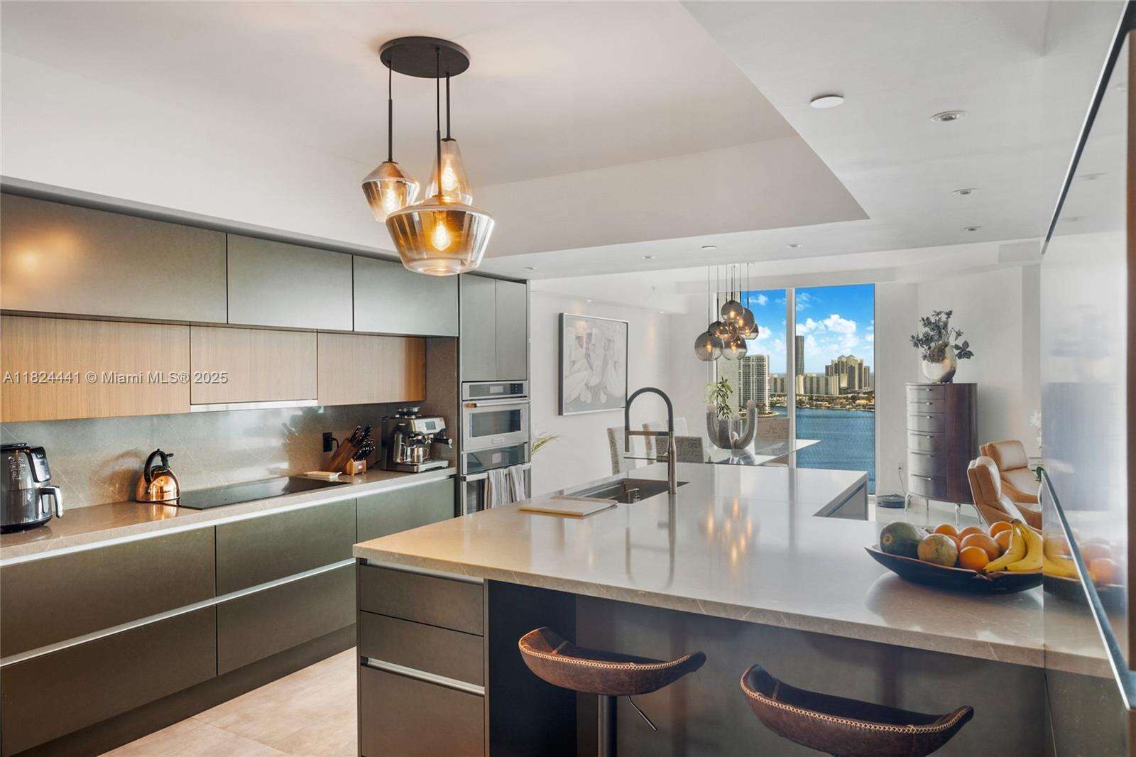 Sophisticated and highly renovated apartment in the desirable line 03 at Peninsula II. Spectacular condition, ready to move in, with porcelanato flooring throughout, custom closets and high impact windows. Flow through unit with 3 large bedrooms, a large den, 3 full bathrooms plus powder room & laundry. Open floorplan with a designer kitchen. Three assigned and covered parking spots and a storage room. Enjoy breathtaking Ocean, intracoastal & city views from its east & west balconies. 5 stars amenities including two pools, 4 barbecues, two party rooms, two spas, two gyms, two social rooms, teenagers & toddler rooms, 3 tennis courts, 24 hs security, complimentary valet parking, dog park, coffee & deli and much more. Just few minutes to Aventura Mall. Resort living at its best.