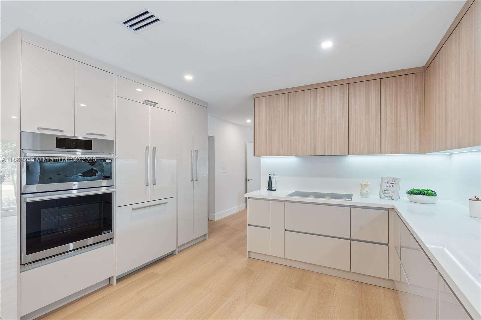 Experience waterfront living at its finest in this stunning 4-bedroom, 3-bath residence located in the exclusive Intracoastal community of Bermuda Riviera. This property boasts an 80-foot newly built dock with direct ocean access and no fixed bridges, just minutes from fine dining, boutique shopping, and pristine beaches. Step inside to a light-filled, open-concept layout featuring double glass sliding doors, a modern chef’s kitchen with premium appliances, and new engineered wood floors throughout. Outdoors, enjoy a large pool and a cozy pergola, perfect for entertaining or relaxing by the water. Additional upgrades include a 2025 metal roof, impact doors and windows, a full-house generator, and a lifetime gutter protection system for peace of mind. Amazing A schools nearby.