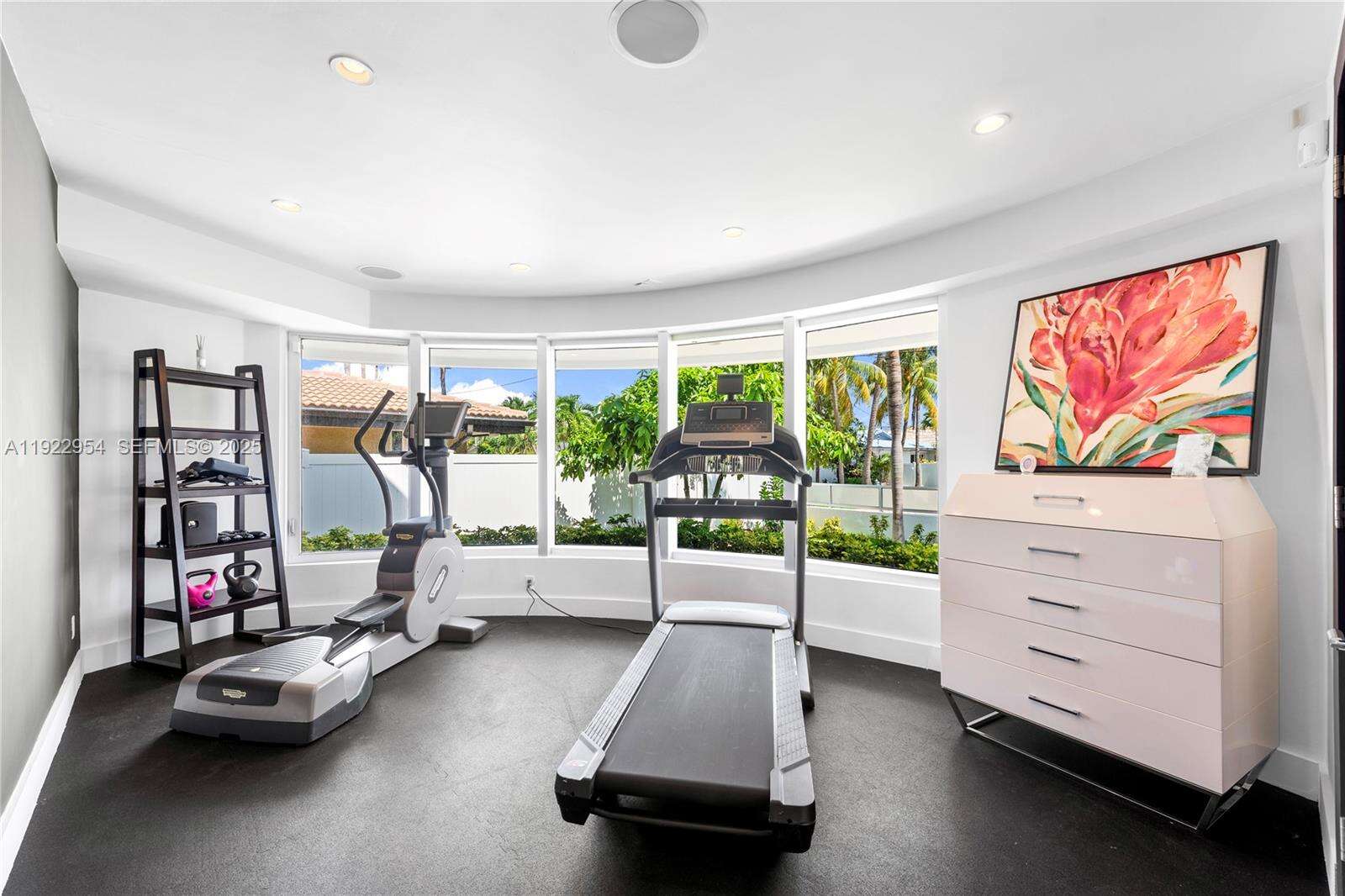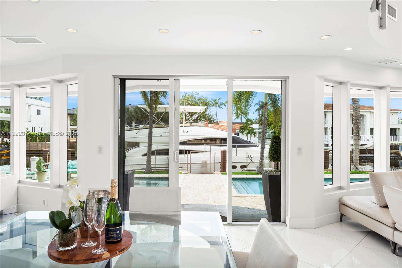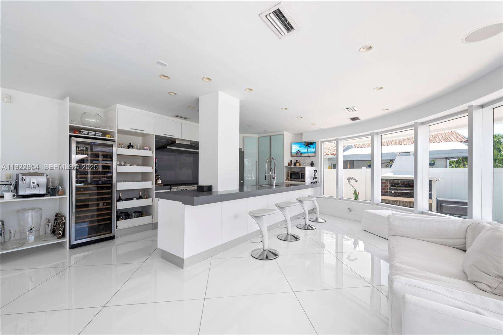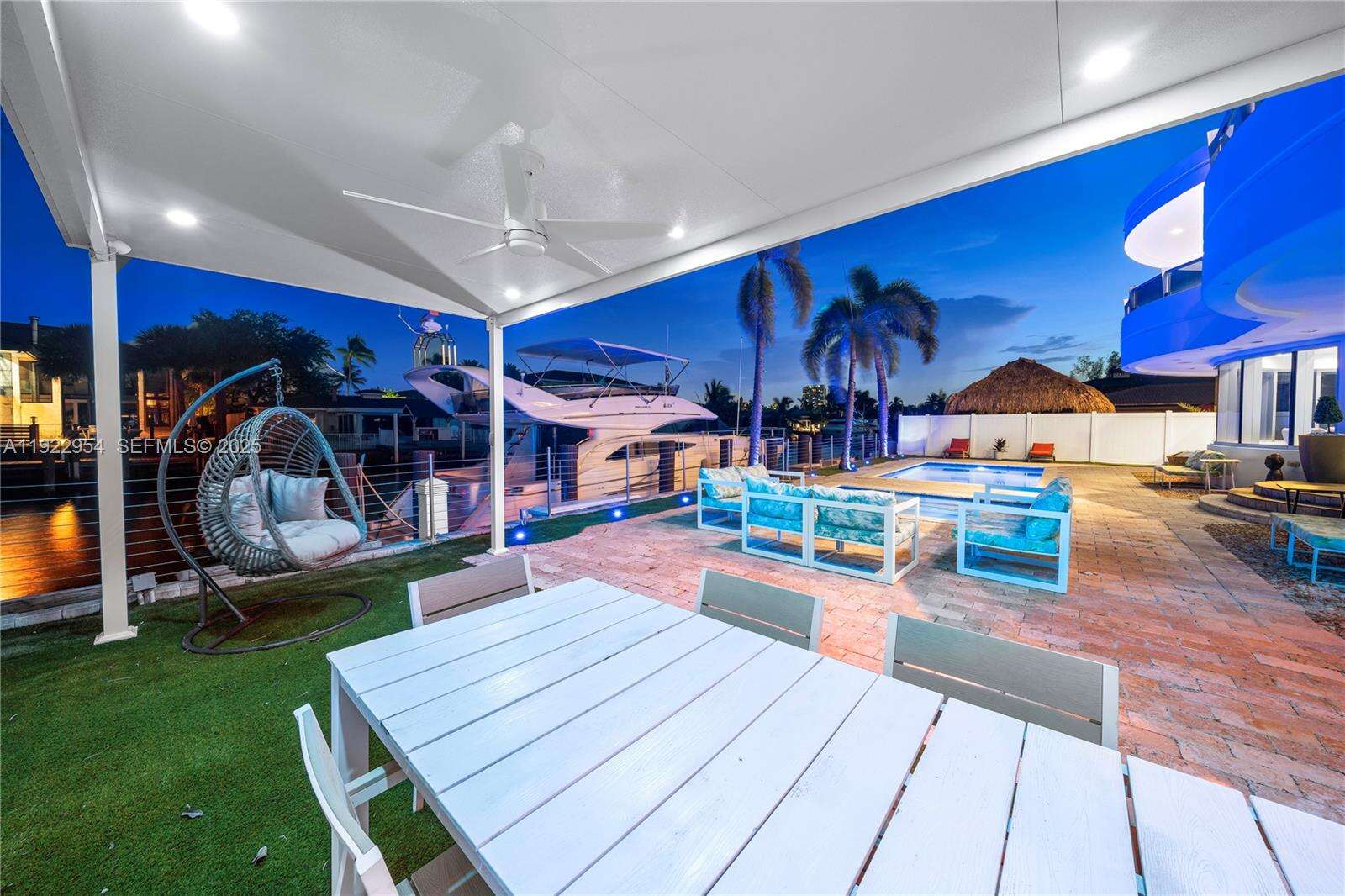Best-Priced Modern Waterfront Residence in All of Miami Beach. A striking all-white concrete masterpiece with bold Iron Man / Tony Stark–inspired architecture, offering 80 feet of premier water frontage just a short walk to the beach. Located in the exclusive, guard-gated Eastern Shores community of Sunny Isles. This ultra-modern waterfront estate features a rare full concrete perimeter wall, private electric gate, dramatic 20-ft ceilings, and a stunning vaulted skylight that floods the home with natural light. Elegant design details include curved architectural staircases, wraparound terraces, and 36x36 white porcelain flooring throughout.The residence offers 6 bedrooms and 6.5 ensuite baths, including a luxurious primary suite with its own private terrace, jet spa tub, and dual walk-in closets. A fully integrated $180k Crestron Smart Home system, controlled by 3 iPads and smartphone-enabled, seamlessly manages intelligent color-changing lighting, 28 built-in speakers, climate, security, and more. Outdoor living is elevated with a waterfront pool and hot tub, outdoor brick oven, covered entertainment patio with ceiling fan, and a 2-car supercar garage. Perfectly situated minutes from the beach, shopping, dining, Aventura, Bal Harbour, Miami International Airport, and South Beach. A modern fortress of design and technology—unmatched at this price point