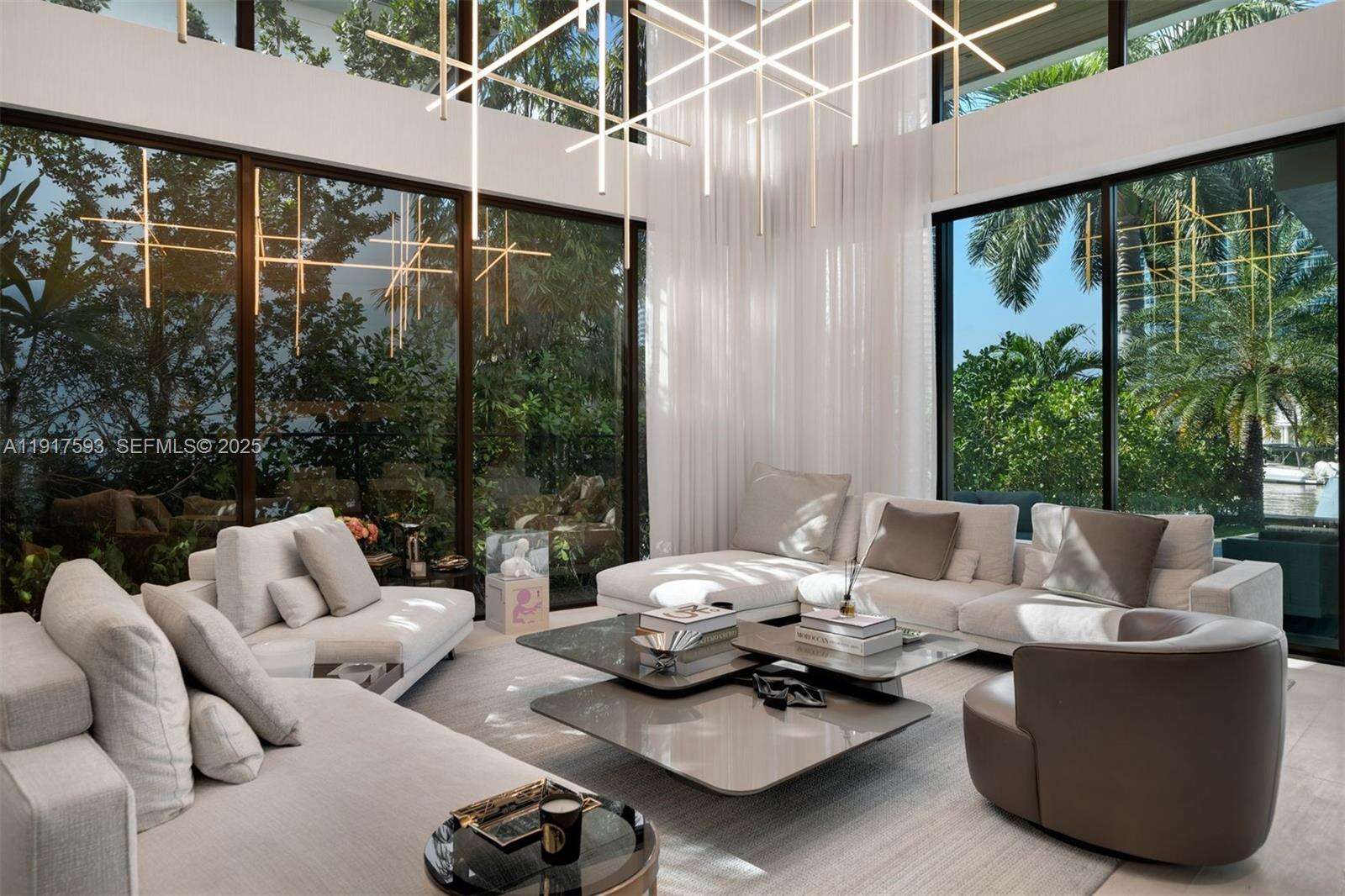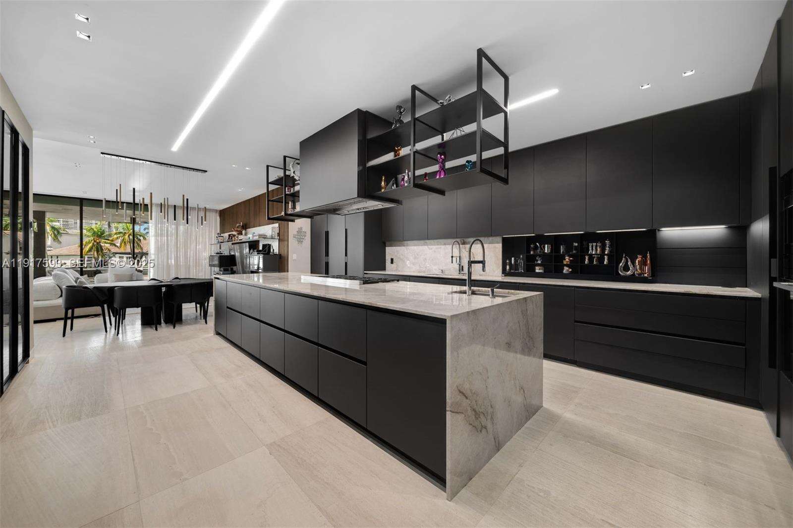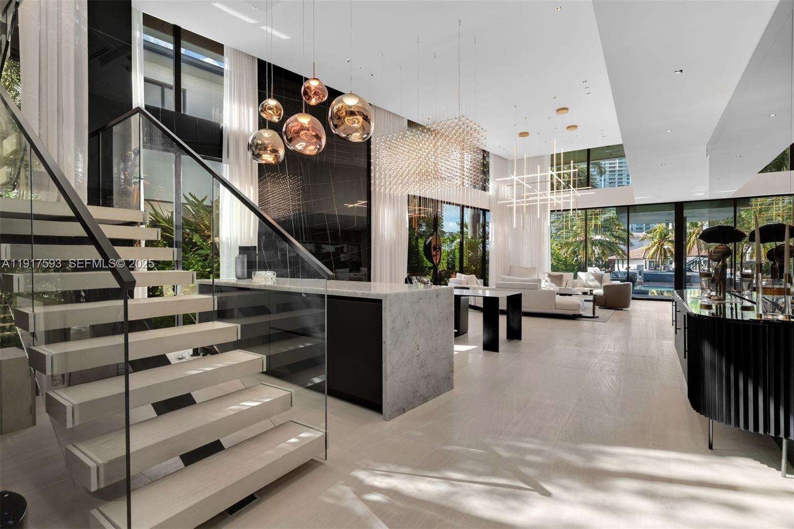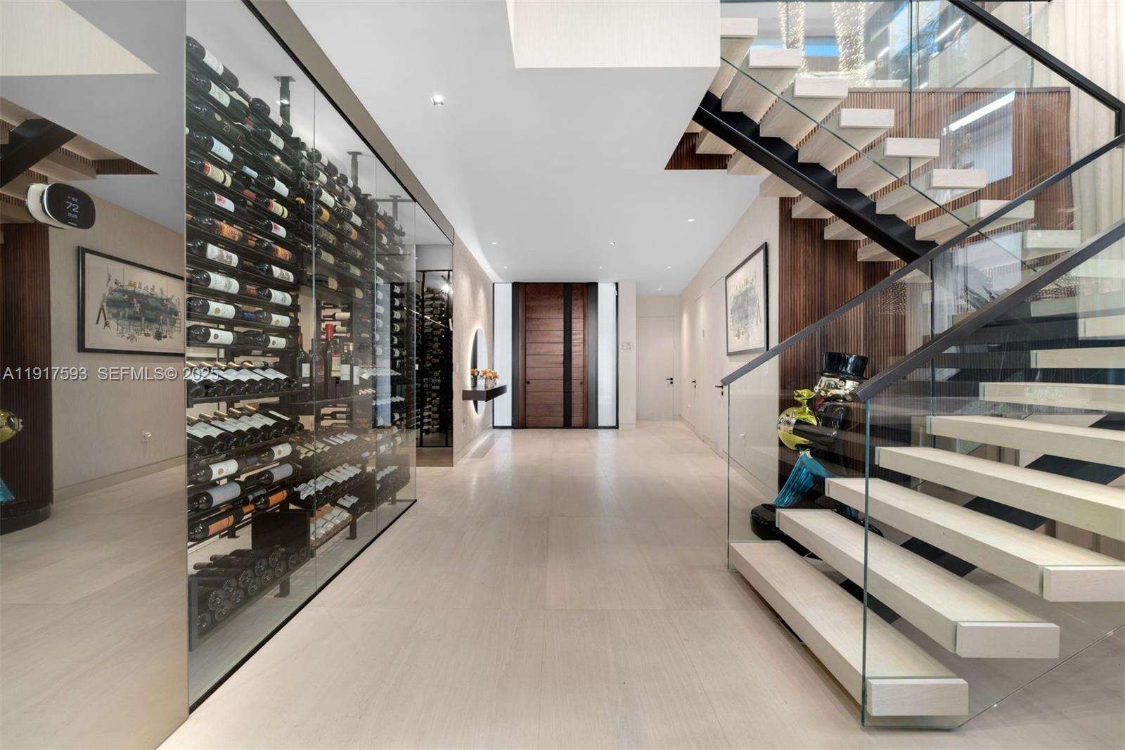 Completed in 2024, this newly built modern masterpiece in coveted Golden Beach offers exceptional craftsmanship, striking design, & a tranquil outdoor oasis created for waterfront living. Sitting on a 10,476 SF lot, this 6,773 total SF residence welcomes you with an oversized driveway & grand architectural entry framed by floating steps. Inside, features a Mia Cucina kitchen w/ Taj Mahal stone, limestone floors on the main level, warm wood upstairs, frameless doors, high end light fixtures, Cristallo stone bar, and Control 4 smart home system w/ Lutron lighting. The spacious primary suite showcases dual walk-in closets and large terrace capturing stunning sunsets. Elevator, pajama lounge & wine room complete the sophisticated interior. 45 feet of water frontage, private dock, Sub-Zero & Wolf summer kitchen, & outdoor shower create a true resort setting.