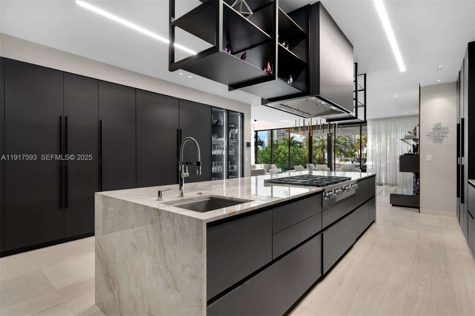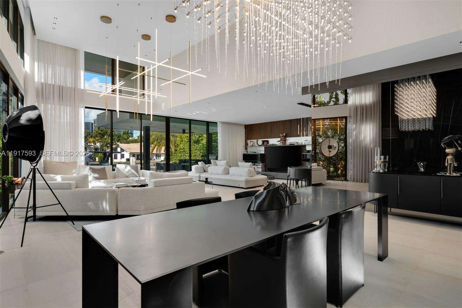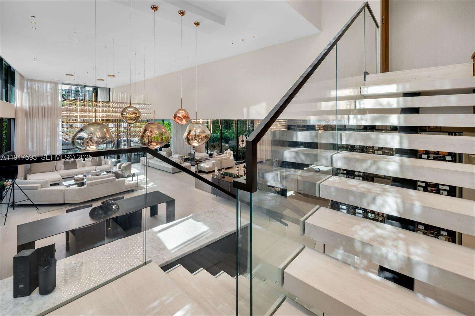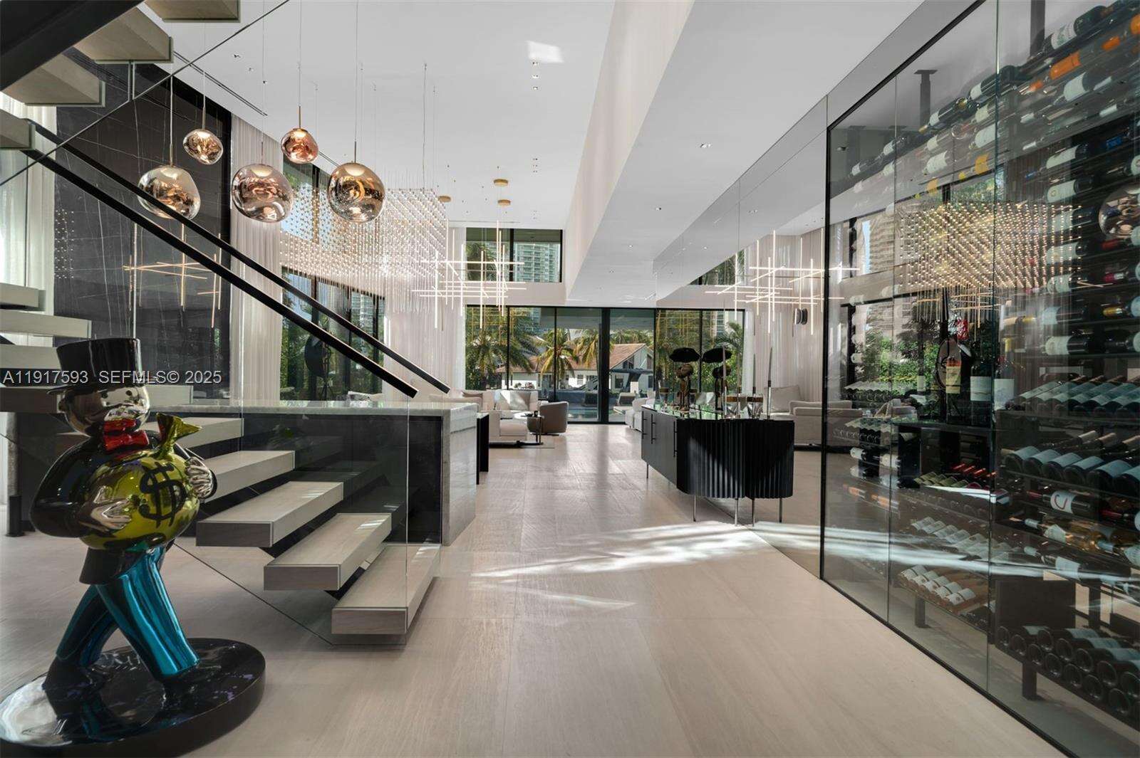 Completed in 2024, this newly built modern masterpiece in coveted Golden Beach offers exceptional craftsmanship, striking design, & a tranquil outdoor oasis created for waterfront living. Sitting on a 10,476 SF lot, this 6,773 total SF residence welcomes you with an oversized driveway & grand architectural entry framed by floating steps. Inside, features a Mia Cucina kitchen w/ Taj Mahal stone, limestone floors on the main level, warm wood upstairs, frameless doors, high end light fixtures, Cristallo stone bar, and Control 4 smart home system w/ Lutron lighting. The spacious primary suite showcases dual walk-in closets and large terrace capturing stunning sunsets. Elevator, pajama lounge & wine room complete the sophisticated interior. 45 feet of water frontage, private dock, Sub-Zero & Wolf summer kitchen, & outdoor shower create a true resort setting.