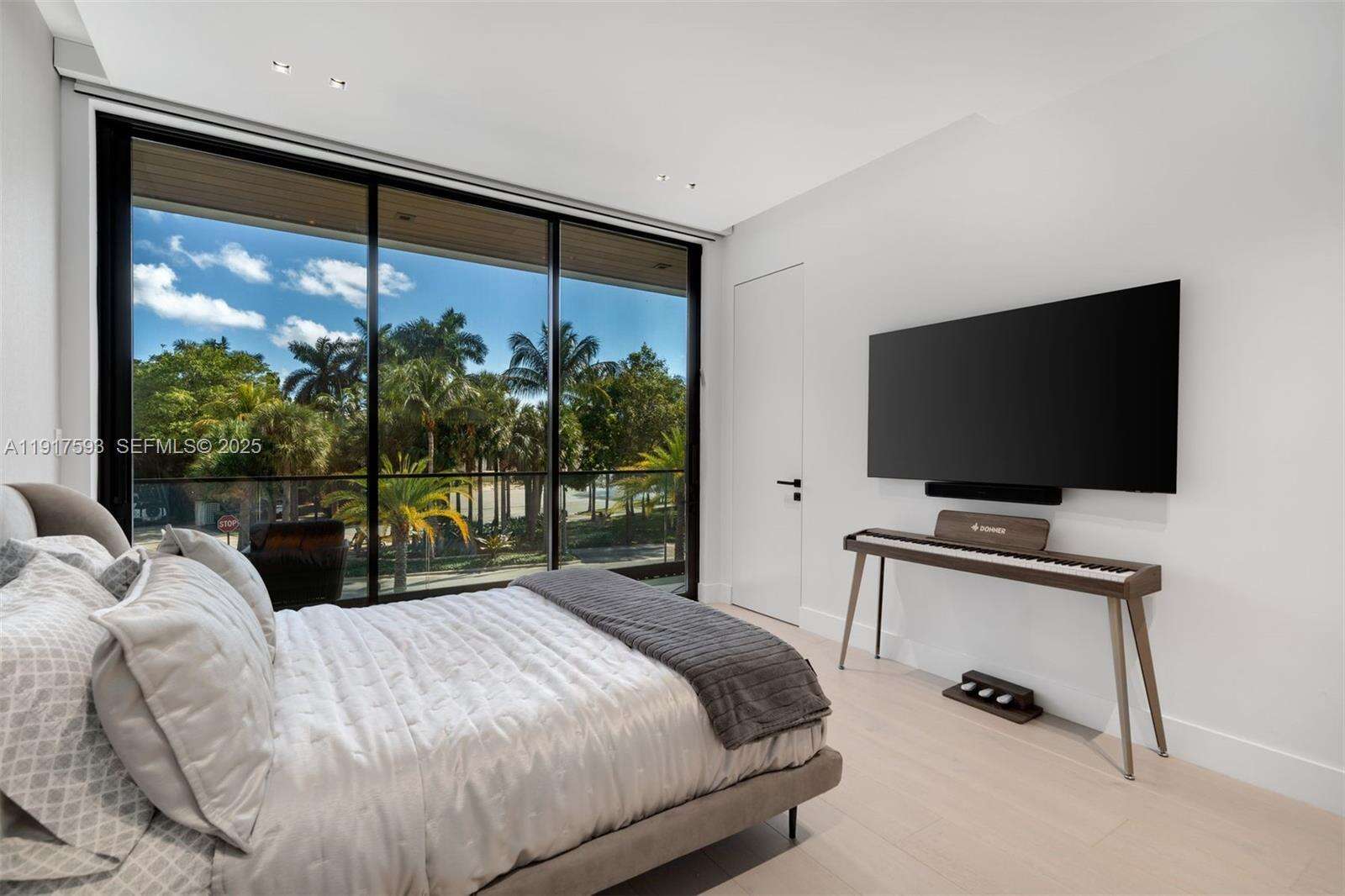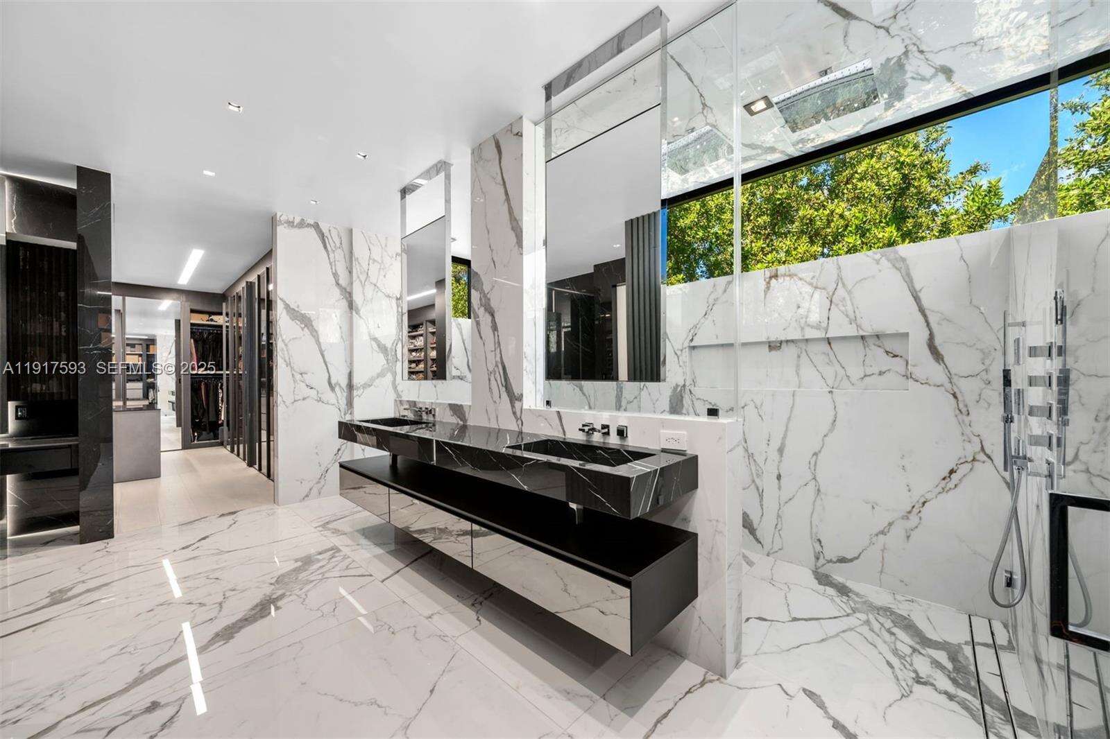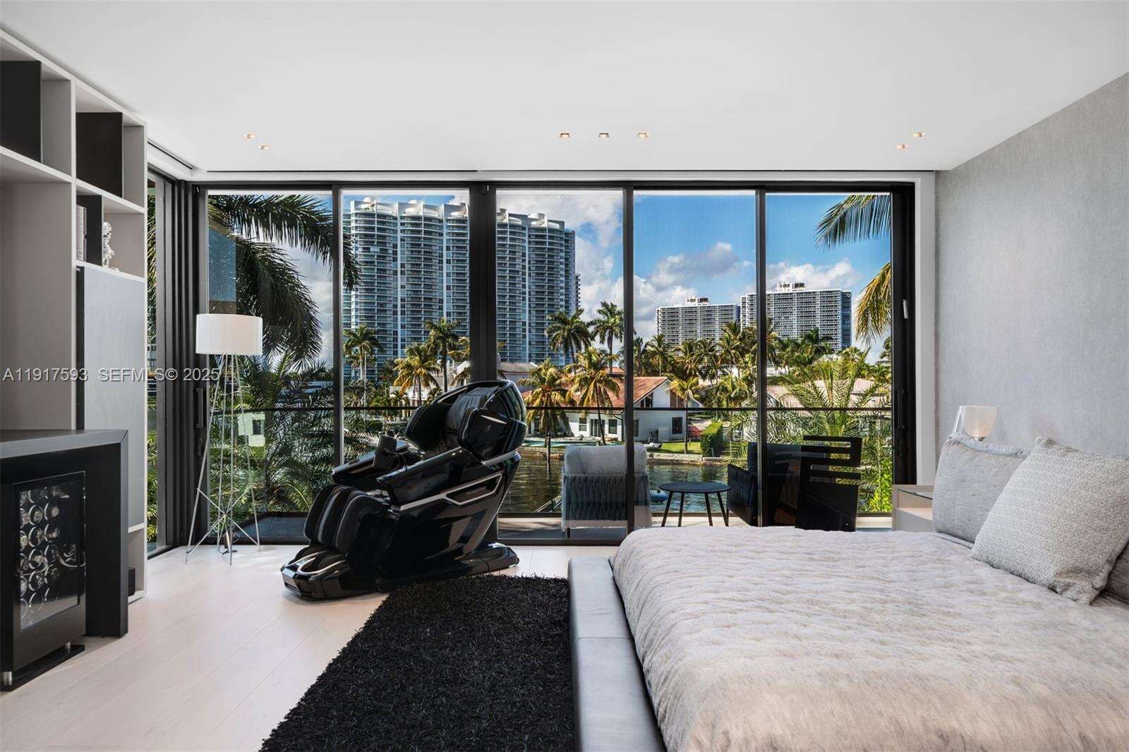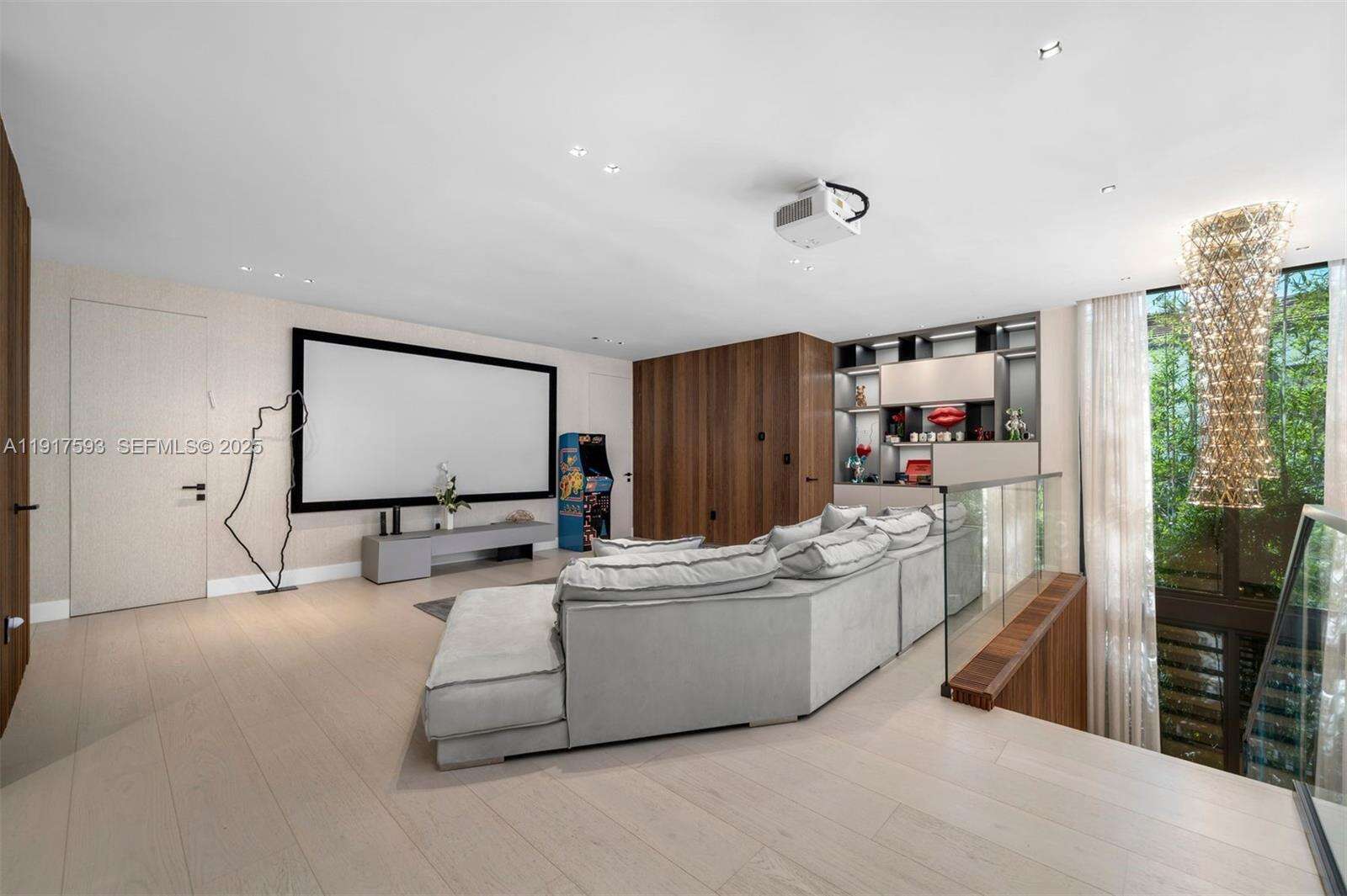 Completed in 2024, this newly built modern masterpiece in coveted Golden Beach offers exceptional craftsmanship, striking design, & a tranquil outdoor oasis created for waterfront living. Sitting on a 10,476 SF lot, this 6,773 total SF residence welcomes you with an oversized driveway & grand architectural entry framed by floating steps. Inside, features a Mia Cucina kitchen w/ Taj Mahal stone, limestone floors on the main level, warm wood upstairs, frameless doors, high end light fixtures, Cristallo stone bar, and Control 4 smart home system w/ Lutron lighting. The spacious primary suite showcases dual walk-in closets and large terrace capturing stunning sunsets. Elevator, pajama lounge & wine room complete the sophisticated interior. 45 feet of water frontage, private dock, Sub-Zero & Wolf summer kitchen, & outdoor shower create a true resort setting.