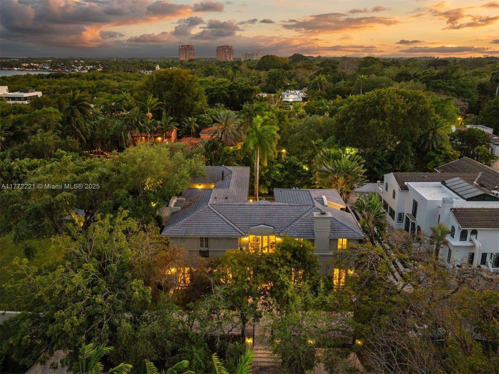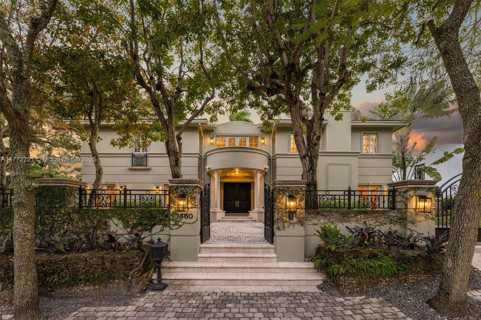 Nestled in the exclusive enclave of The Moorings on a spacious double lot, this timeless 8,811 total SF, 5-bedroom, 5-bathroom, 2-half baths estate blends elegance and comfort across lush grounds and refined interiors. Featuring soaring ceilings, custom architectural detailing and high-impact French doors, the home boasts formal living and dining rooms, a grand marble fireplace, elevator, office, and staff quarters. Outdoors, enjoy a tropical oasis with a sparkling pool, alfresco dining terraces, summer kitchen, and serene courtyard fountain. Complete with a 2.5 car garage allowing for a sport car in a 3rd section, generator, and new roof, this gem offers sophistication and functionality for luxury living. Both lots together (Folios 01-4128-006-0130 and 01-41-28-006-0122) total 31,620 SF.