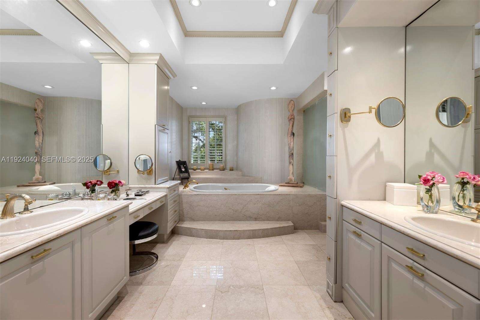 Nestled within the prestigious gated community of The Moorings, this 8,811 SF residence offers a harmonious blend of classic elegance and everyday comfort. The 5-bedroom, 5-bathroom plus 2 half-bath estate is surrounded by rich landscaping, providing a sense of privacy and tranquility. Inside, the home features soaring ceilings, exquisite architectural millwork, and high-impact French doors that fill the interiors with natural light. Formal living and dining areas, a stately marble fireplace, an office, elevator, and staff quarters create a refined yet functional layout. Step outdoors to a resort-style setting complete with a shimmering pool, multiple terraces for alfresco dining, a fully equipped summer kitchen, and a peaceful courtyard fountain. Additional highlights include a 2.5-car garage with space for a sports car, a generator, and a new roof—offering both sophistication and practicality in one exceptional Coconut Grove estate. The adjacent 17,820 sq ft lot is also available for purchase (MLS A11924027), creating a rare opportunity to assemble a combined homesite within one of Coconut Grove’s most coveted enclaves.