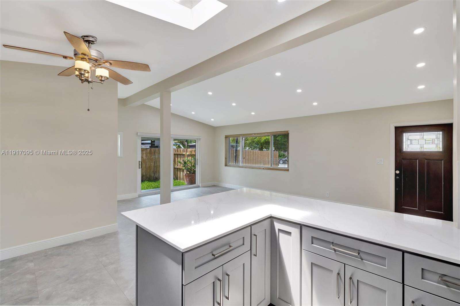 Beautifully Renovated Home in the Heart of Ft. Lauderdale! Come & enjoy this freshly updated, move-in-ready property! Upgrades: new fridge/microwave/sink, J&K shaker cabinets, Calcutta quartz counters/backsplash in kitchen, PGT impact windows, porcelain floors, recessed lighting, skylights, updated laundry room & fresh paint inside & out, new water heater & repaired AC coil (2023), refreshed pavers, roof replaced 2015-16. The spacious, airy layout flows into a private outdoor retreat. Lush landscape, shed, covered patio, retractable awning & covered entry/carport with circular drive. Room for a pool to create the ultimate backyard oasis. Prime location near Publix, Riverland Rd Park, boat launch, airport, highways, Hard Rock, and top public & private schools!