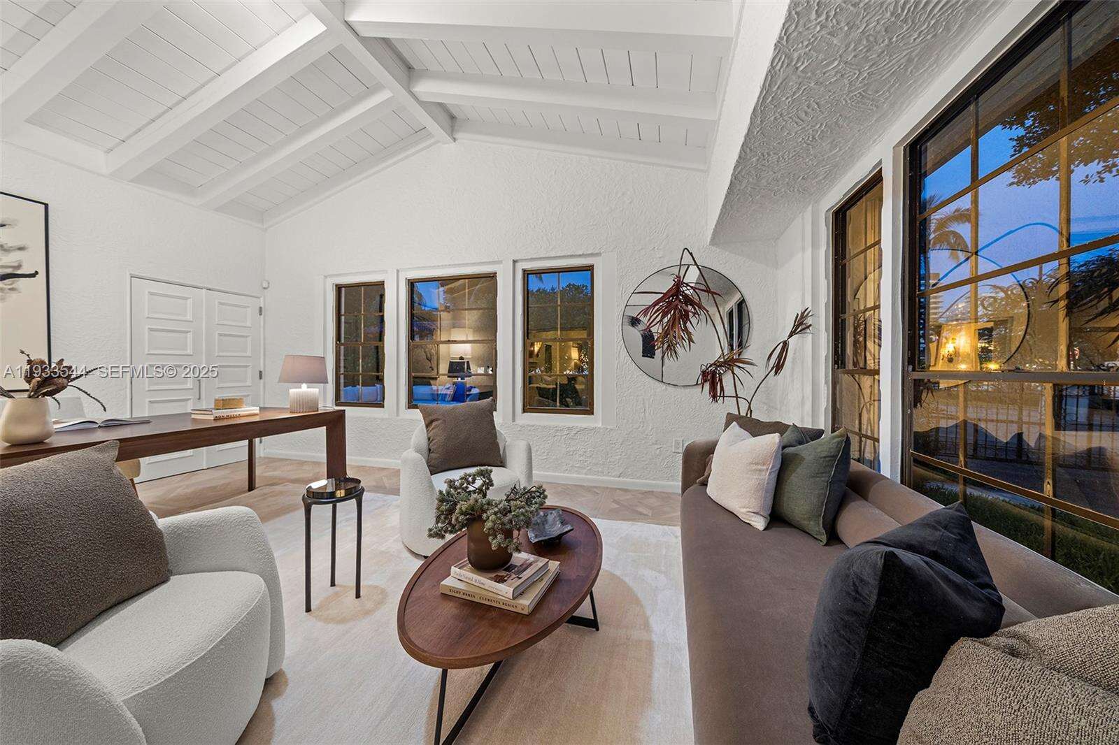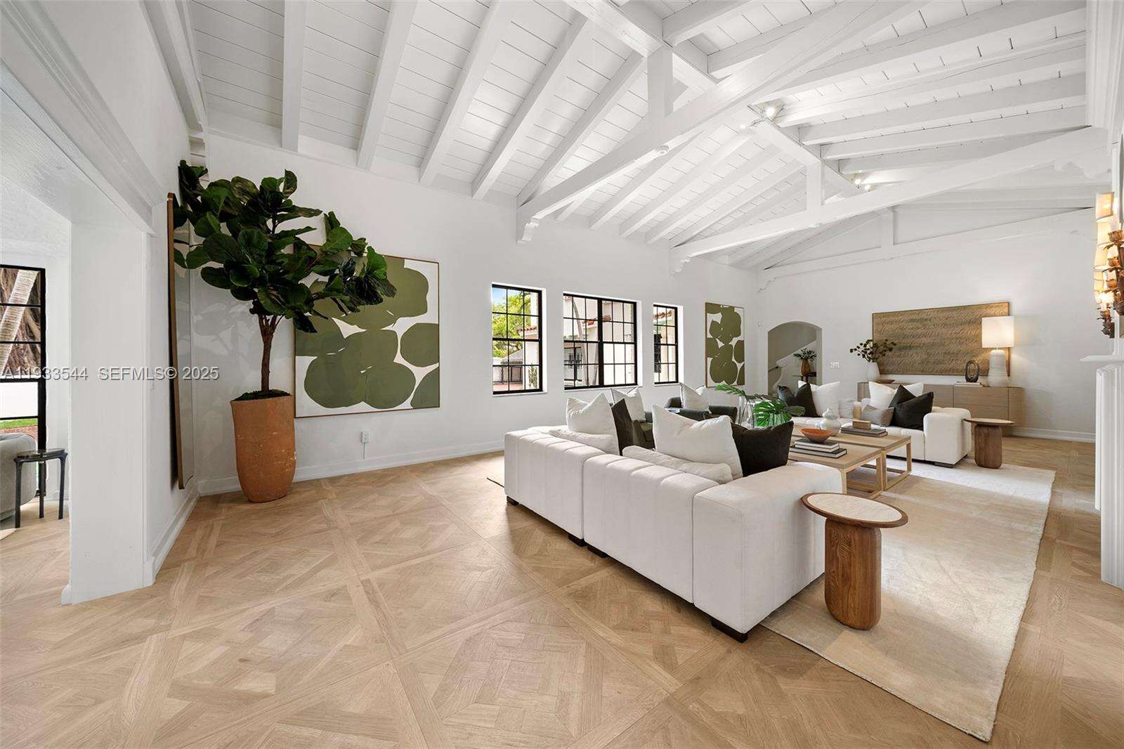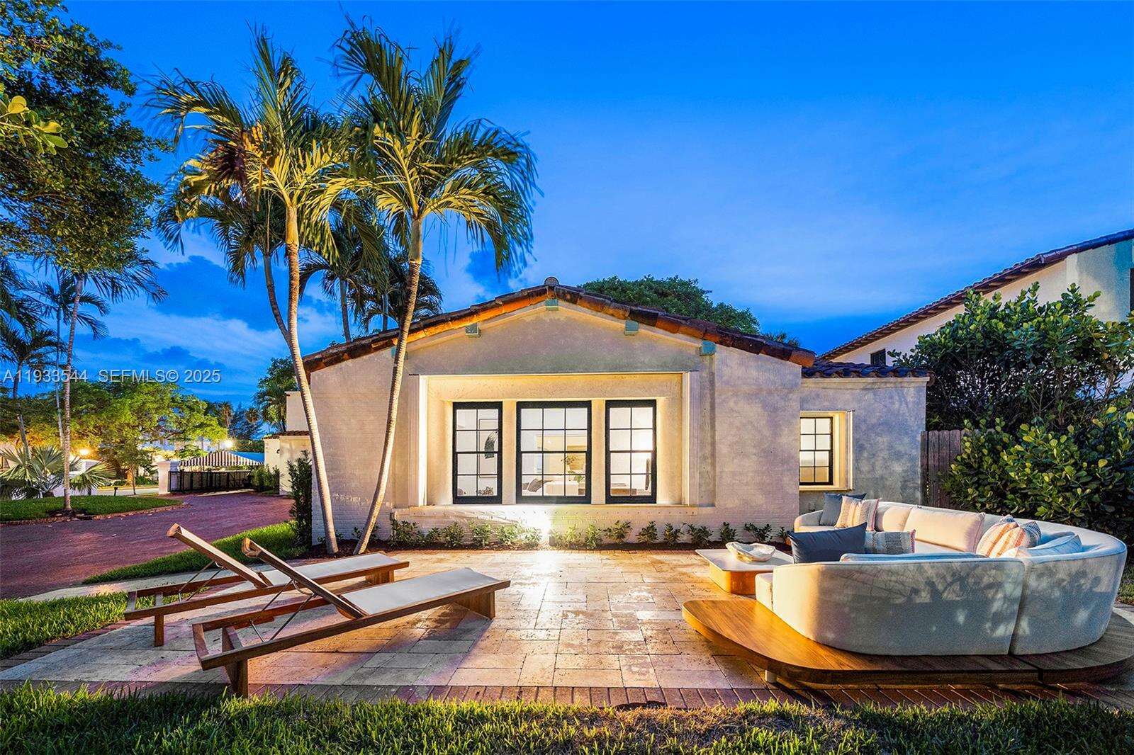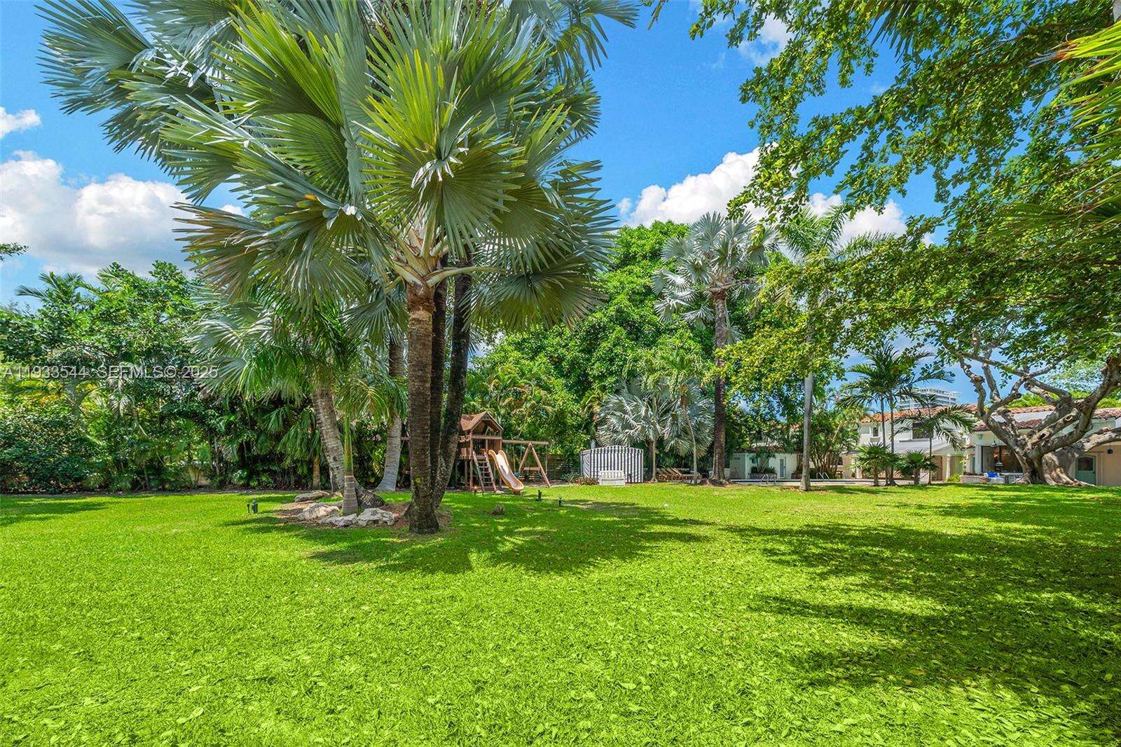Rare mediterranean estate exuding sophistication and beach vibes in the heart of Miami Beach. Designed by acclaimed architect Carlos B. Schoeppl, this recently updated home is marked with striking original details, living room with cathedral beamed ceilings, fireplace, entertainment room with oak bar, library with soaring ceilings and masterful craftsmanship. The 31,320-SF double-platted corner lot stretching from Flamingo to Pinetree Drive, is secluded with tropical privacy landscape and complete with an immense backyard with lap pool, playground, and space for more amenities. Located minutes to the beach, Bayshore Park, Golf Course, South Beach. Own one of the largest dry lots in MB!