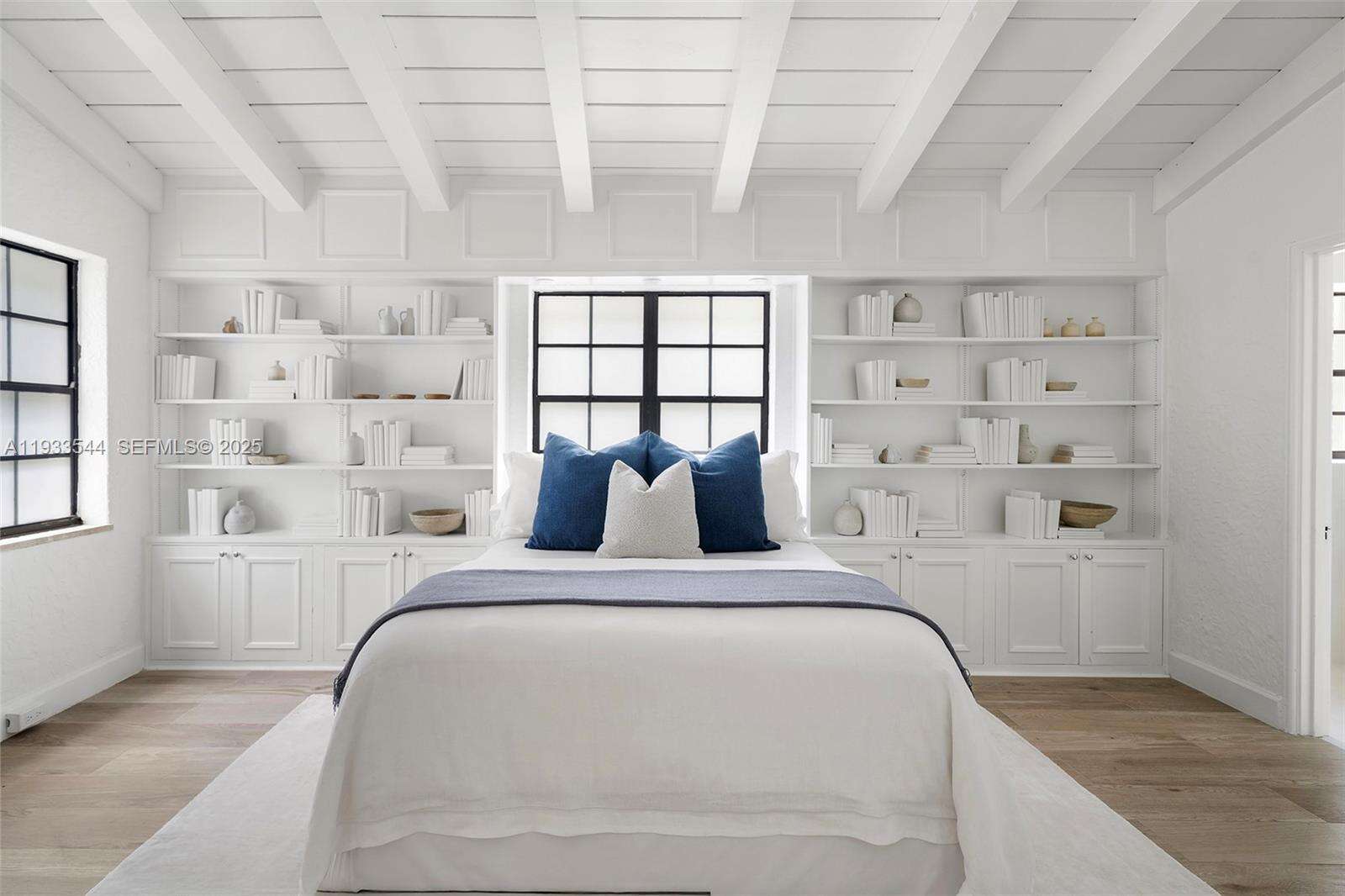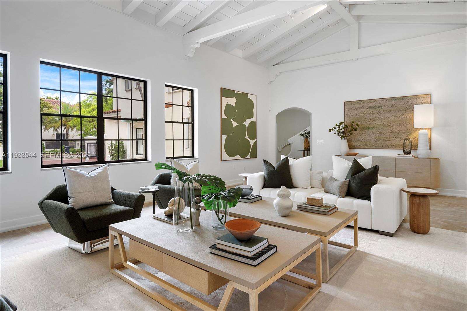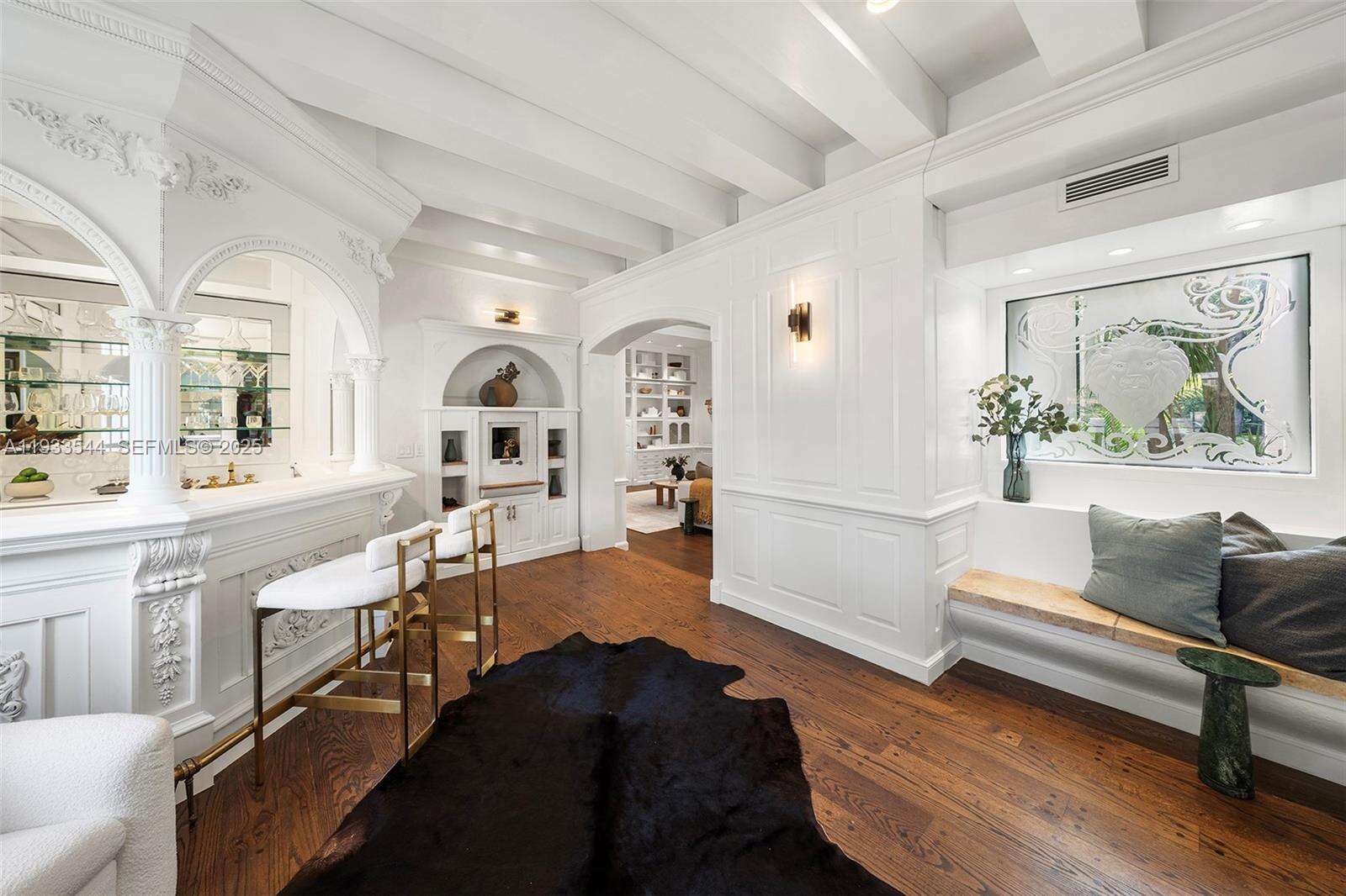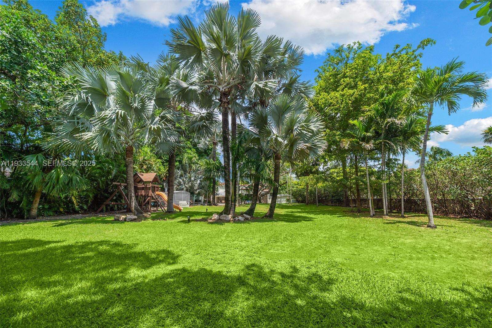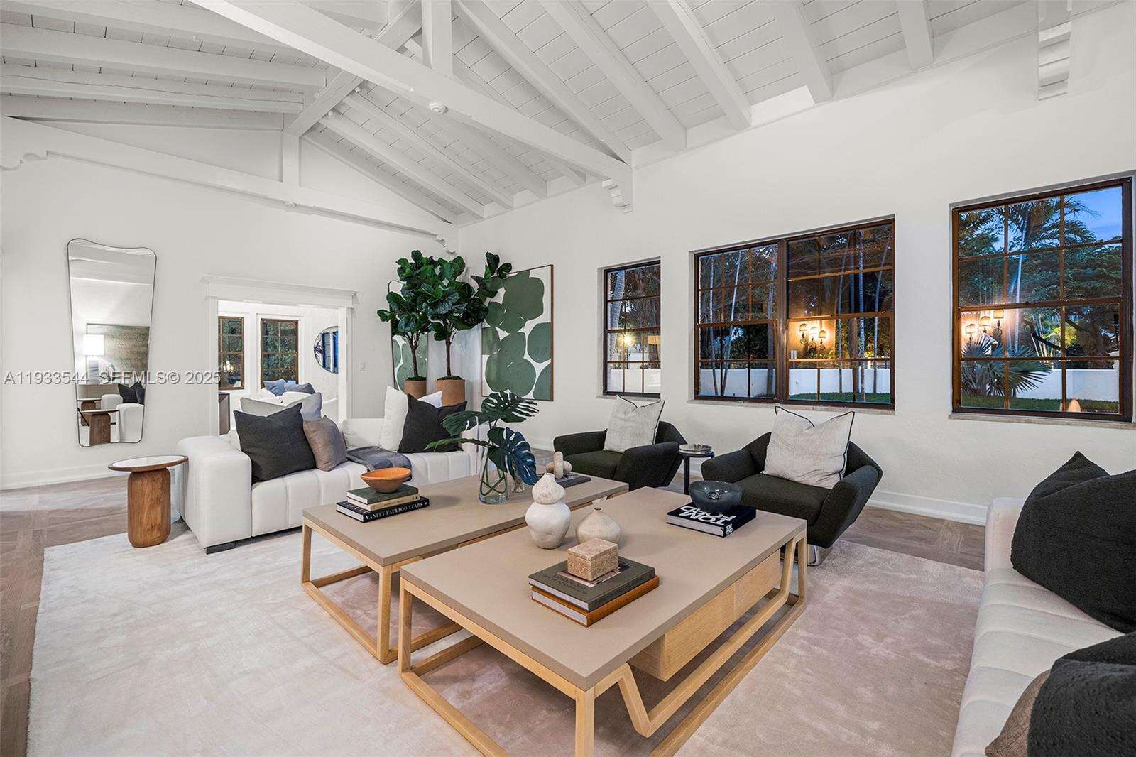 Rare mediterranean estate exuding sophistication and beach vibes in the heart of Miami Beach. Designed by acclaimed architect Carlos B. Schoeppl, this recently updated home is marked with striking original details, living room with cathedral beamed ceilings, fireplace, entertainment room with oak bar, library with soaring ceilings and masterful craftsmanship. The 31,320-SF double-platted corner lot stretching from Flamingo to Pinetree Drive, is secluded with tropical privacy landscape and complete with an immense backyard with lap pool, playground, and space for more amenities. Located minutes to the beach, Bayshore Park, Golf Course, South Beach. Own one of the largest dry lots in MB!