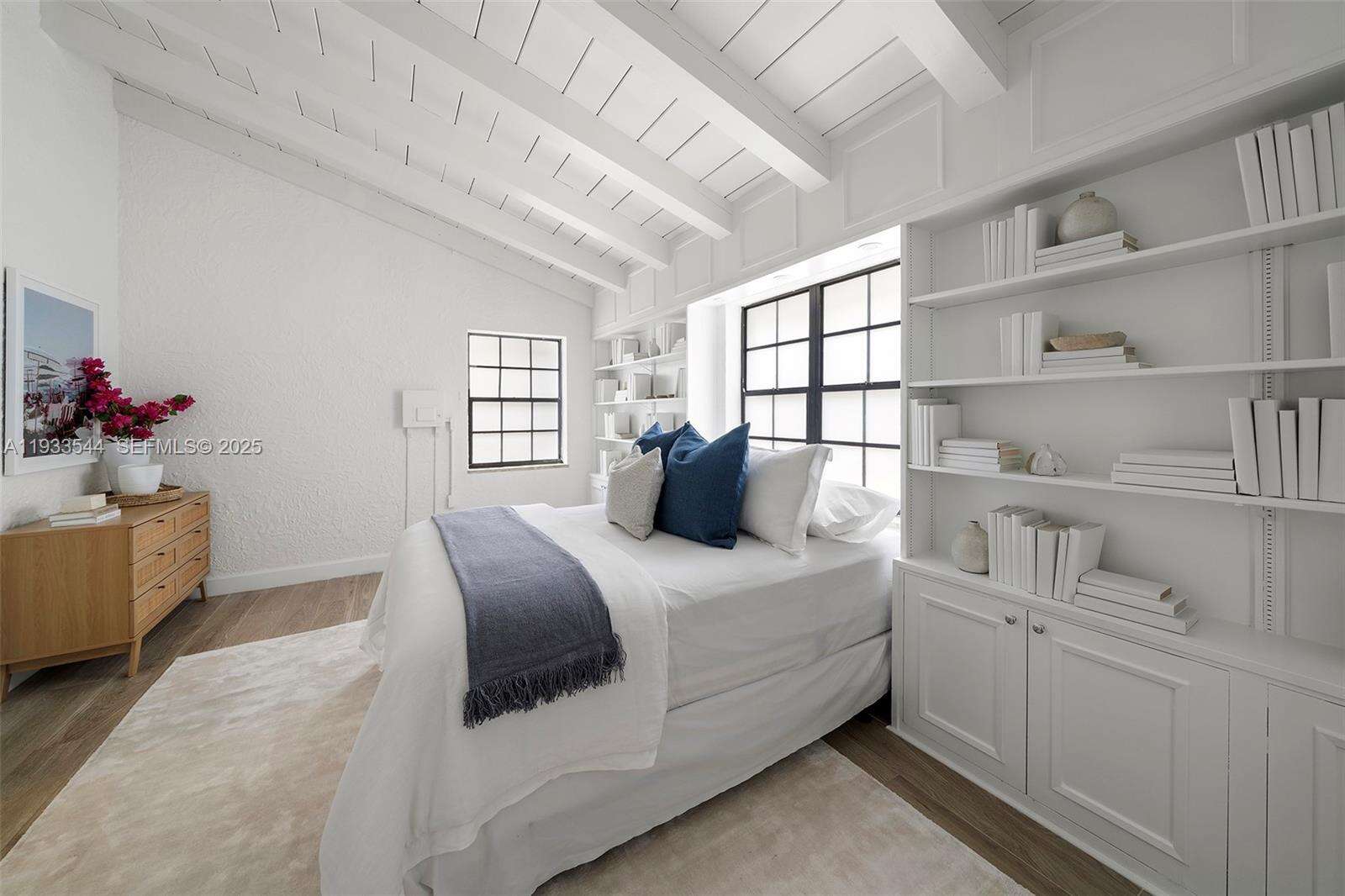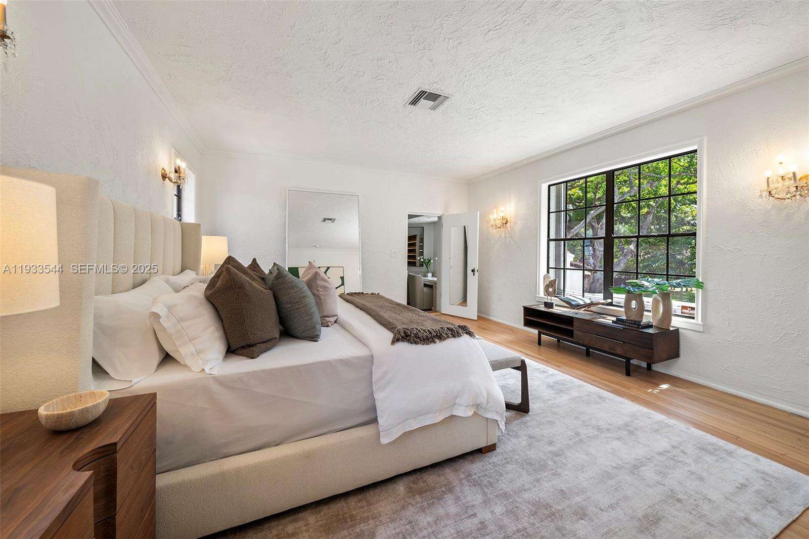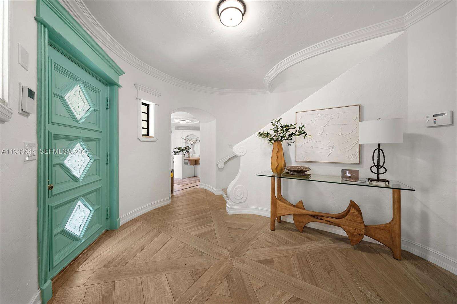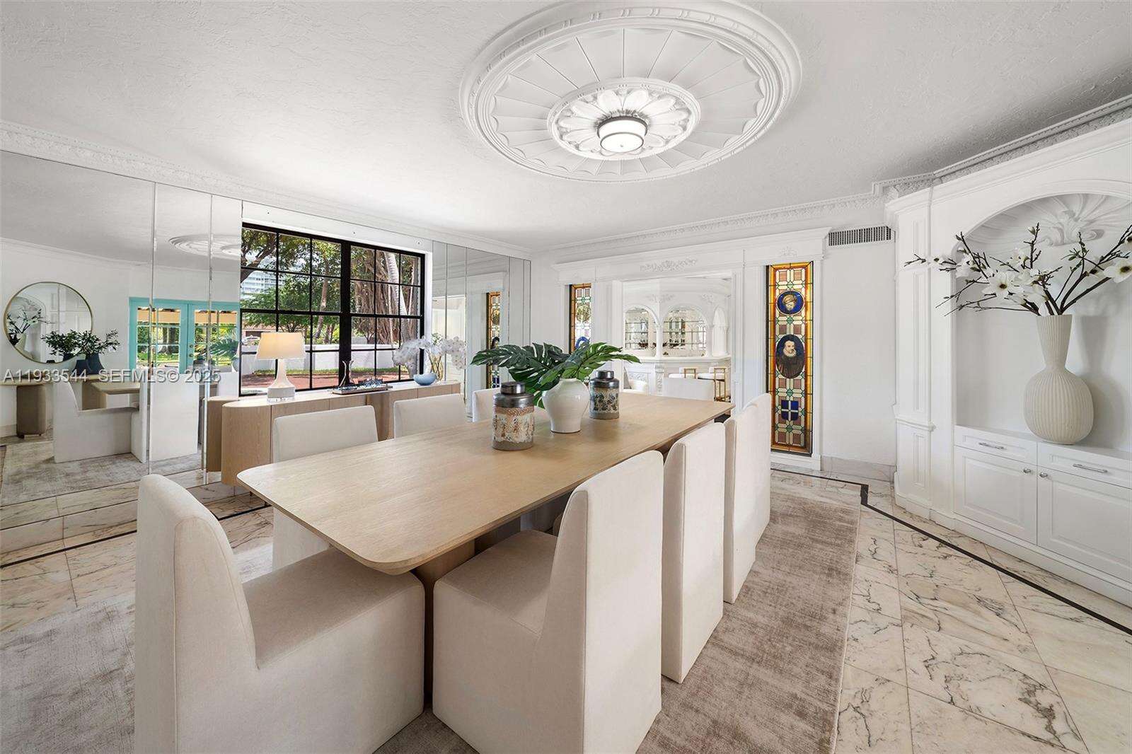 Rare mediterranean estate exuding sophistication and beach vibes in the heart of Miami Beach. Designed by acclaimed architect Carlos B. Schoeppl, this recently updated home is marked with striking original details, living room with cathedral beamed ceilings, fireplace, entertainment room with oak bar, library with soaring ceilings and masterful craftsmanship. The 31,320-SF double-platted corner lot stretching from Flamingo to Pinetree Drive, is secluded with tropical privacy landscape and complete with an immense backyard with lap pool, playground, and space for more amenities. Located minutes to the beach, Bayshore Park, Golf Course, South Beach. Own one of the largest dry lots in MB!