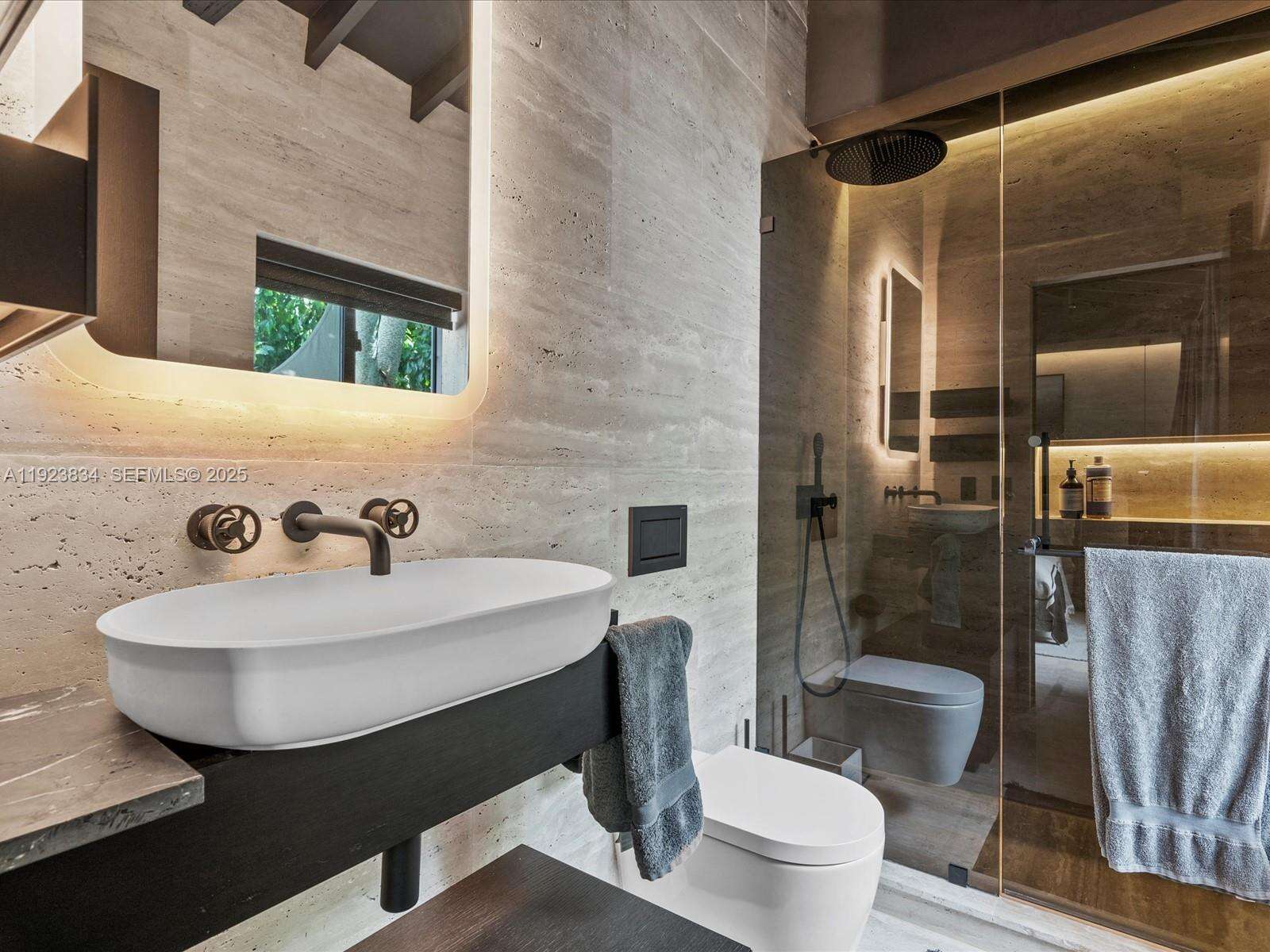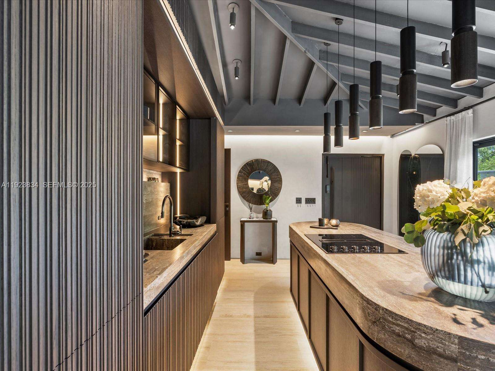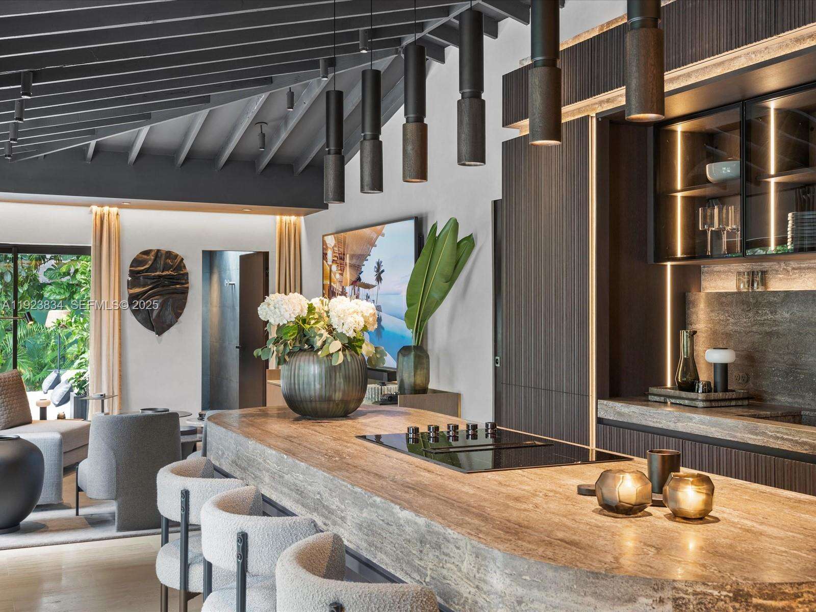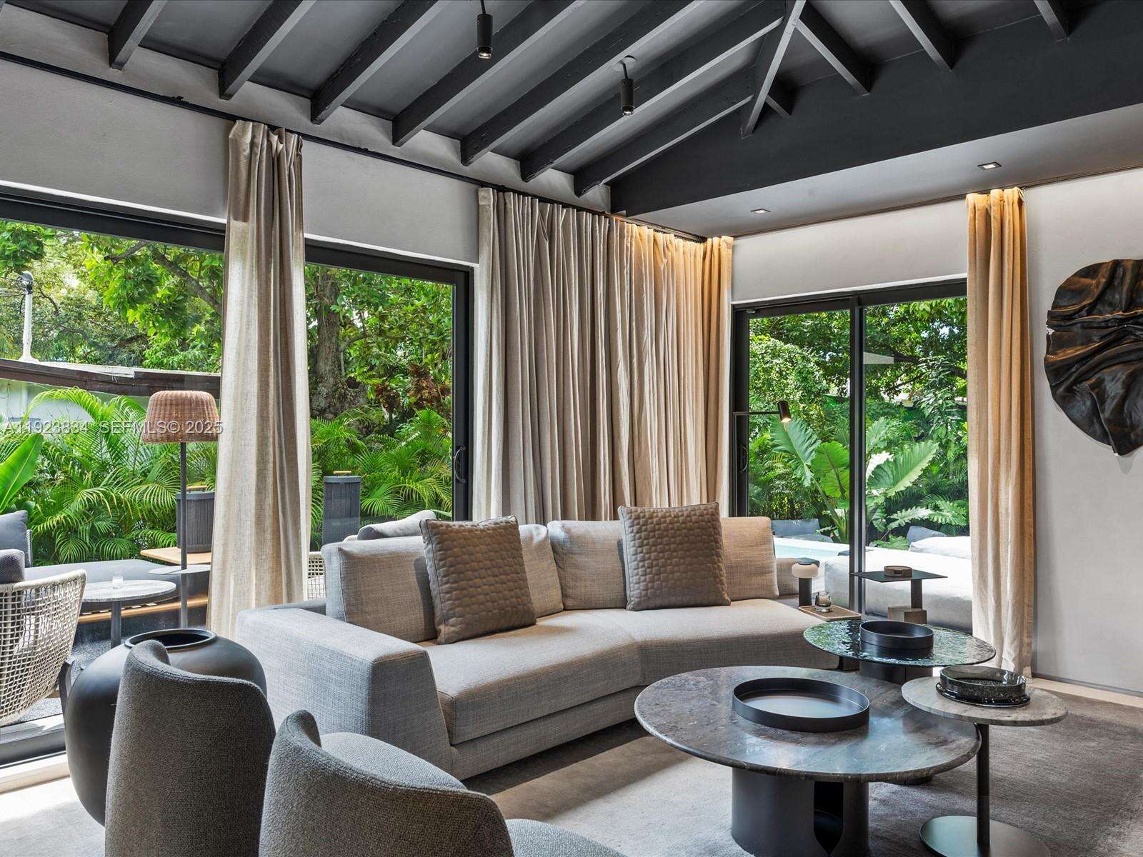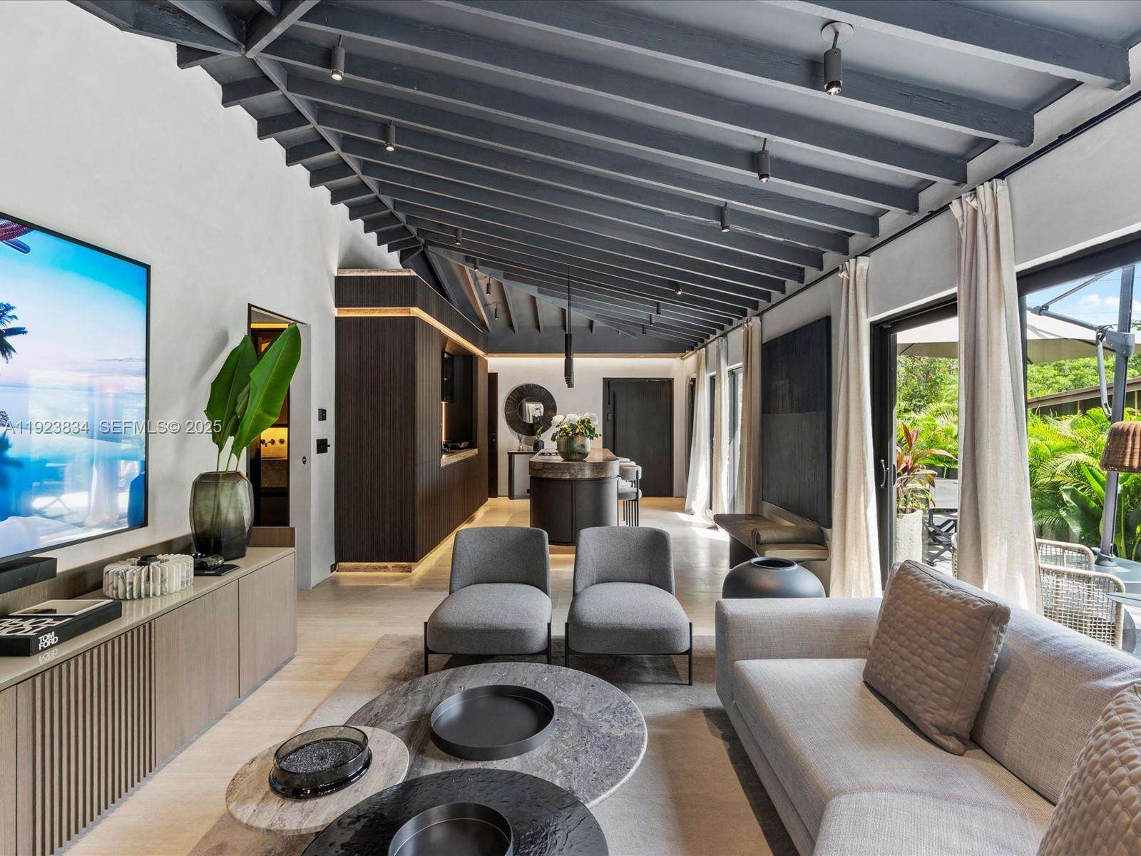 Fully designer renovated contemporary villa in the heart of Coconut Grove. The home includes an Italian-made designer kitchen, custom MisuraEmme closets, and premium Effepi R. fixtures. Professional Fulgor Milano appliances and curated Italian furnishings enhance the home’s streamlined, modern aesthetic. Finishes include Turkish Veincut travertine, limewash walls, and VivaPorte architectural doors for a clean, understated elegance. Additional highlights include Talenti outdoor living, a private firepit lounge, a Gruppo Tresse spa system, integrated Sony systems in every room, and upgraded Buster + Punch lighting. The property is fully gated and ultra-private, offering a quiet and secure environment. A sophisticated residence designed for comfort, quality, and modern living. Property sold AS-IS; Furnished and finished with right to inspect.