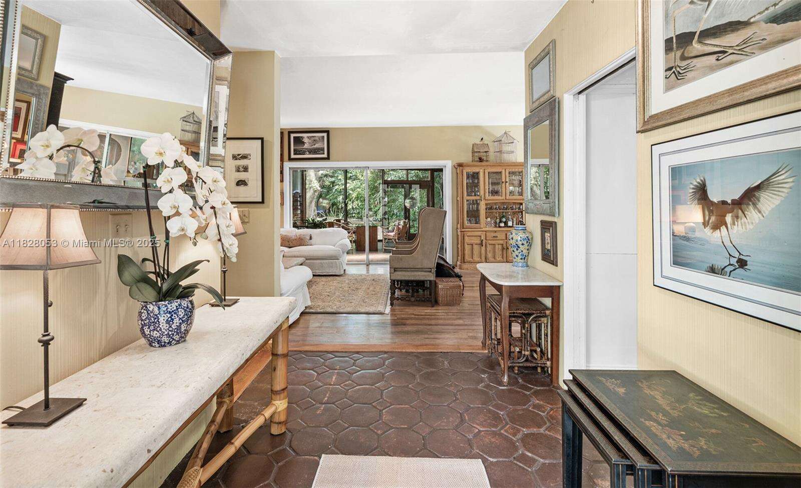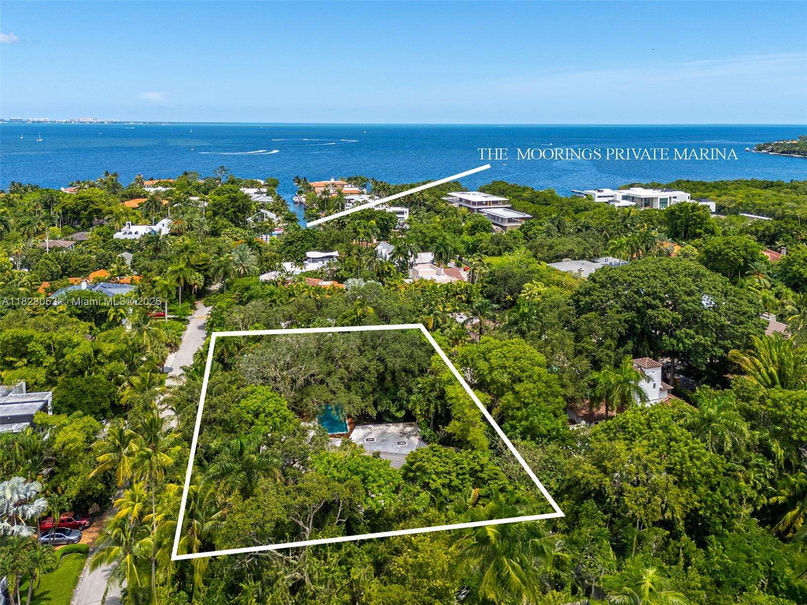 Enchanting Coconut Grove estate offers prestige, security & a coveted address in The Moorings. 24-hr Guard w/ entry by resident consent only. 2 Lots totaling 25,241 SF at 16' Elevation, private resident Marina w/ bay access & 3 Parks: Marina, Waterfront & Children's. Walk/Bike to private schools, dining, shops & more. Classic Florida home to a family for 54yrs. Custom-built Mid-Century, hi-ceiling, Open-Concept Living Rm (Fireplace) & Dining Rm is spanned by a Patio seamlessly integrating Pool & large lush yard. Spacious Primary Bedrm w/ His/Hers Walk-in Closets & Baths. 3 En Suite Bedrms, Eat-in Kitchen w/ Stainless counters, Pantry, Storage, Laundry, Workshop & 2-Car Garage. BUILD anew or restore. The opportunity to live in the premier location of The Moorings is rare!