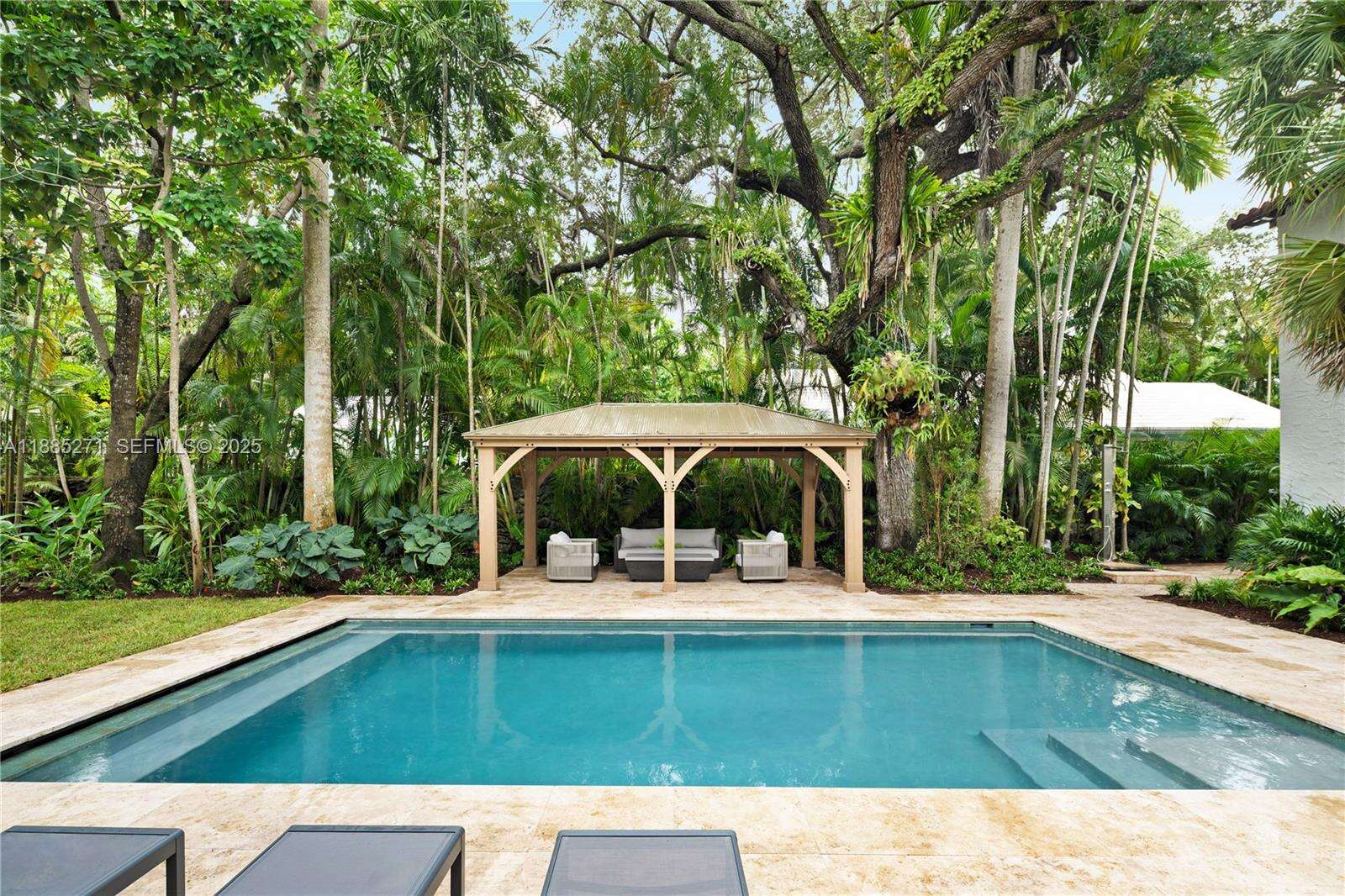 Set on a serene 21,000 sf gated estate in Coconut Grove, this Richard Kiehnel–designed Spanish Colonial home combines rich history with modern luxury. The main residence offers 5 ensuites, a living room w/ fireplace, open kitchen/dining w/ Sub-Zero/Wolf appliances & quartzite counters, wine room, laundry, and family room. The primary suite features dual walk-ins, original clawfoot tub, and two-person shower. The private guest house adds the 6th bedroom, sep. kitchen & living. Recent upgrades include new impact windows/doors, and roof w/ copper gutters. Outdoor amenities include a new pool w/ auto closer, covered patio, summer kitchen, and lush landscaping. With dual gated entrances and walking distance to top schools, this estate is a rare Grove sanctuary for elegant living & entertaining.