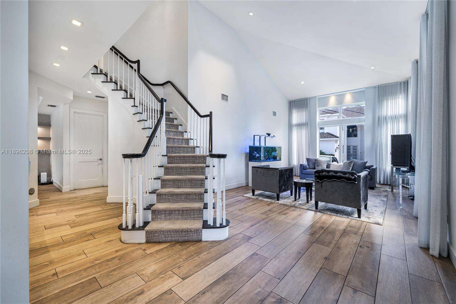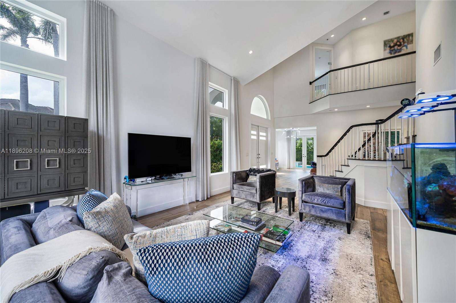 Rarely available two-story pool home with garage in gated Country Club Estates, Aventura's premier enclave along the Turnberry golf course and Aventura Circle. 3BR/3BA, 3,480 total SF, and soaring 22' volume ceilings fill the living areas with natural light. Open living/dining flows to a large patio and private pool, ideal for entertaining. Flexible 2-car garage offers additional parking or potential conversion. Upstairs primary suite features 2 walk-in closets & a spa bath with shower. Separate laundry room. Zoned for ACES & Don Soffer High. Step outside to the famed 3-mile Aventura Circle path for morning jogs and sunset strolls. Walk to houses of worship, Aventura Mall, shops, cafes, and parks. Enjoy the ultimate Aventura lifestyle in this secure, manicured neighborhood.