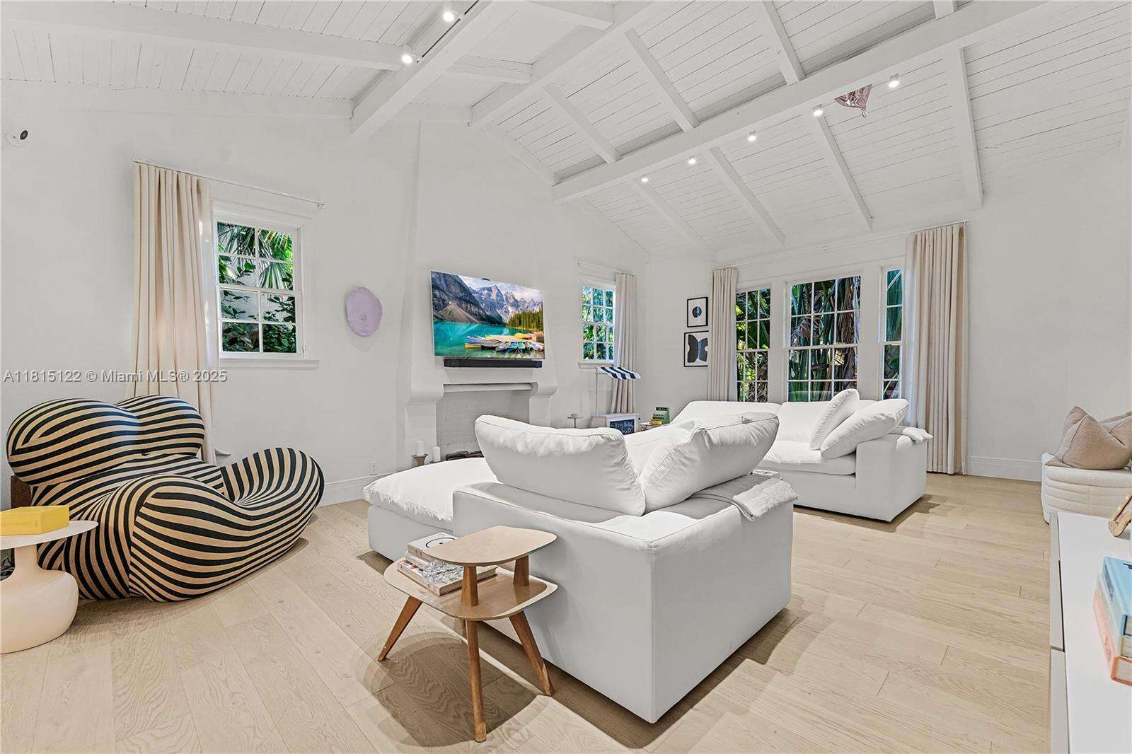 Just renovated 4 Bed / 4.5 bath on a 10,000 square foot lot on one of the most attractive streets in Mid-Beach. Stately Colonial-Mediterranean facade with excellent curb appeal. The giant great room features voluminous cathedral ceilings centered around an original fireplace. A flowing layout with defined yet open living areas includes a formal dining room, eat-in kitchen, and the desirable one-bedroom down /three-up allocation. The unique 200-foot deep lot allows for a backyard that seemingly goes on forever. Great location within a minute's walk to 41st Street.