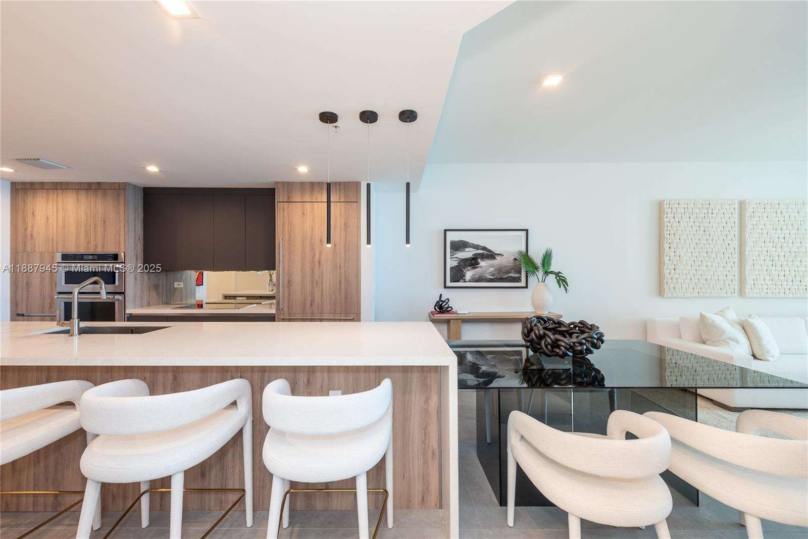 Mosaic Condo is an exclusive boutique building in Miami Beach with only 84 residences. This completely remodeled thru-unit features 3 spacious bedrooms, 3 bathrooms, and private balconies showcasing both direct ocean views and city skyline vistas. The open living area connects seamlessly with a gourmet kitchen, breakfast bar, and dining space, complemented by sleek tile floors and custom finishes throughout. The oceanfront primary suite offers balcony access and abundant natural light. Residents enjoy resort-style amenities including beach access with service, oceanfront pool, state-of-the-art gym, cinema, party room, concierge, valet, and 24-hour security—delivering the perfect mix of boutique privacy and Miami Beach luxury. Furniture can be included in the sale.