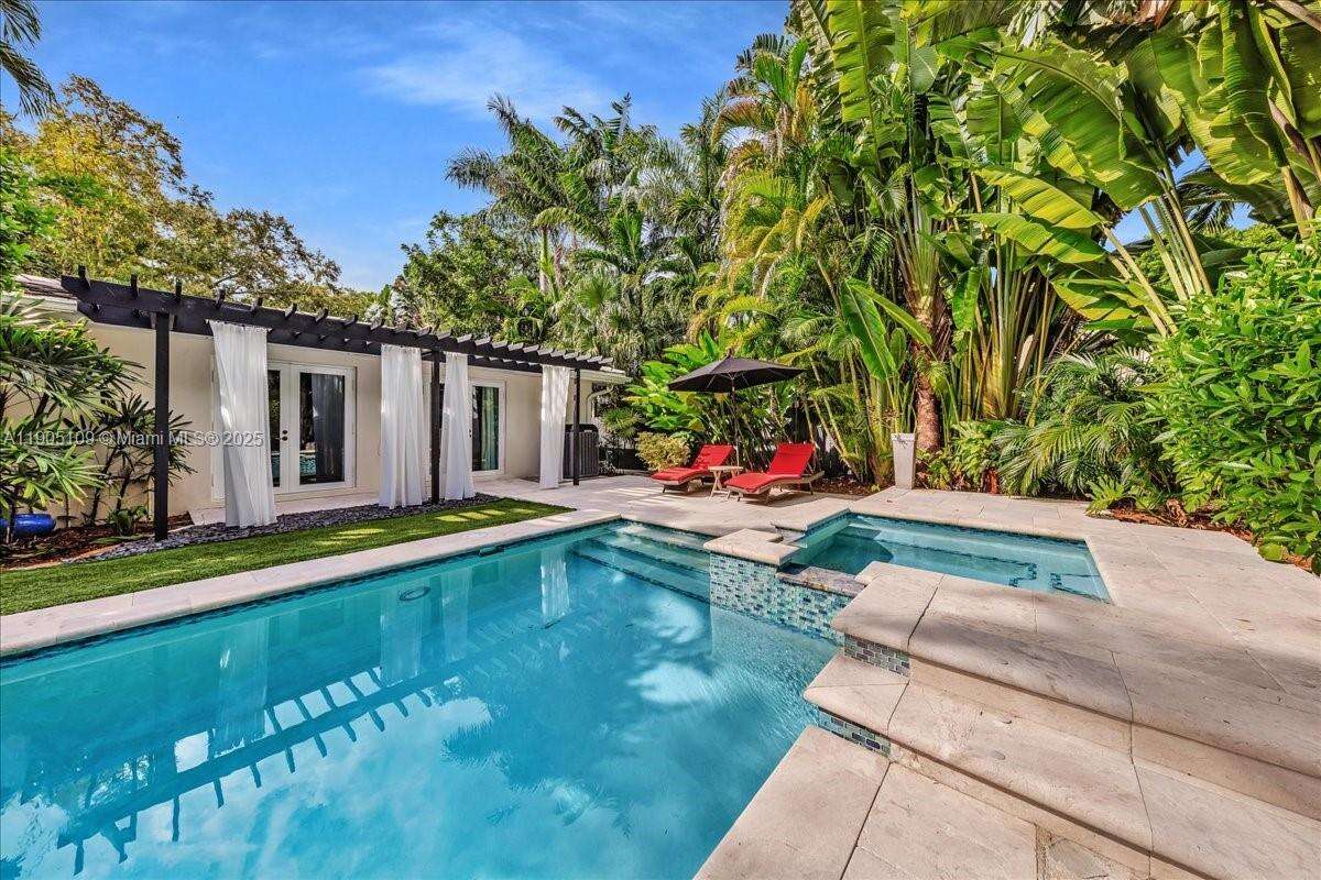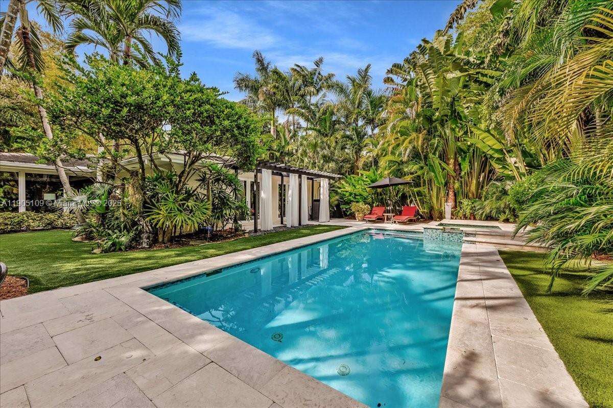 Welcome Home to Your Private Tropical Oasis in South Coconut Grove.Nestled on a charming, tree-lined street, this spectacular residence sits on an expansive 11,000+SF.Lot.lush, mature landscaping for ultimate privacy.Every room offers tranquil,Zen garden views.Spacious chef’s kitchen features a gas range, wine cooler, Sub-Zero.Two elegant ensuite bedrooms boast marble bathrooms.Step outside to your private retreat—Salt-Water Pool framed by tropical foliage & a shaded pergola perfect for relaxing or entertaining.A true Grove gem that blends comfort, sophistication & effortless indoor-outdoor living.Additional highlights include:New AC system,Whole-house generator,Upgraded plumbing,Impact doors/windows.Immaculate 2-car garage, custom built-ins & laundry.Home lgr than tax rolls as per owner.