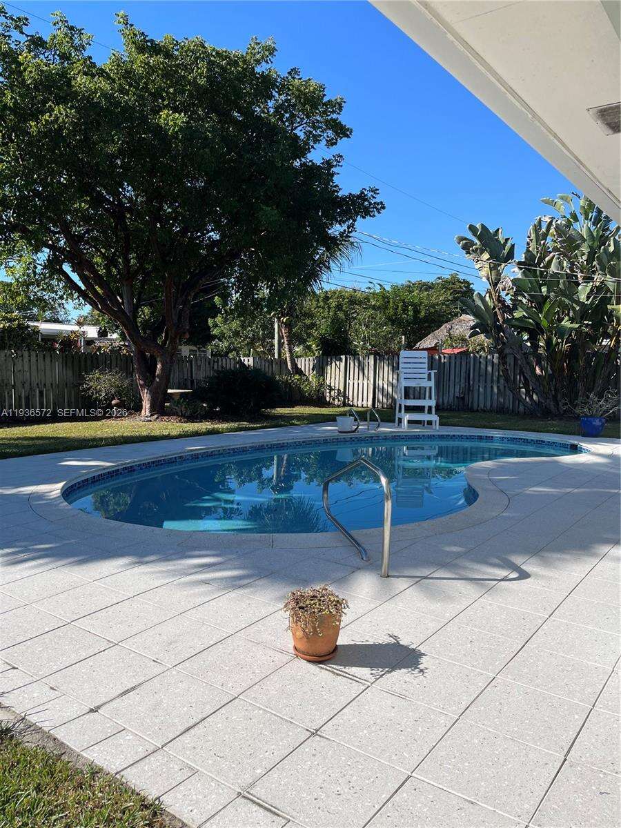 Welcome to this charming Hollywood Hills home that blends comfort, style, and functionality. Featuring mint condition terrazzo floors, open living area filled with natural light. This property offers an inviting layout perfect for both everyday living and entertaining. Primary bath has been updated, second bath has the art deco style of the fifties. Step outside to enjoy a private outdoor covered patio, heated pool and a large fenced in yard, ideal for relaxing, gardening, or hosting gatherings. Conveniently located on a low traffic street. Near shopping, dining, schools, and major highways. This property offers the perfect balance of tranquility and accessibility. Don’t miss the opportunity to make this exceptional home your own.