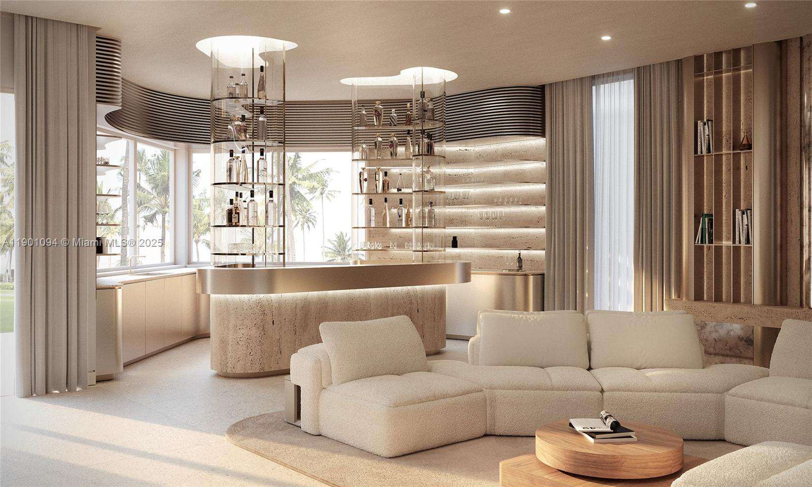 Currently under construction in Golden Beach, this 9,290 SF waterfront estate offers 75ft of Intracoastal frontage. Beyond a private gate, lush landscaping leads to a double-height foyer w/ floating staircase, elevator & botanicals. Fully designer-furnished w/ all-Italian materials, featuring imported stone, a bespoke Italian kitchen, & sculptural lighting. 7 ensuite beds include a primary w/ firepit terrace, spa bath & boutique dressing room. 2 flex suites were formed to create a wellness retreat w/ gym, sauna & steam room. Other features: theater w/ wet bar, office, gym w/ balcony, & gourmet chef’s kitchen. Outdoors awaits a private pool, spa, cabana bath, summer kitchen & dining area. New seawall & dock. Residents enjoy a beach club, tennis, parks & 24h police. Q3 2026 completion.