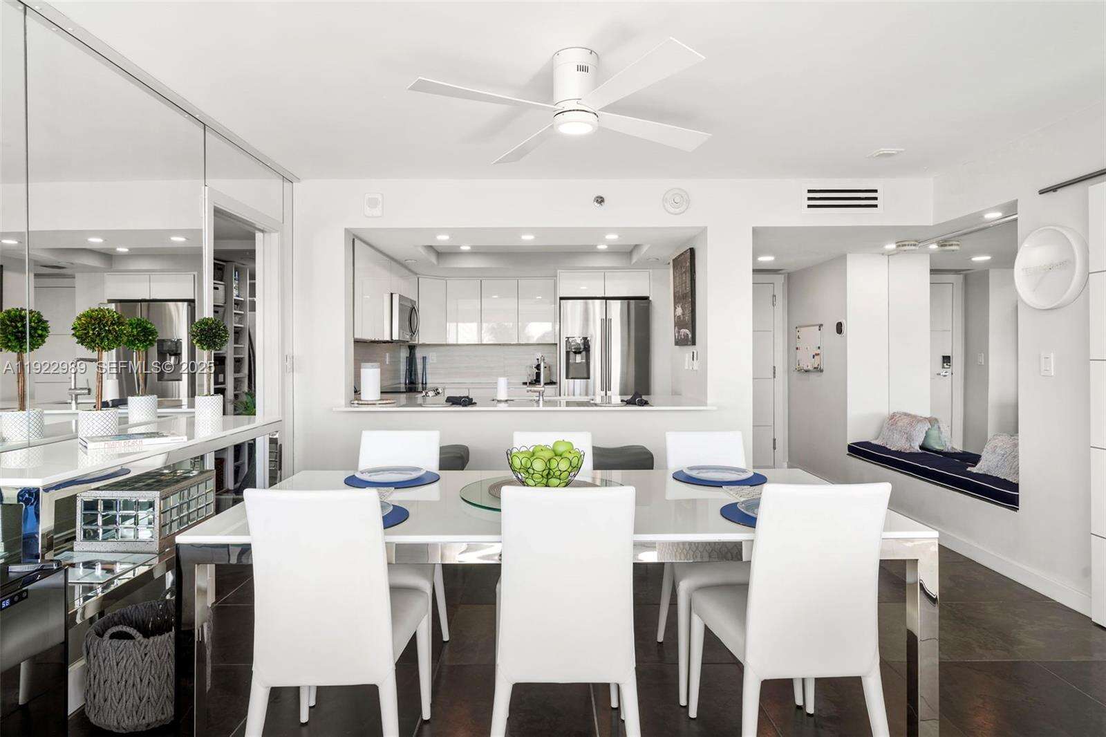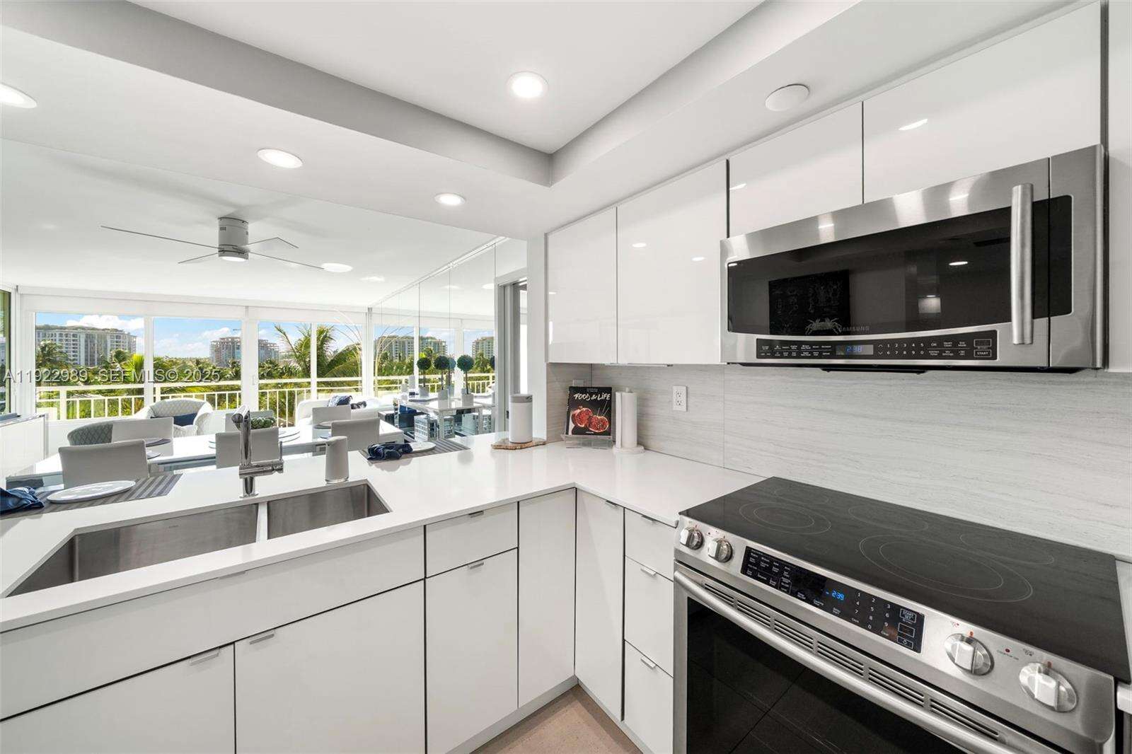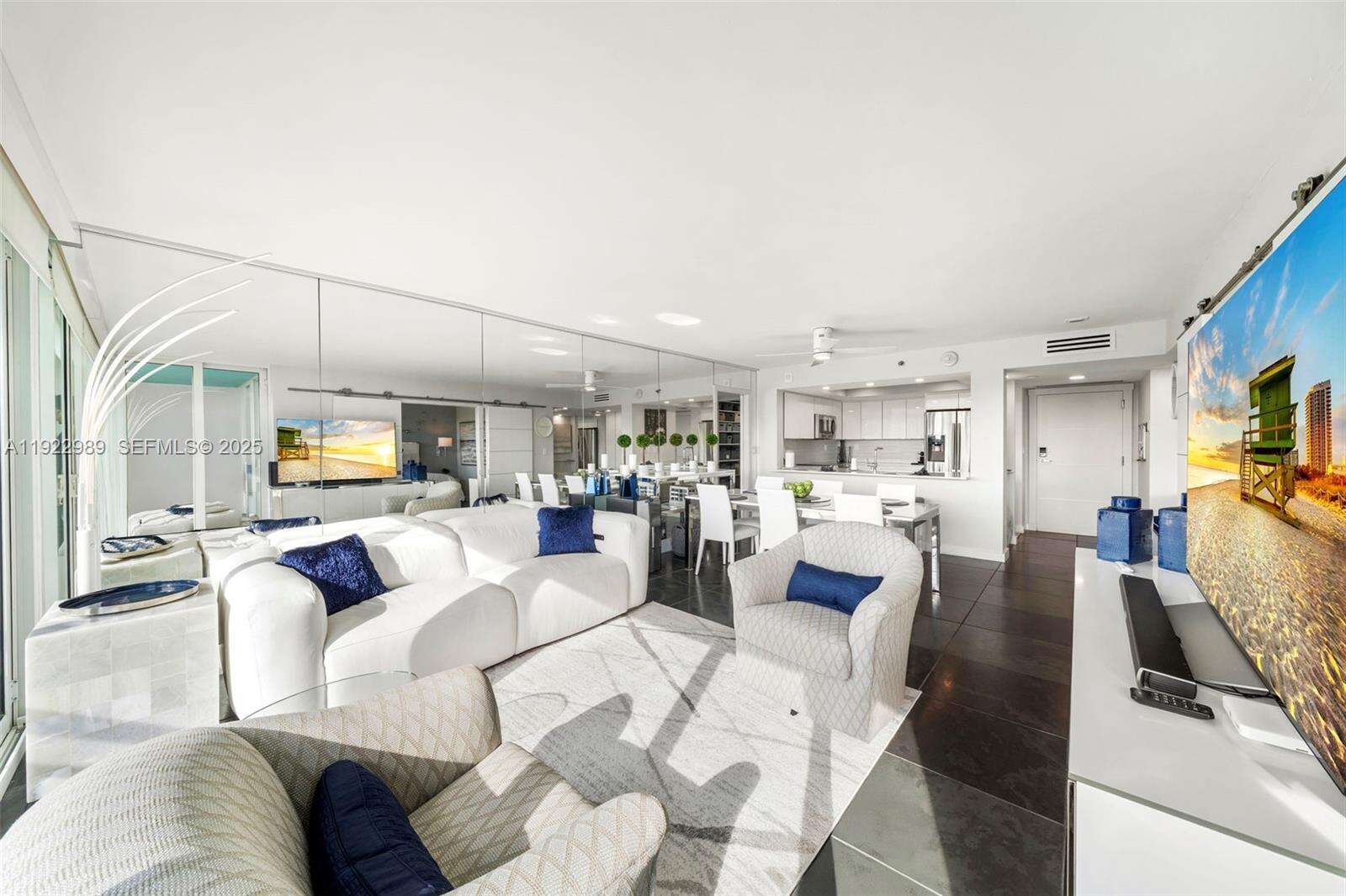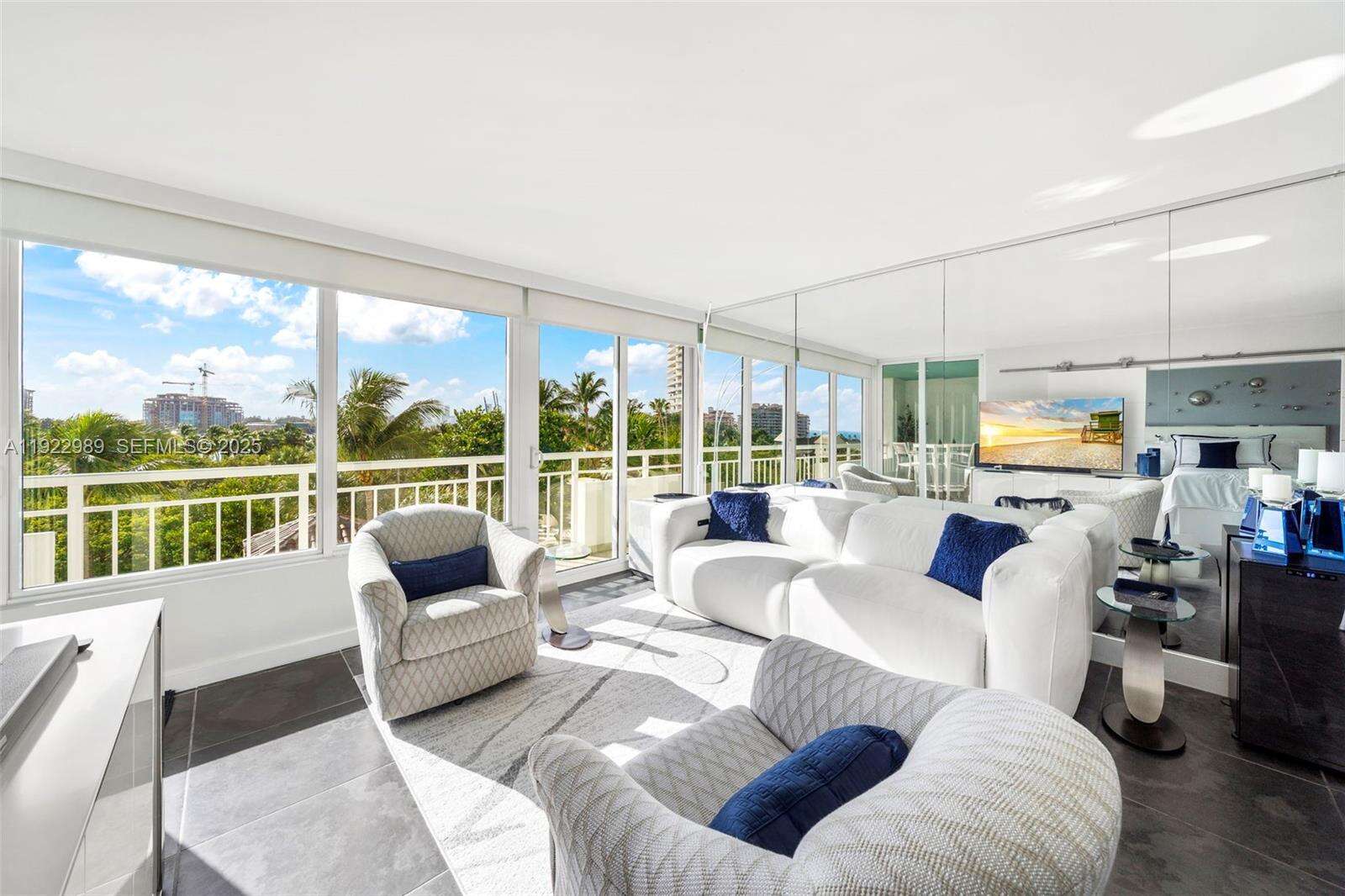 Discover luxury living in this beautifully renovated 2-bedroom, 2-bath condo in South of Fifth's premier location just steps to the beach & fine dining. The home features a desirable split floor plan and sophisticated modern finishes throughout including impact windows & electric shades. Step outside to the full-length terrace, uniquely designed with two private balcony spaces, one for each bedroom, plus balcony access from every room in the home. Perfect for entertaining and relaxing with cruise ships passing and beautiful sunsets. The fully renovated kitchen is a chef's delight, equipped with stainless steel appliances, quartz countertops, custom cabinetry, and sleek contemporary design. Additional highlights include ample storage throughout and a separate laundry area, offering convenience rarely found in similar units.This move-in-ready home is being sold turnkey so you can begin enjoying on Day 1. The building and its resort style amenities has just completed a 5 year renovation project, including the building's completed 40 year recertification. ALL ASSESSMENTS HAVE BEEN PAID.