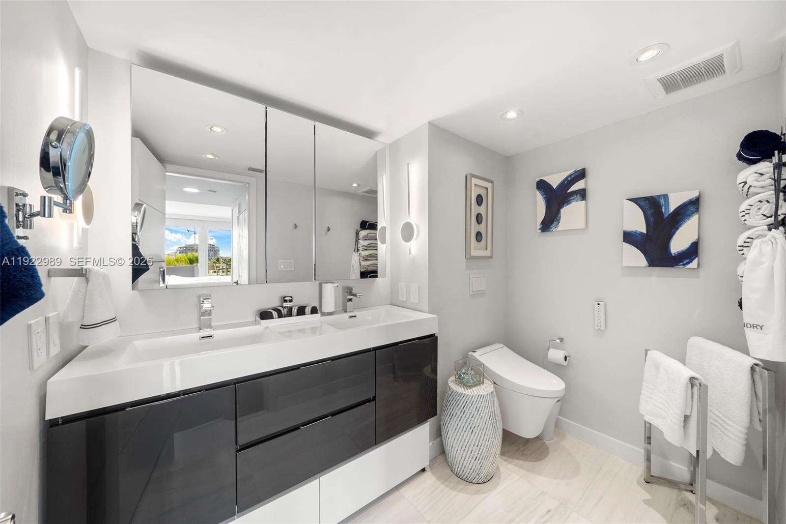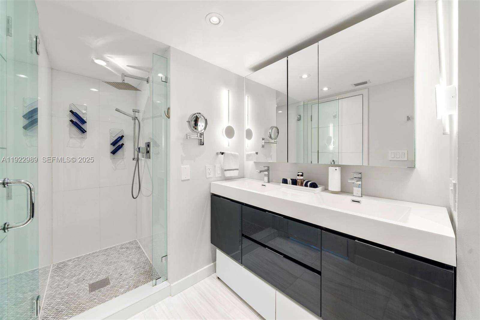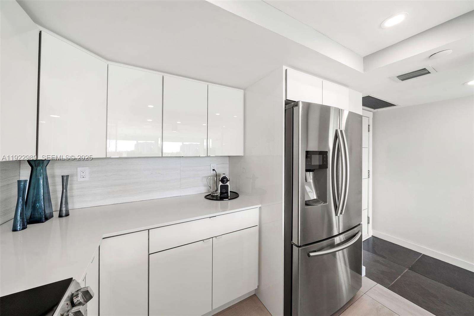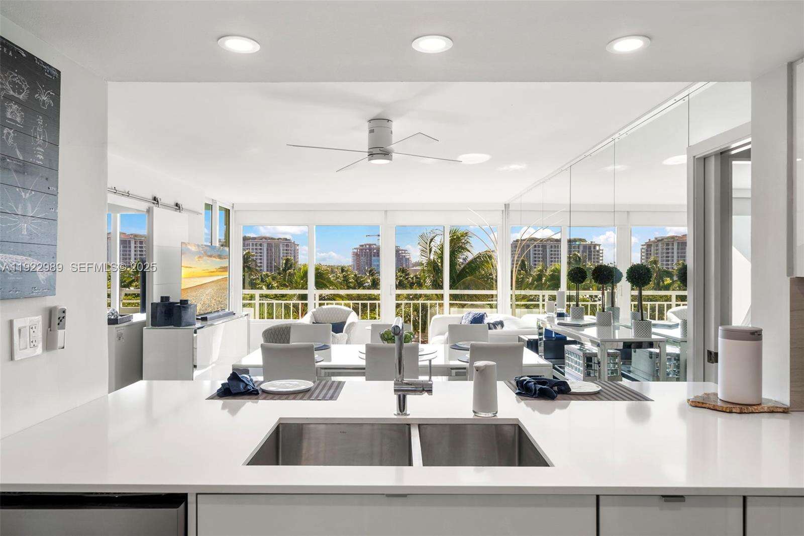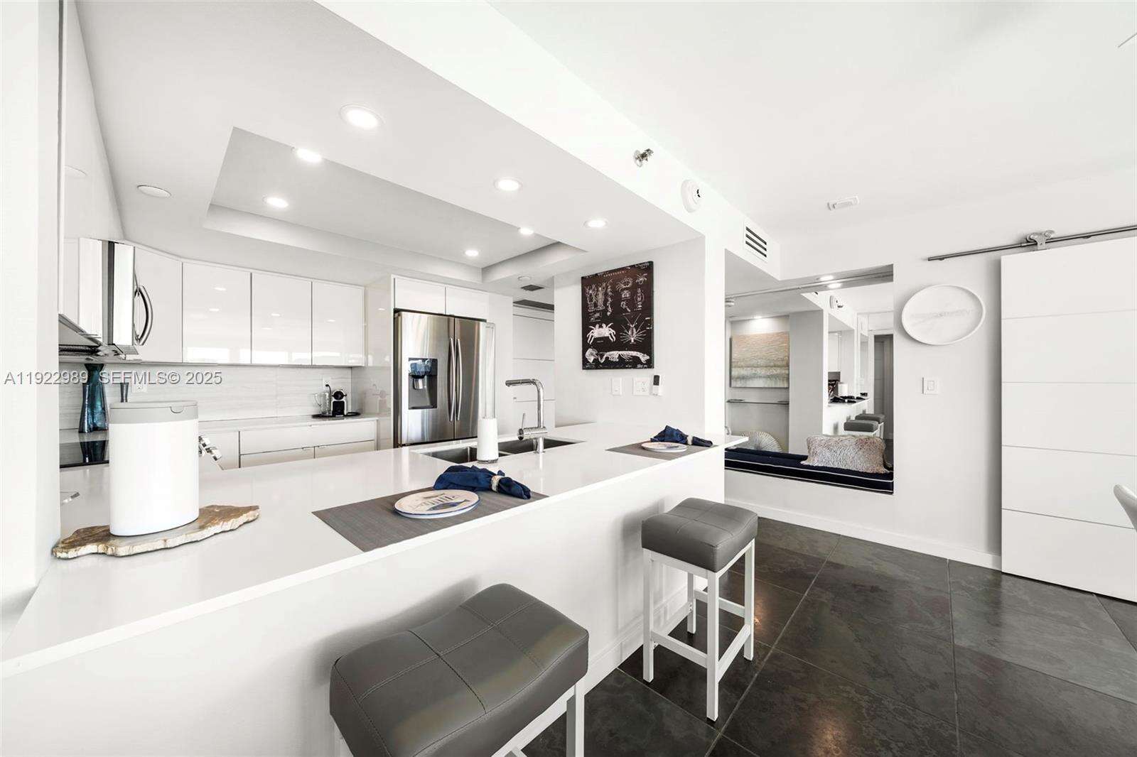 Discover luxury living in this beautifully renovated 2-bedroom, 2-bath condo in South of Fifth's premier location just steps to the beach & fine dining. The home features a desirable split floor plan and sophisticated modern finishes throughout including impact windows & electric shades. Step outside to the full-length terrace, uniquely designed with two private balcony spaces, one for each bedroom, plus balcony access from every room in the home. Perfect for entertaining and relaxing with cruise ships passing and beautiful sunsets. The fully renovated kitchen is a chef's delight, equipped with stainless steel appliances, quartz countertops, custom cabinetry, and sleek contemporary design. Additional highlights include ample storage throughout and a separate laundry area, offering convenience rarely found in similar units.This move-in-ready home is being sold turnkey so you can begin enjoying on Day 1. The building and its resort style amenities has just completed a 5 year renovation project, including the building's completed 40 year recertification. ALL ASSESSMENTS HAVE BEEN PAID.