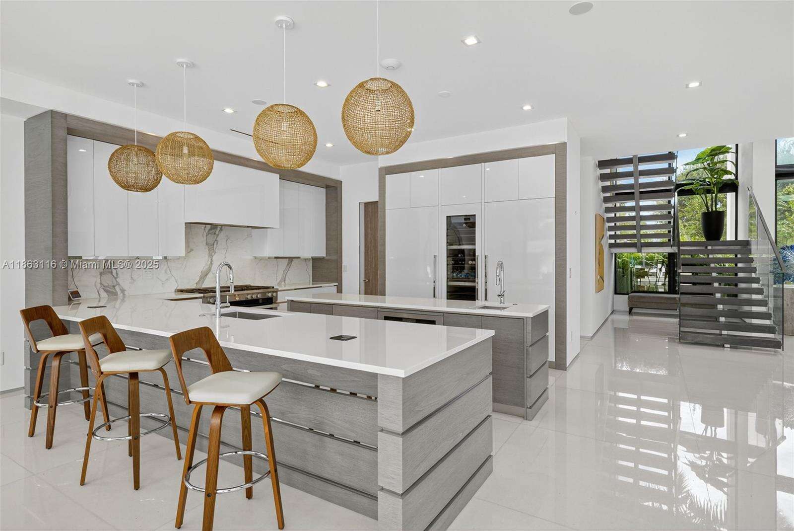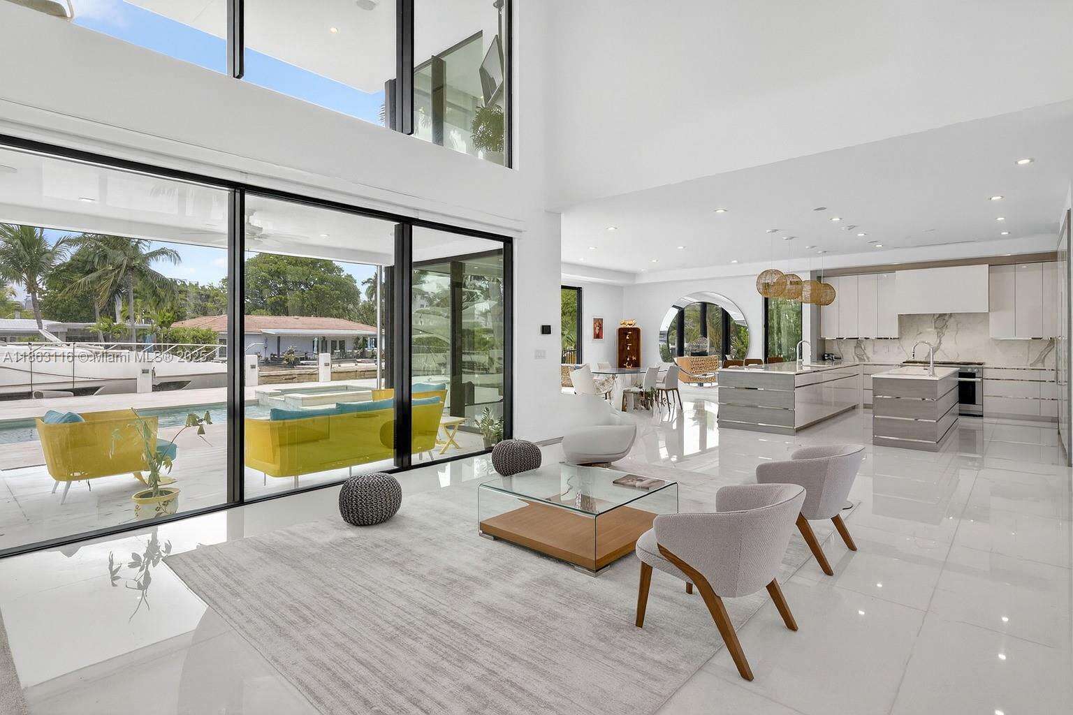 Ultra-modern new construction in Fort Lauderdale’s prestigious Las Olas Isles! This 3-story waterfront estate offers 8 en-suite bedrooms, soaring ceilings, open-concept living, and walls of glass for natural light throughout. Features include a premium stainless steel elevator, Miele appliances & Schuco windows/doors. The expansive 3rd-floor loft with bar opens to large terraces with stunning sunset views over downtown. Enjoy 100' of deepwater dockage with no fixed bridges—just minutes to the ocean. Outdoor highlights include a resort-style pool, summer kitchen, and a 3-car garage with lift capacity for 6. In the center of Las Olas dining, shopping, and beaches. A rare blend of luxury, location, and design!